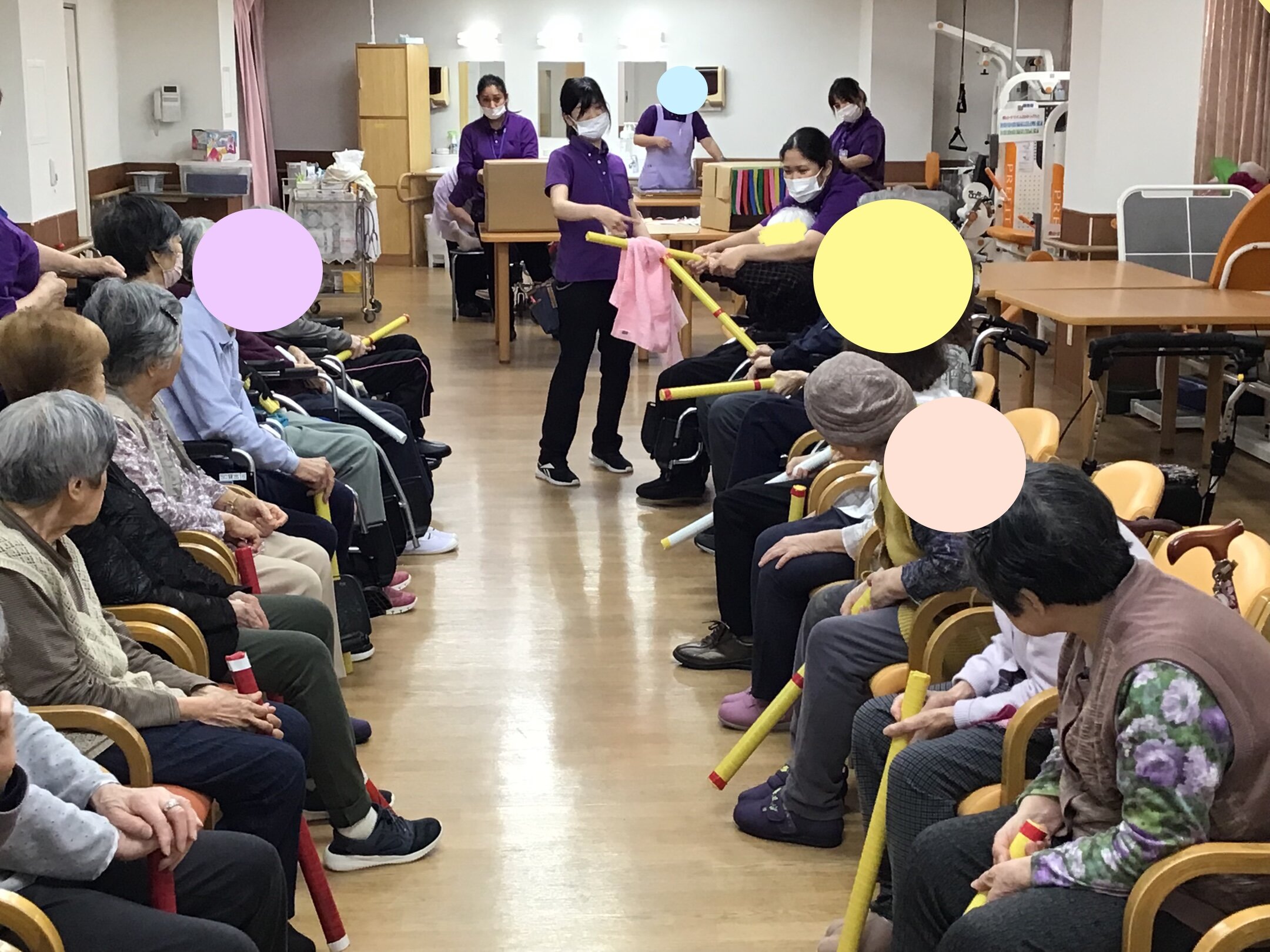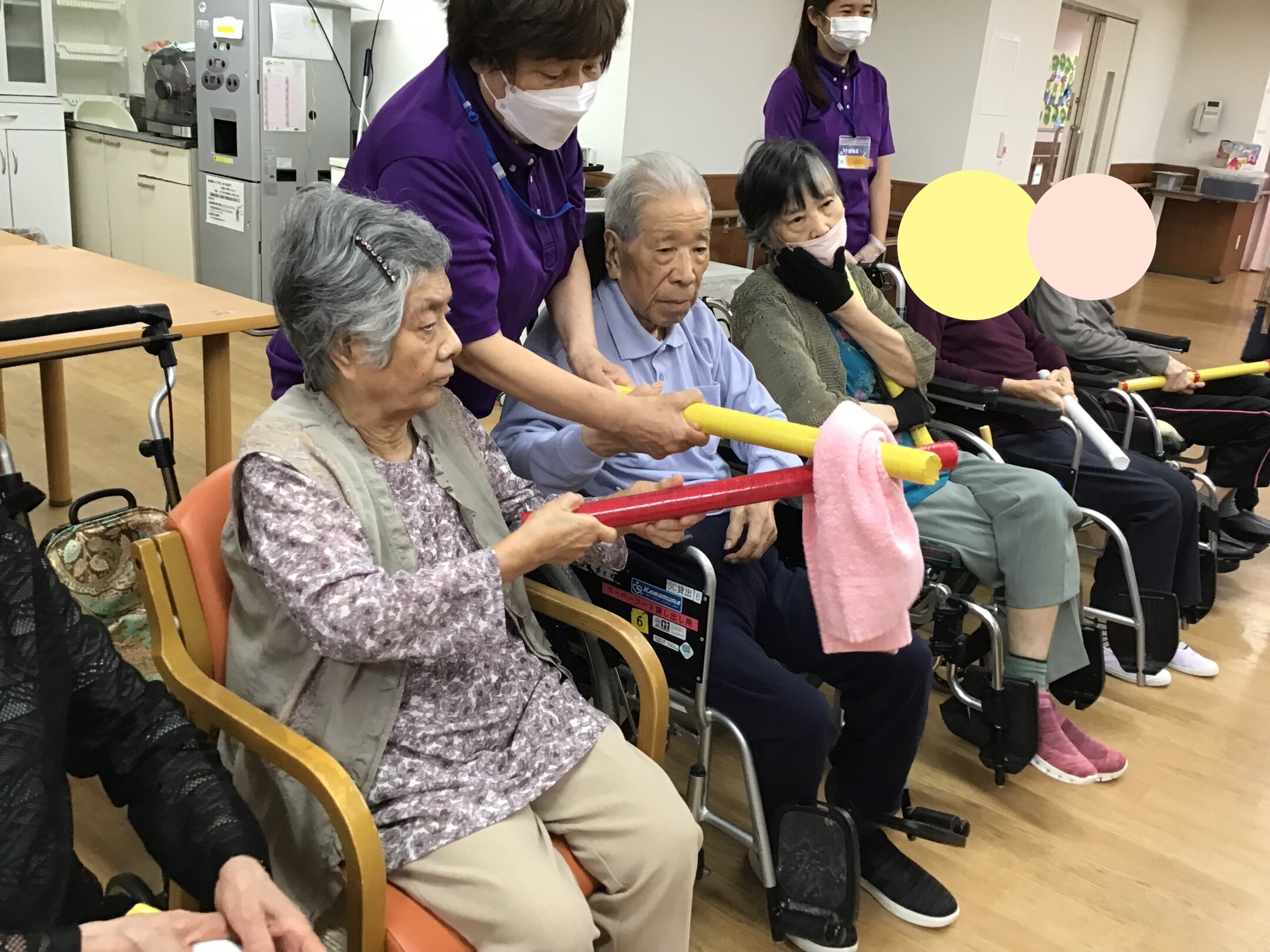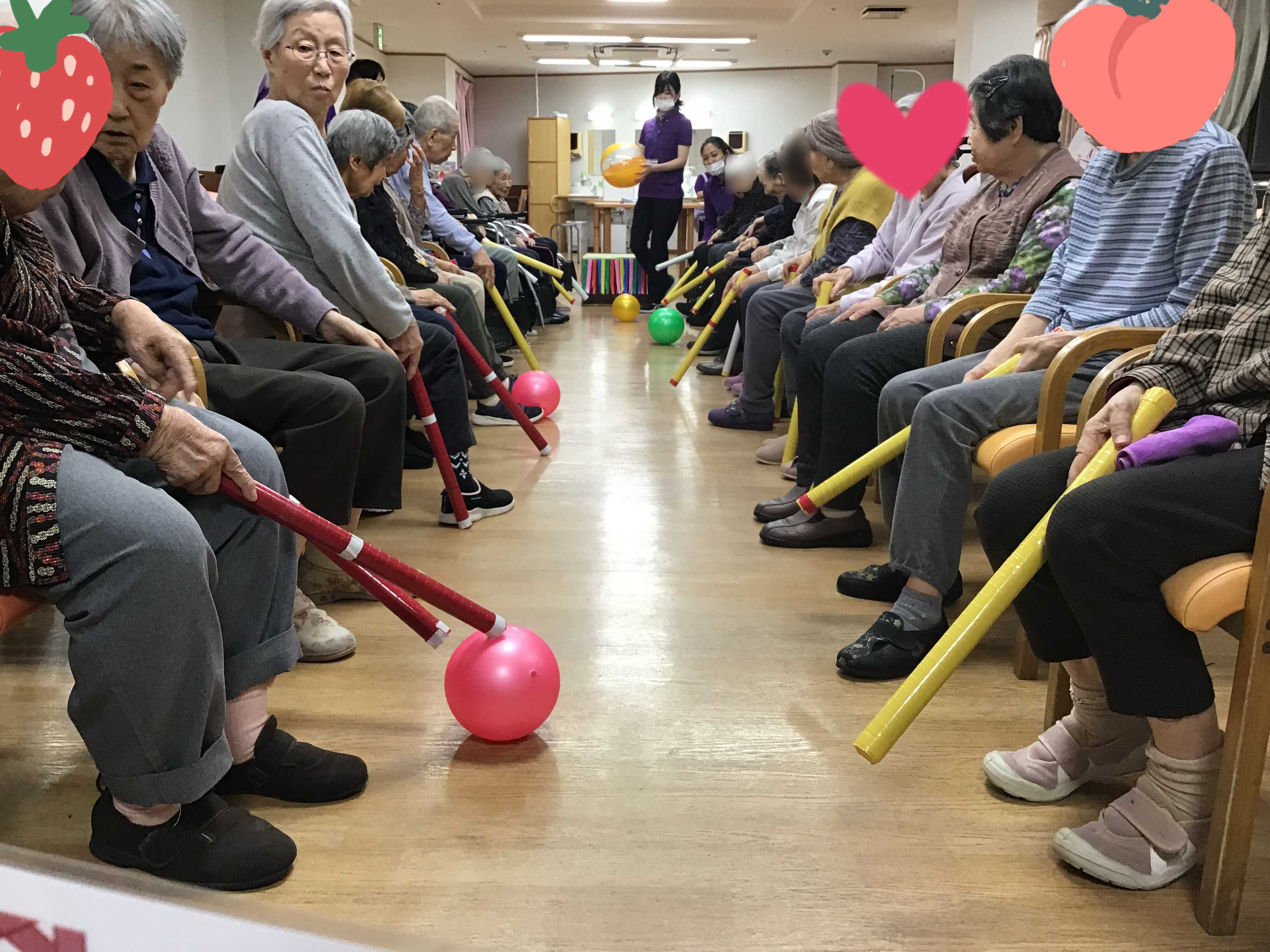 本日は先日堺神石2号館で行ったレクリエーションの「タオル回しとボール運び」についてご入居者の様子をお伝えします!!