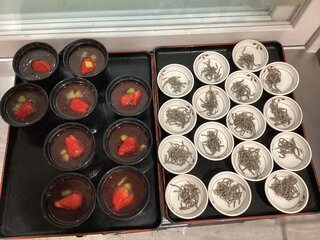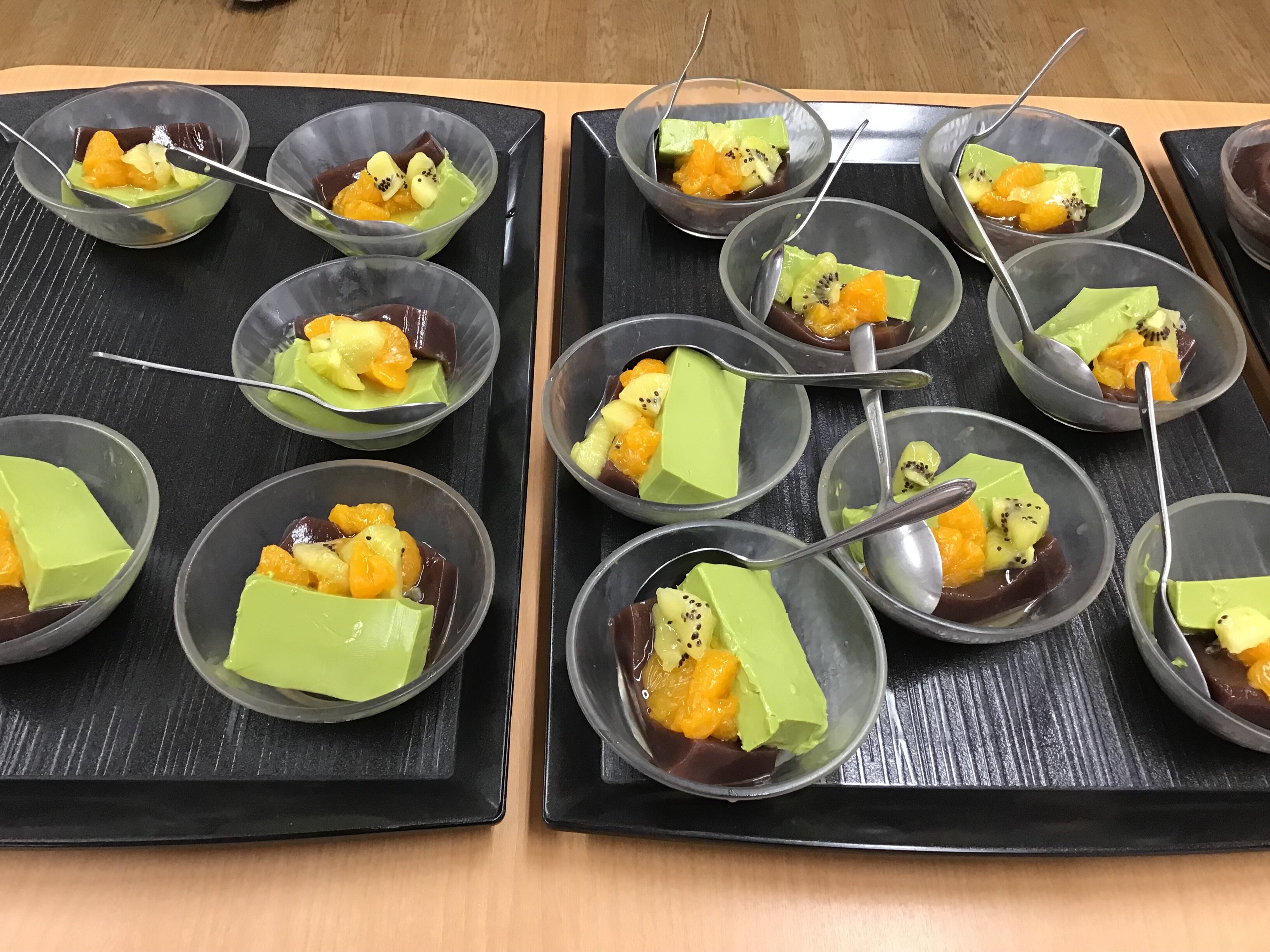 本日は、おやつレクで職員手作り、水羊羹パフェの提供をいたしました!