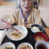 「今日も写真撮ってくれるの?ありがとうね‼」「食欲あるし元気やで~~。食べてエエかぁ(笑)」「出してもらった分はキッチリ食べます。食べな元気出ぇへんしなぁ」と皆さま食べる・飲むについて意欲的に取り組まれていて、一人前の料理をしっかりと召し上がっておられましたよ。