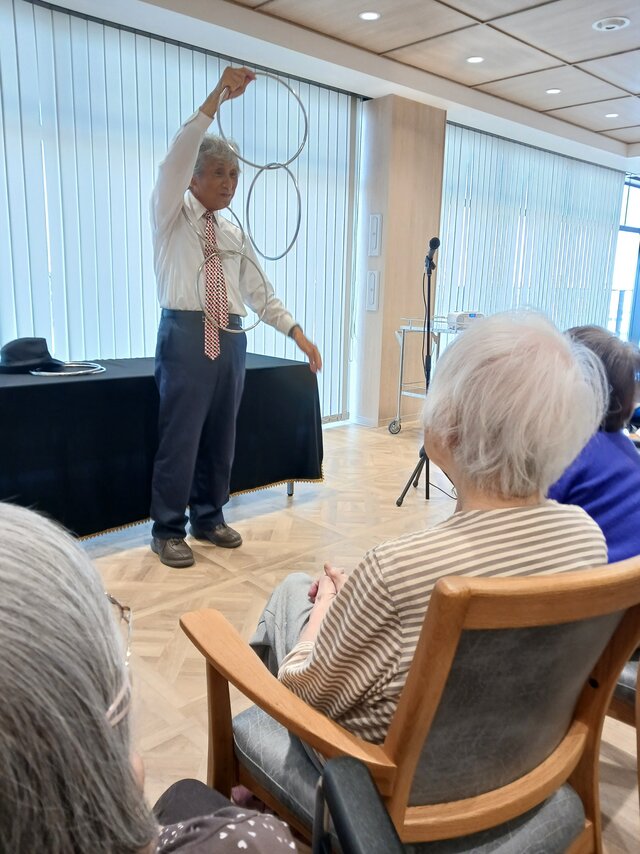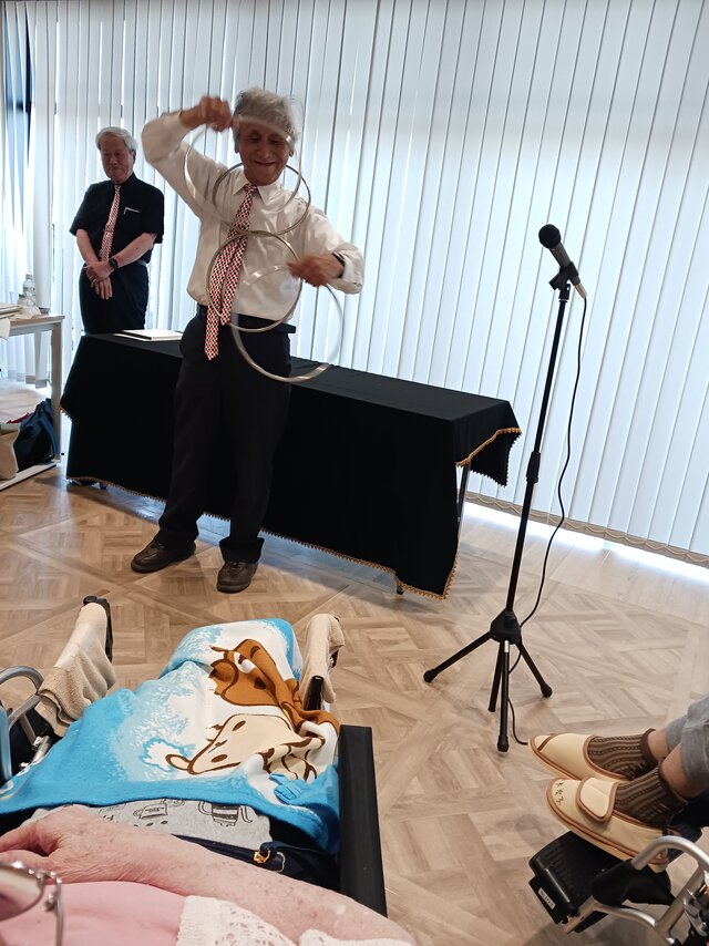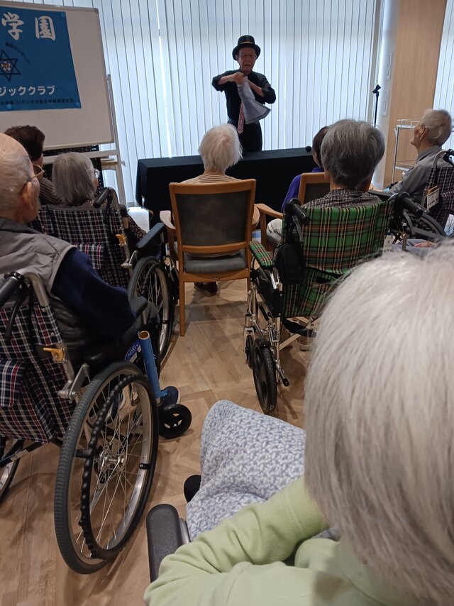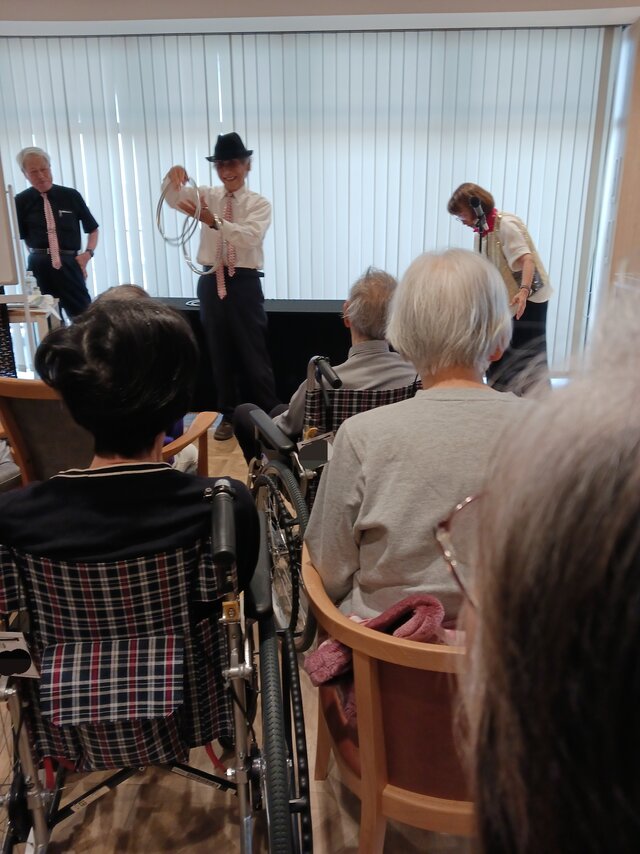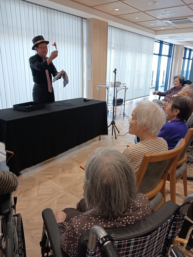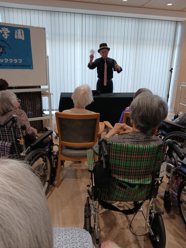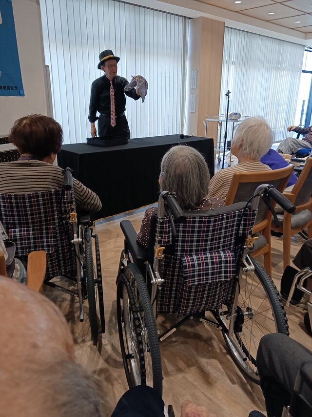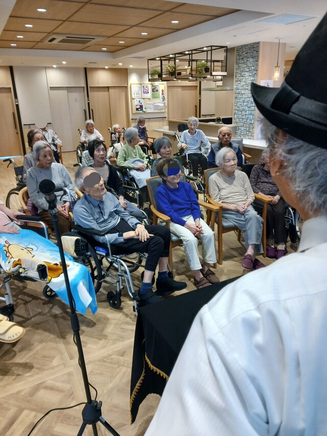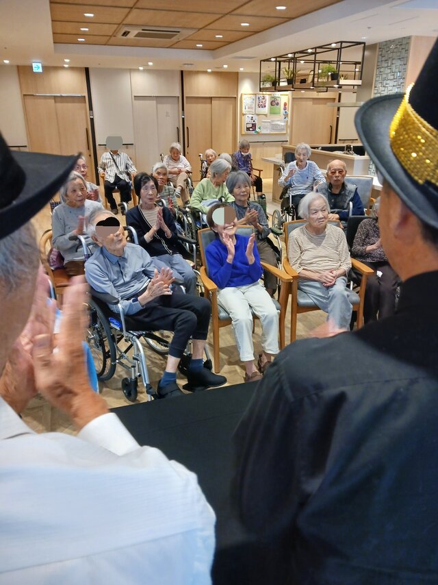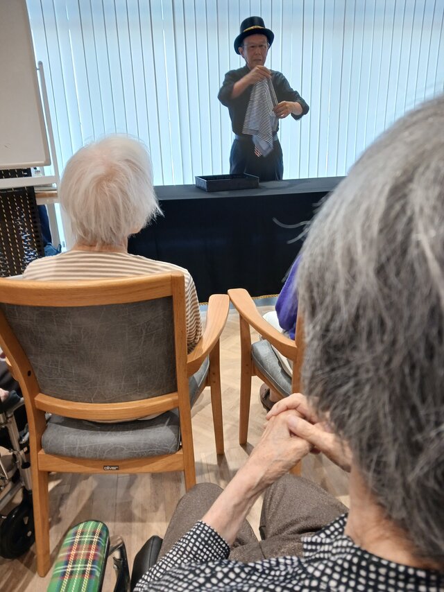 今回は、【宮水マジック】様の皆さま4名での公演という事で入居者の皆さまは前へ前へとカブリつきの席でマジックを間近で見せてもらいました。