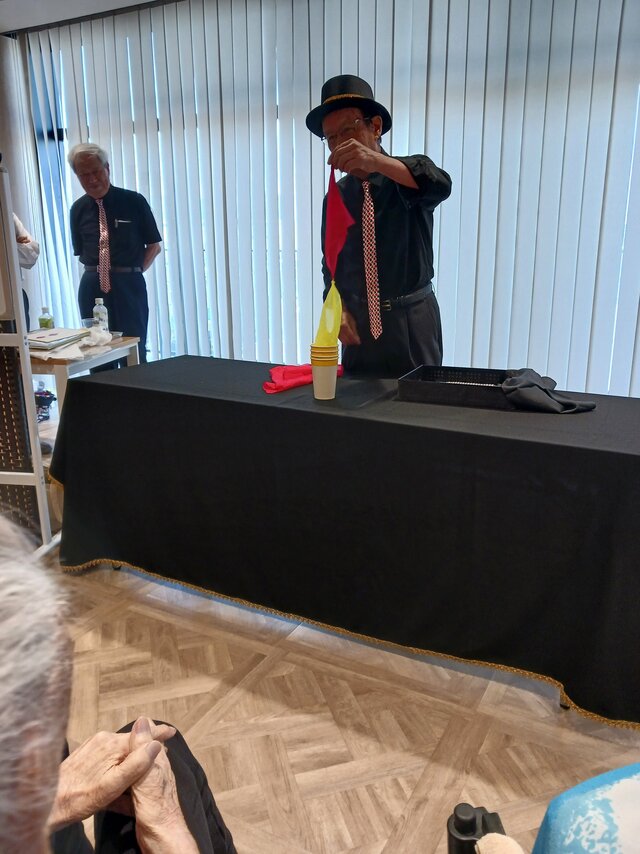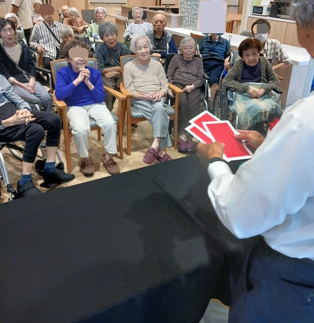 『タネも仕掛けもありますからね~~、なんでかなぁ~って考えてみて下さいね(笑)』手品が変わるたびに、毎回 一生懸命に目を凝らしてじっ~~と見ているのにマジックのタネが全然わかりません。「うわぁ~~~~、何でやろ!」「すごい~~~」と皆さま大きなリアクションでビックリされていましたよ。