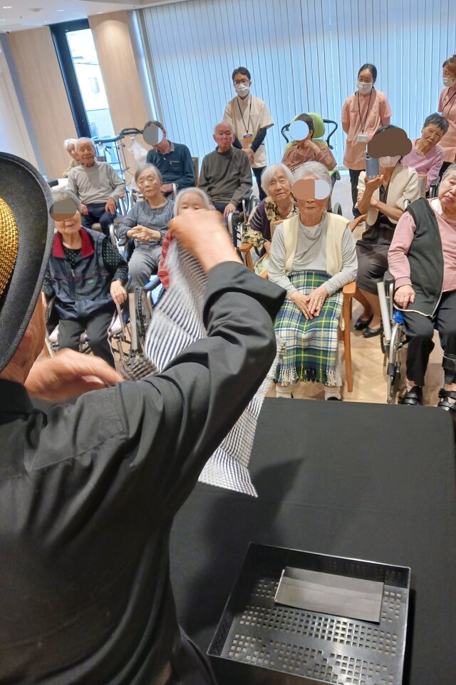 『コレが一体全体、どうなると思いますかぁ~~』次々と手品が変わるたびに、スタッフも含めて毎回毎回 一生懸命に目を凝らしてじっ~~と見ているのにマジックのタネが全然わかりません。「うわぁ~~~~、すごい~~~」「なんでかなぁ。全然わからんね~~」と皆さま大きなリアクションでビックリされていましたよ。