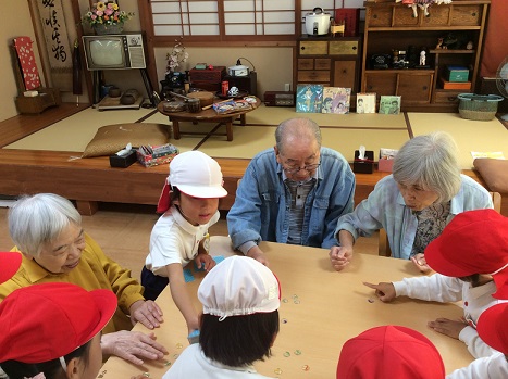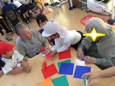 お歌の後はご入居者と一緒に折り紙を折ったりおはじきで遊んだりしました(*^_^*)