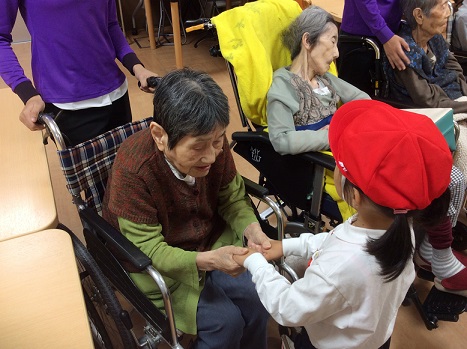 ご入居者と子供達が抱きあう姿は、最高ですね。