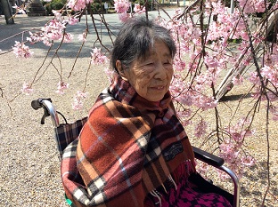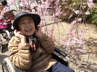 桜の綺麗な神社があるんですね。ご入居者様の笑顔があふれていますね!