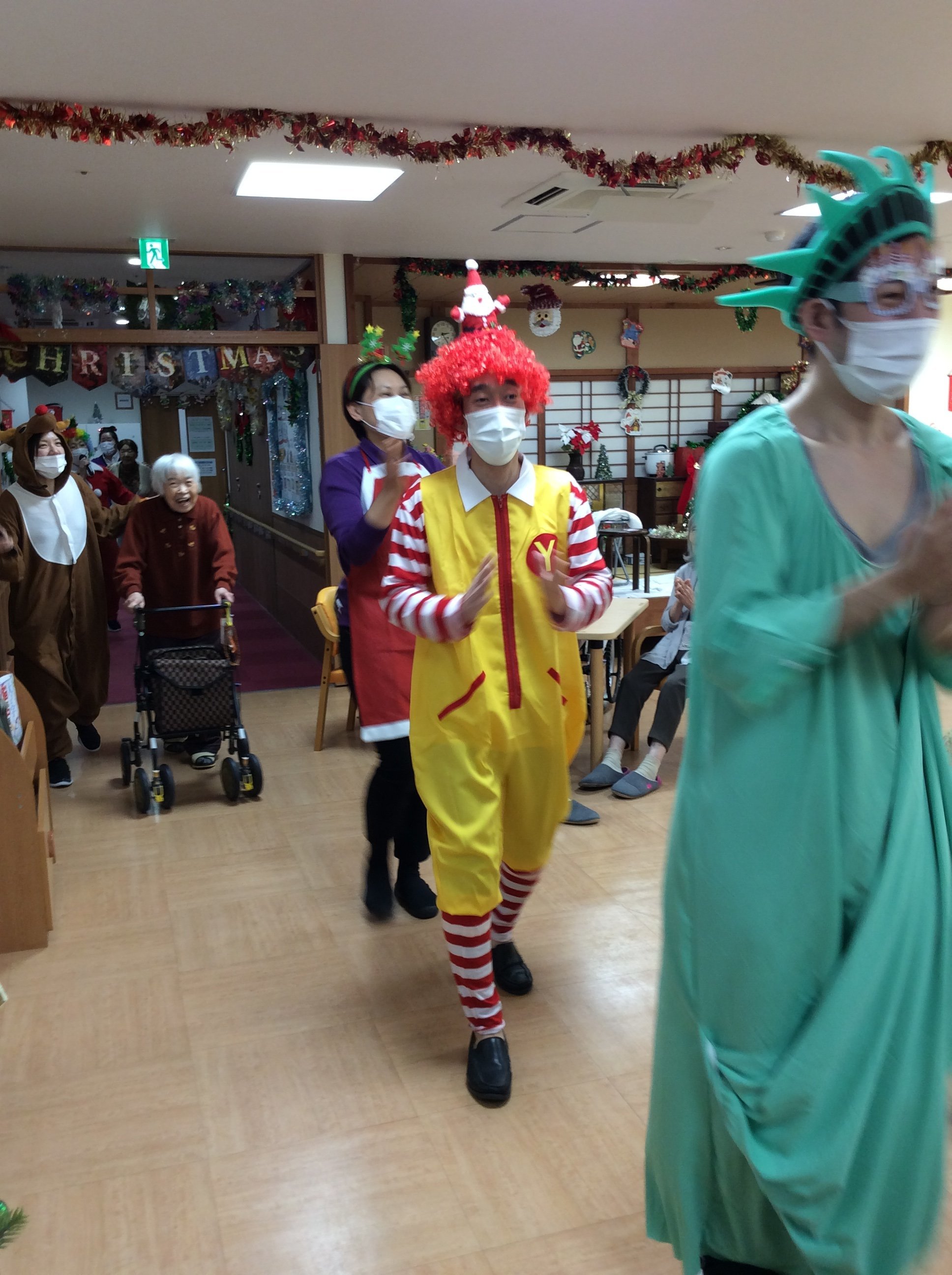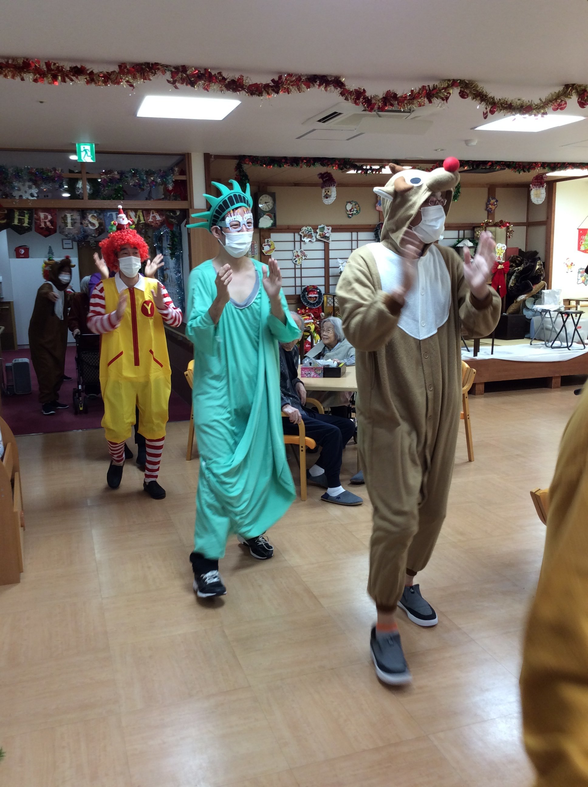 職員の方が色んな衣装に着替えられていて、ご入居者のかたも喜ばれた事と思います。