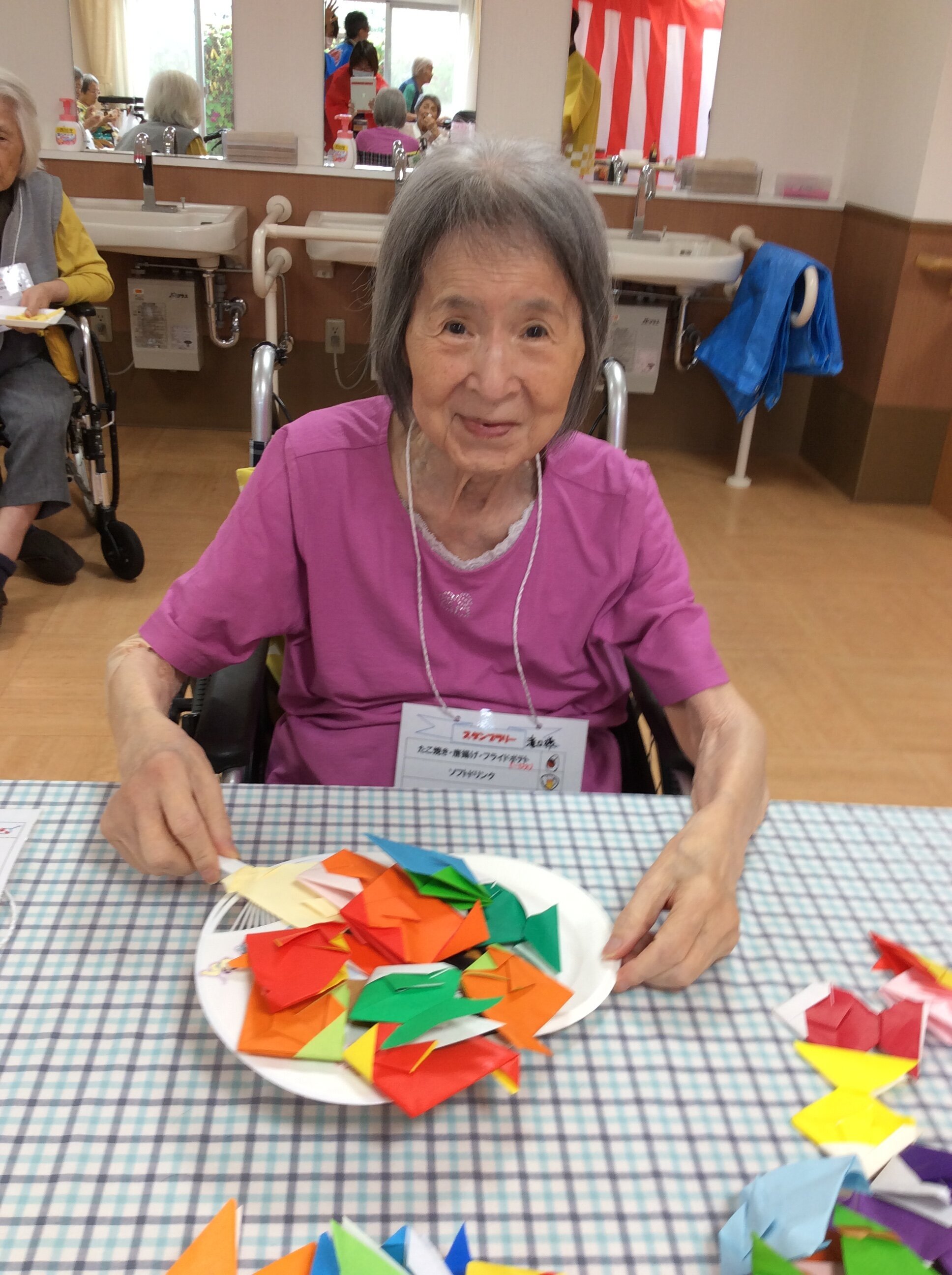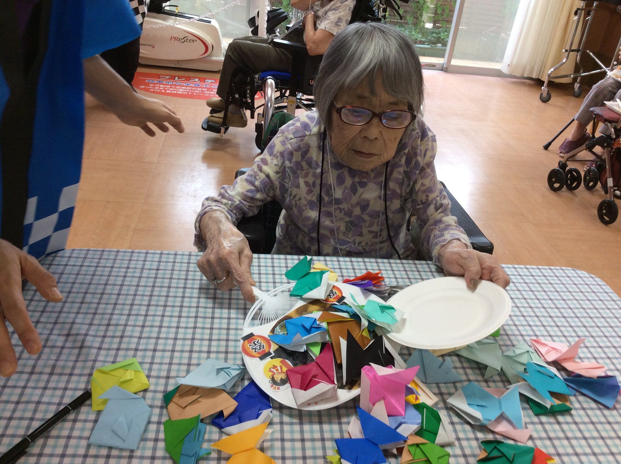 折り紙で作った手作りの金魚すくいです。皆様にはとても楽しんで頂けましたよ。。