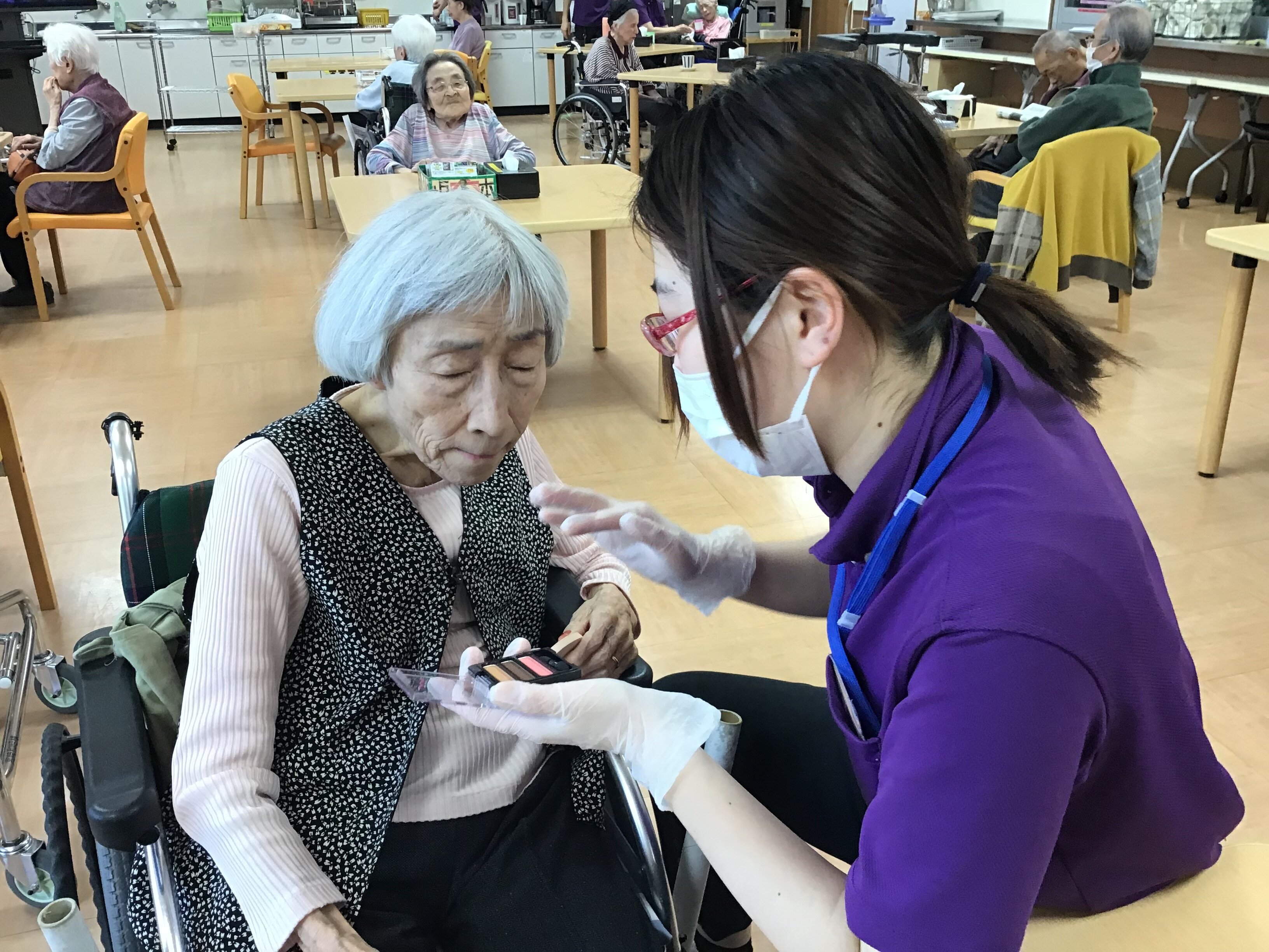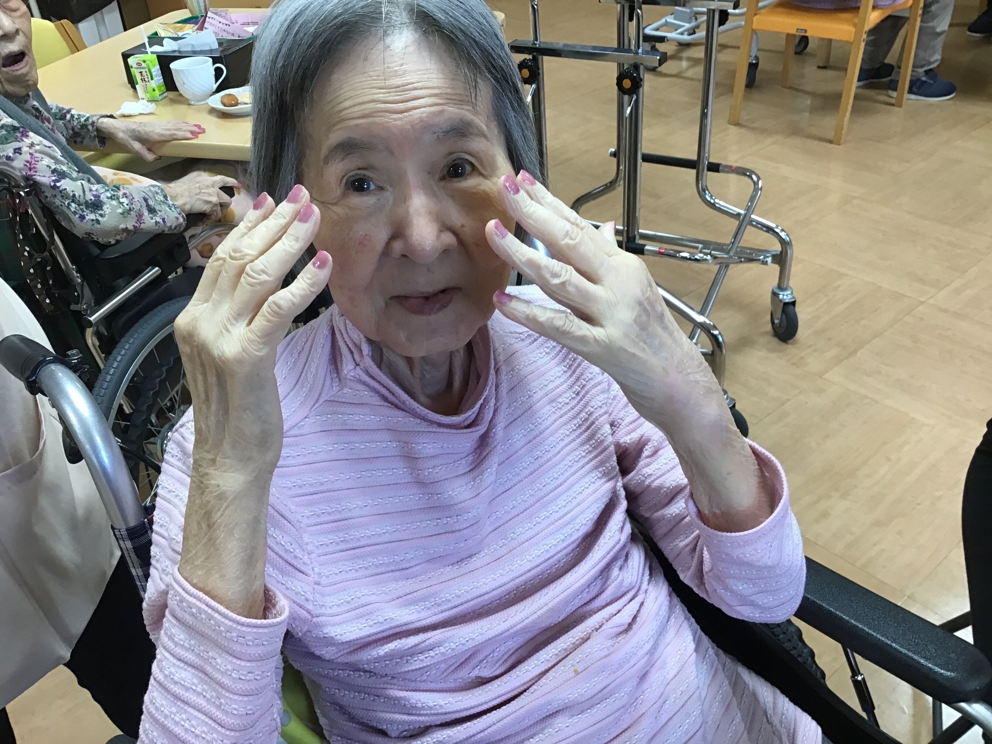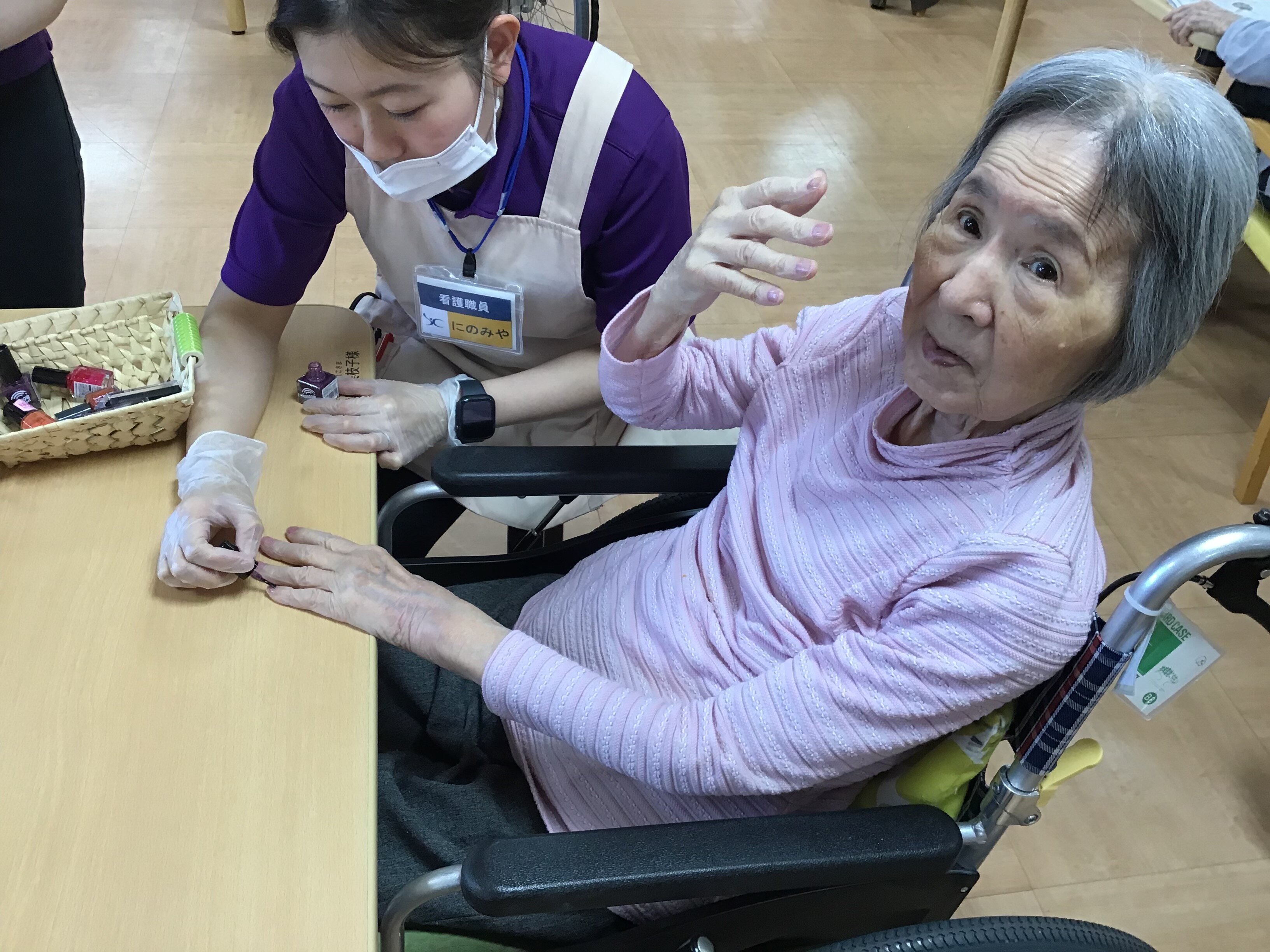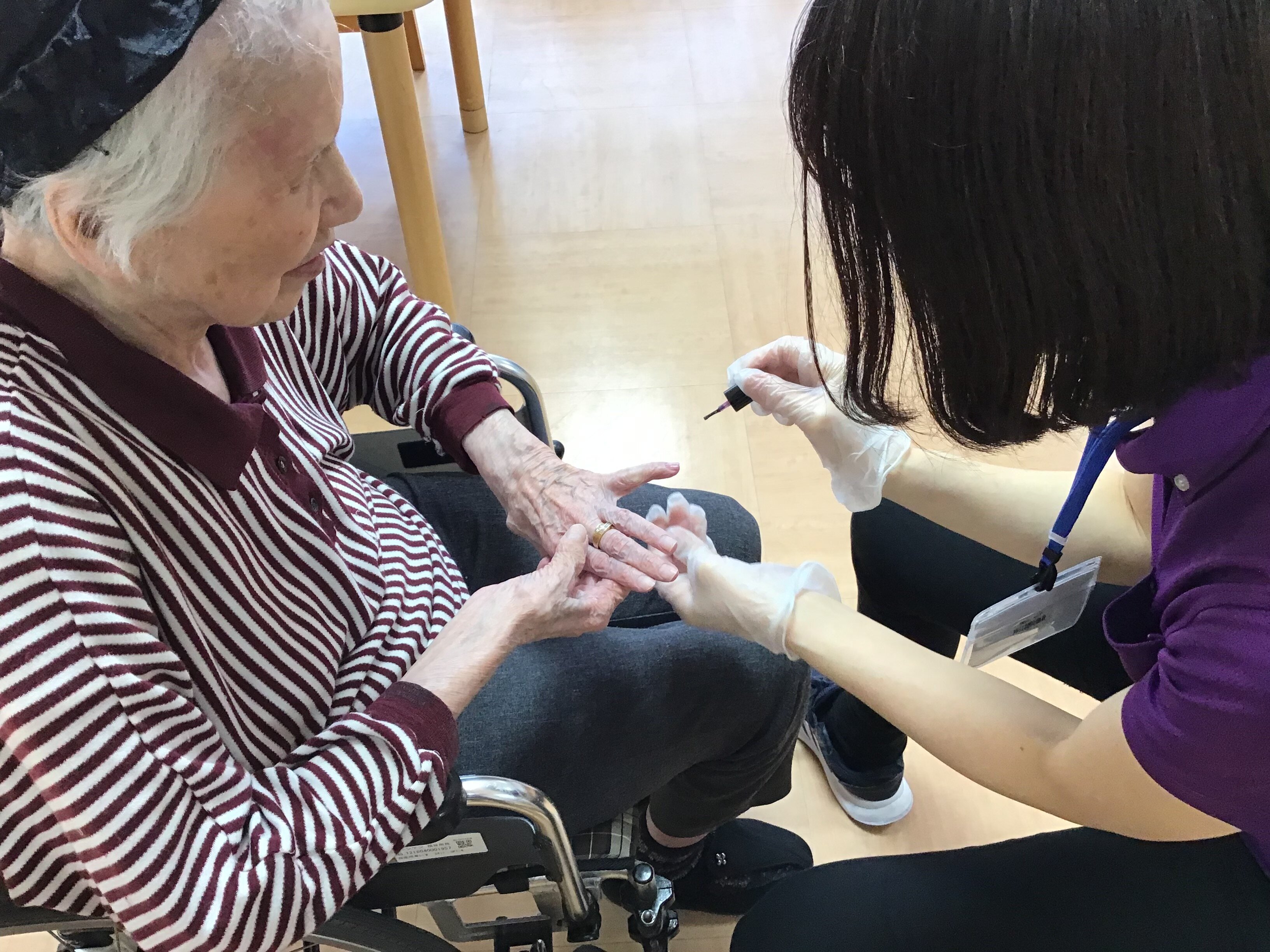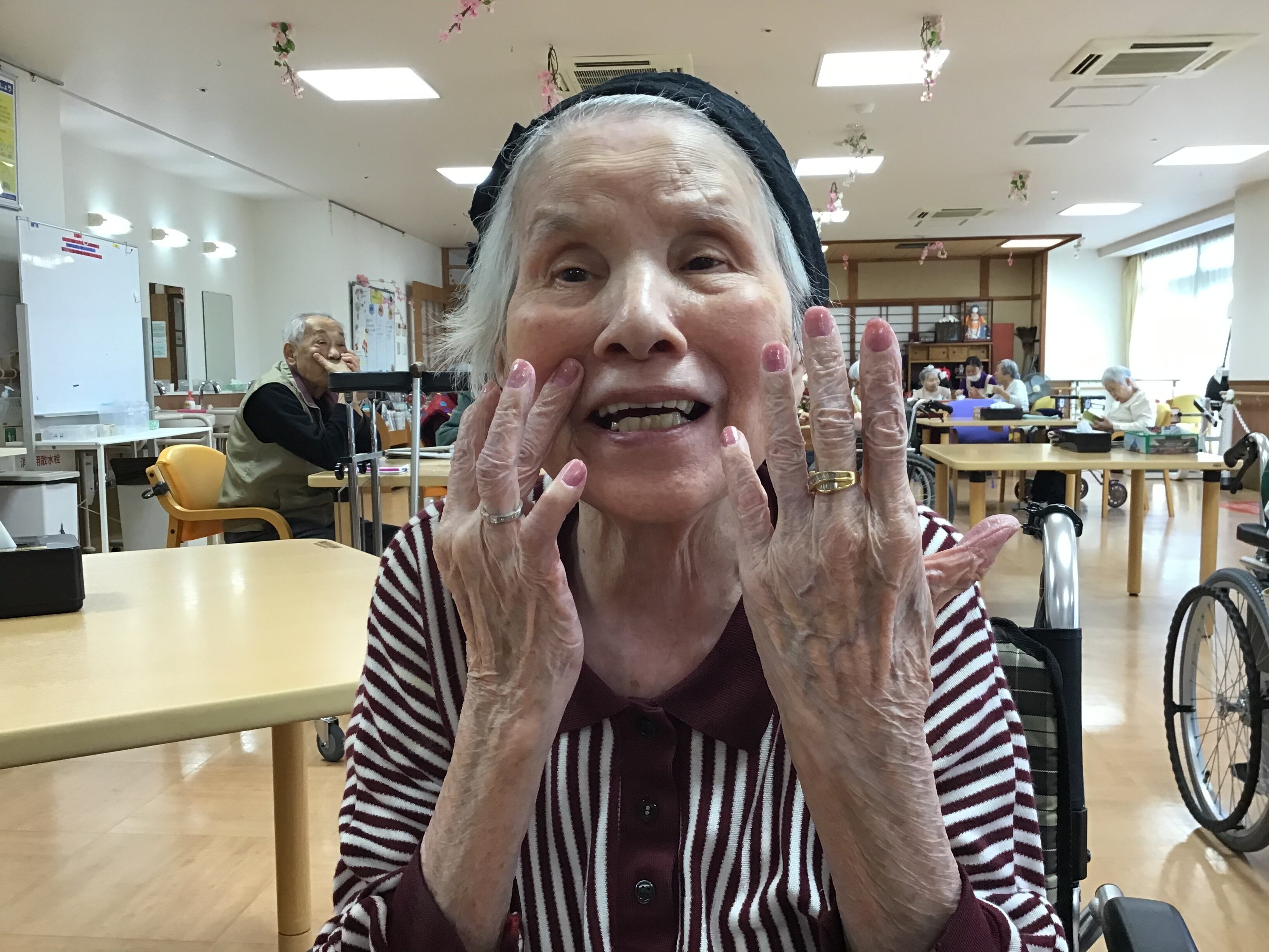 今回は、母の日に女性のご入居者の方々にネイルとお化粧をさせて頂きました。