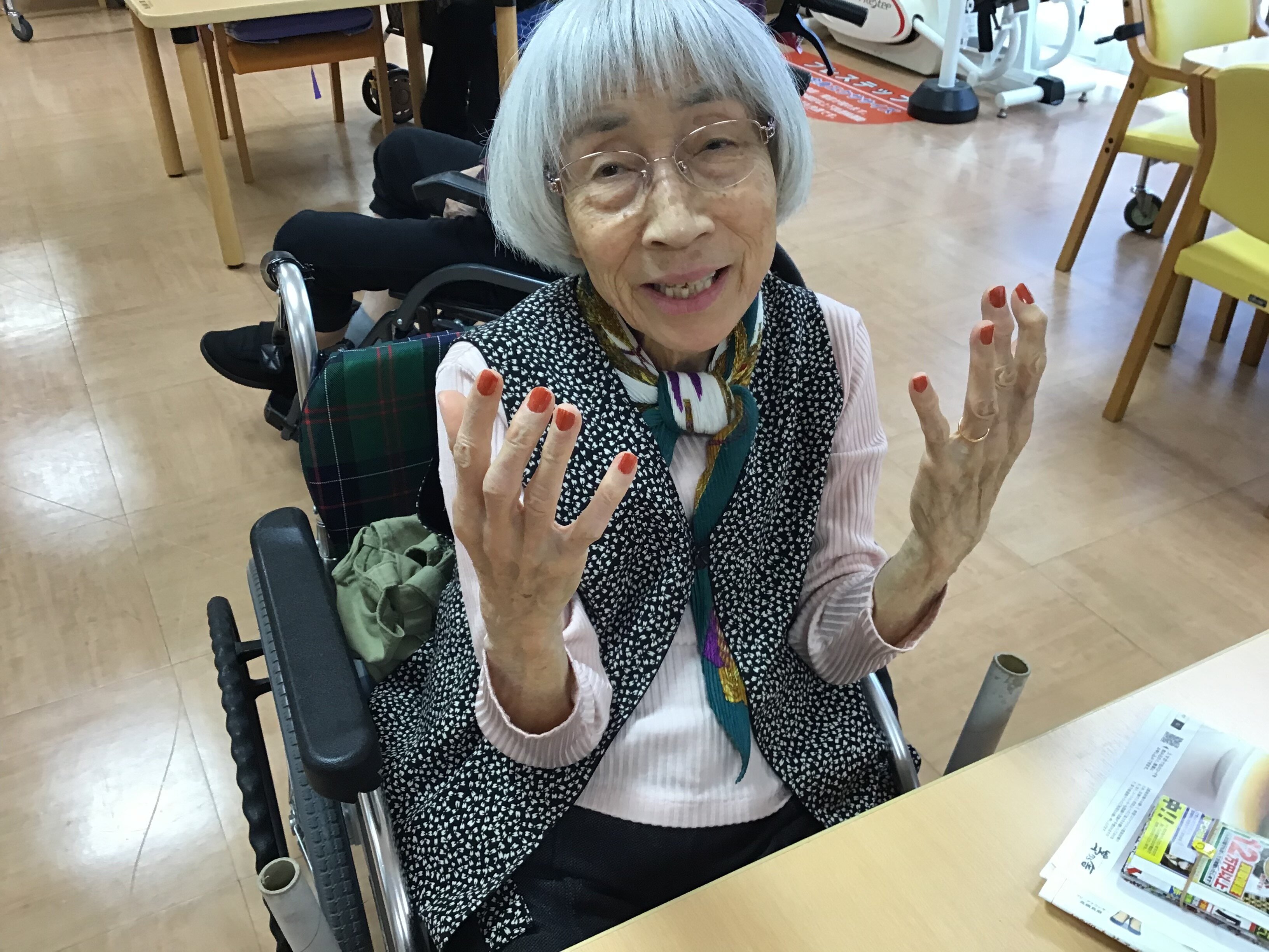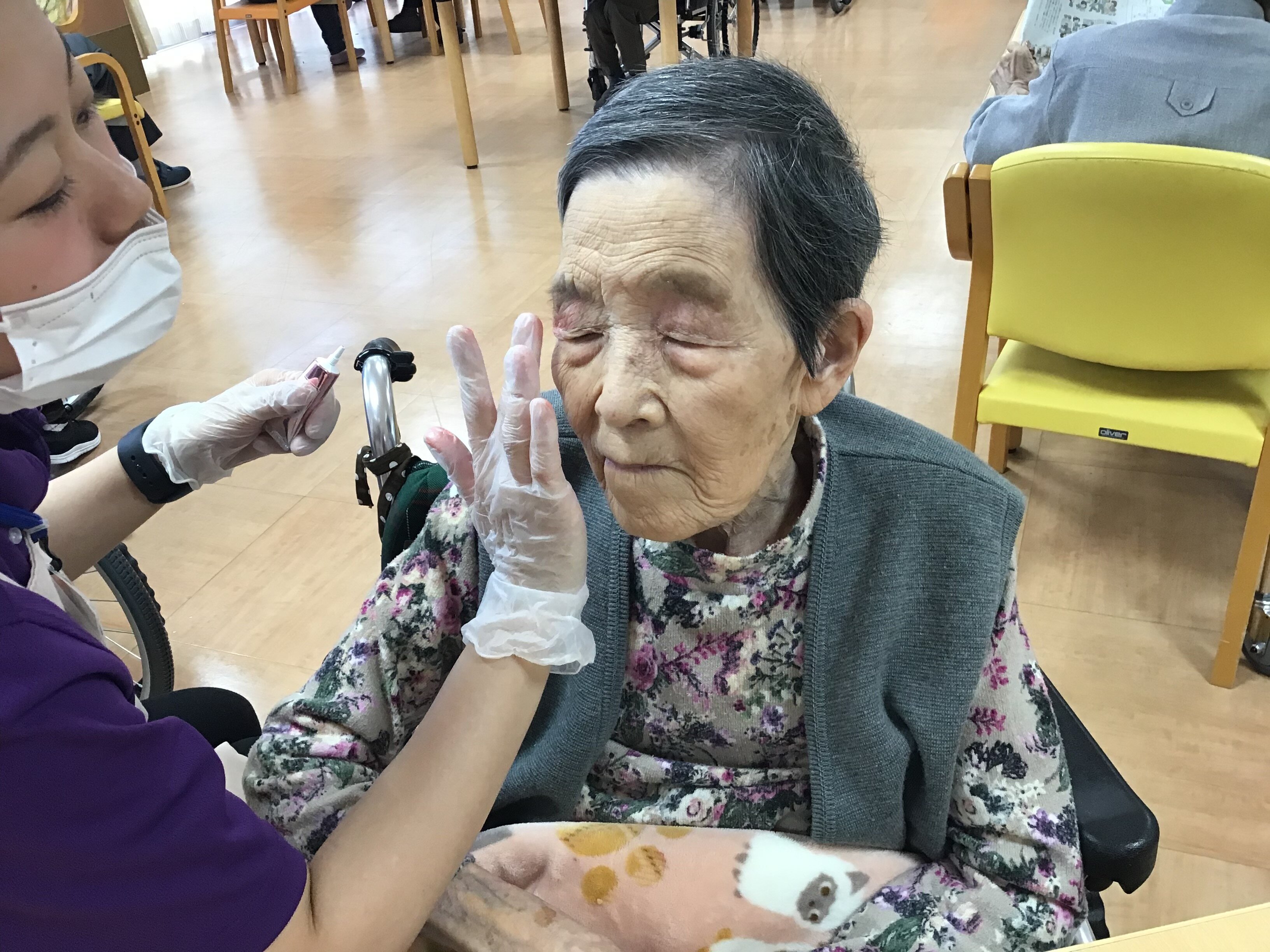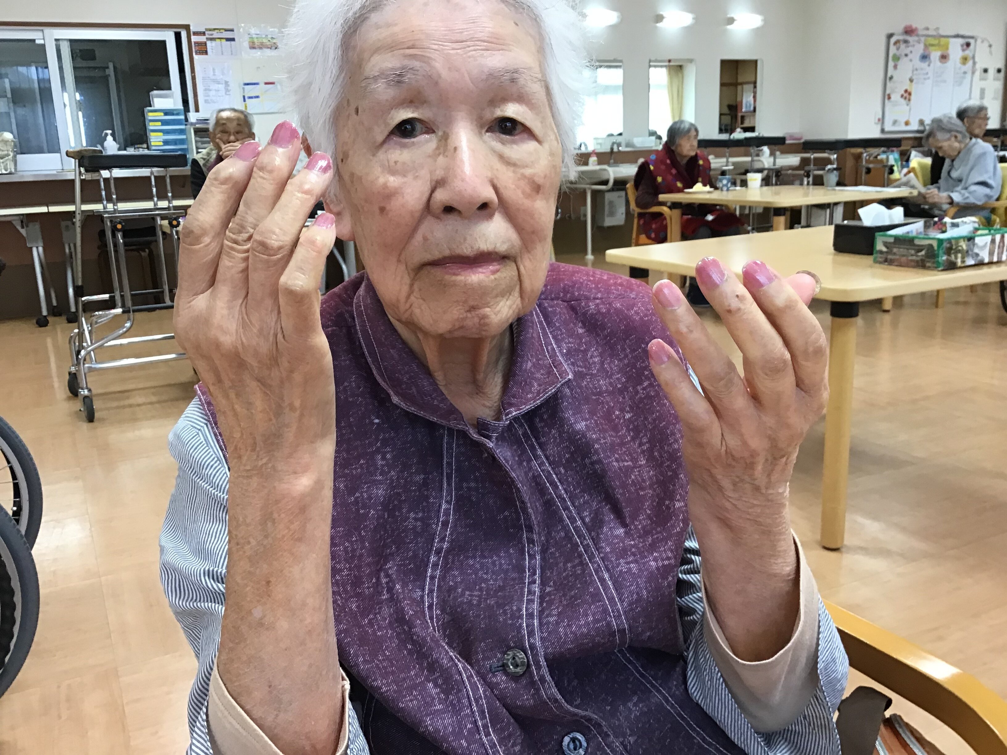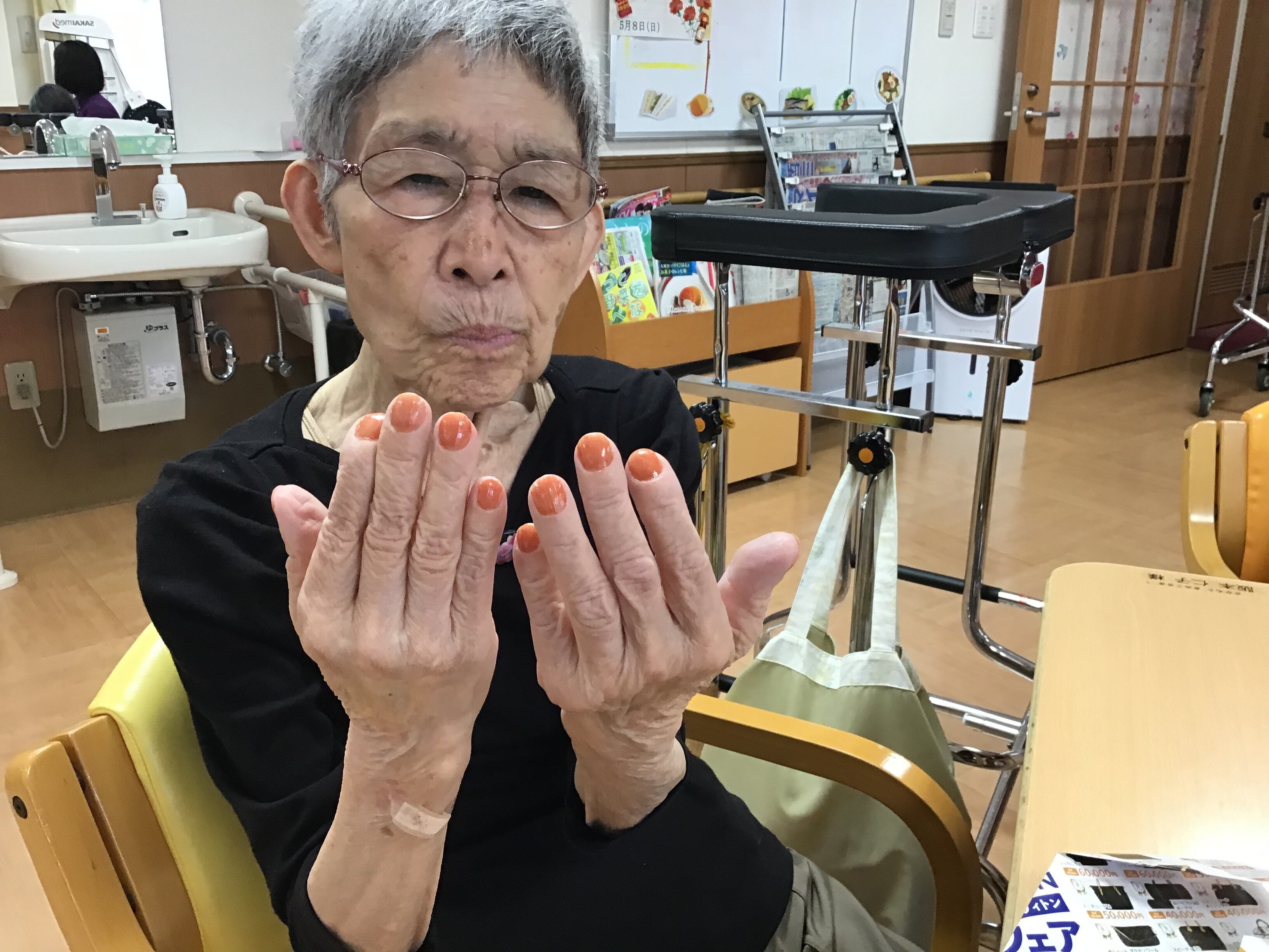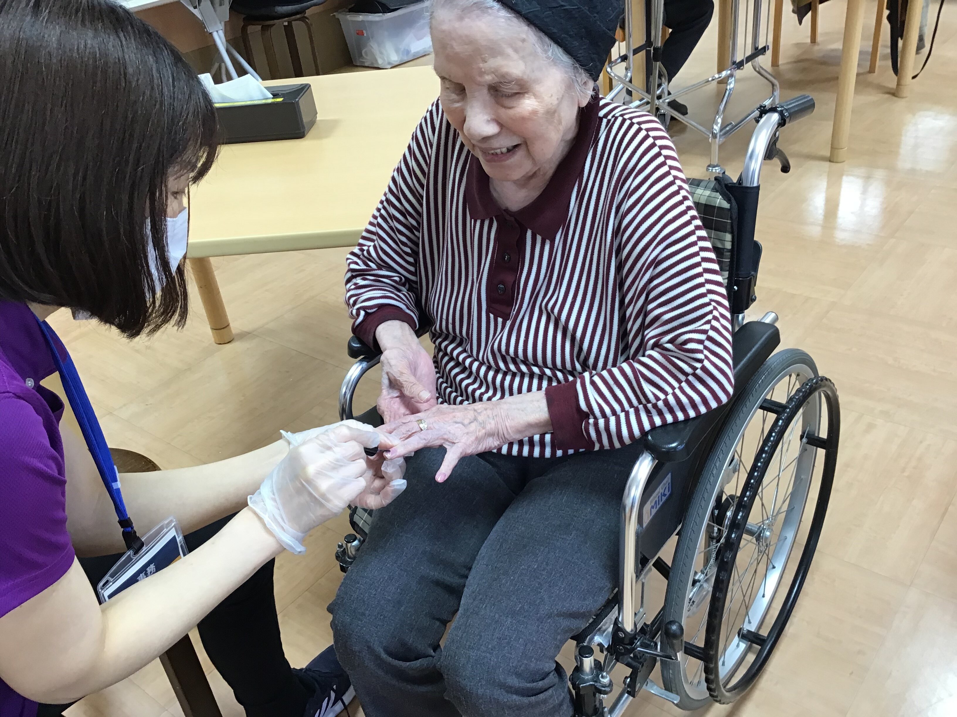 今回は、母の日に女性のご入居者の方々にネイルとお化粧をさせて頂きました。