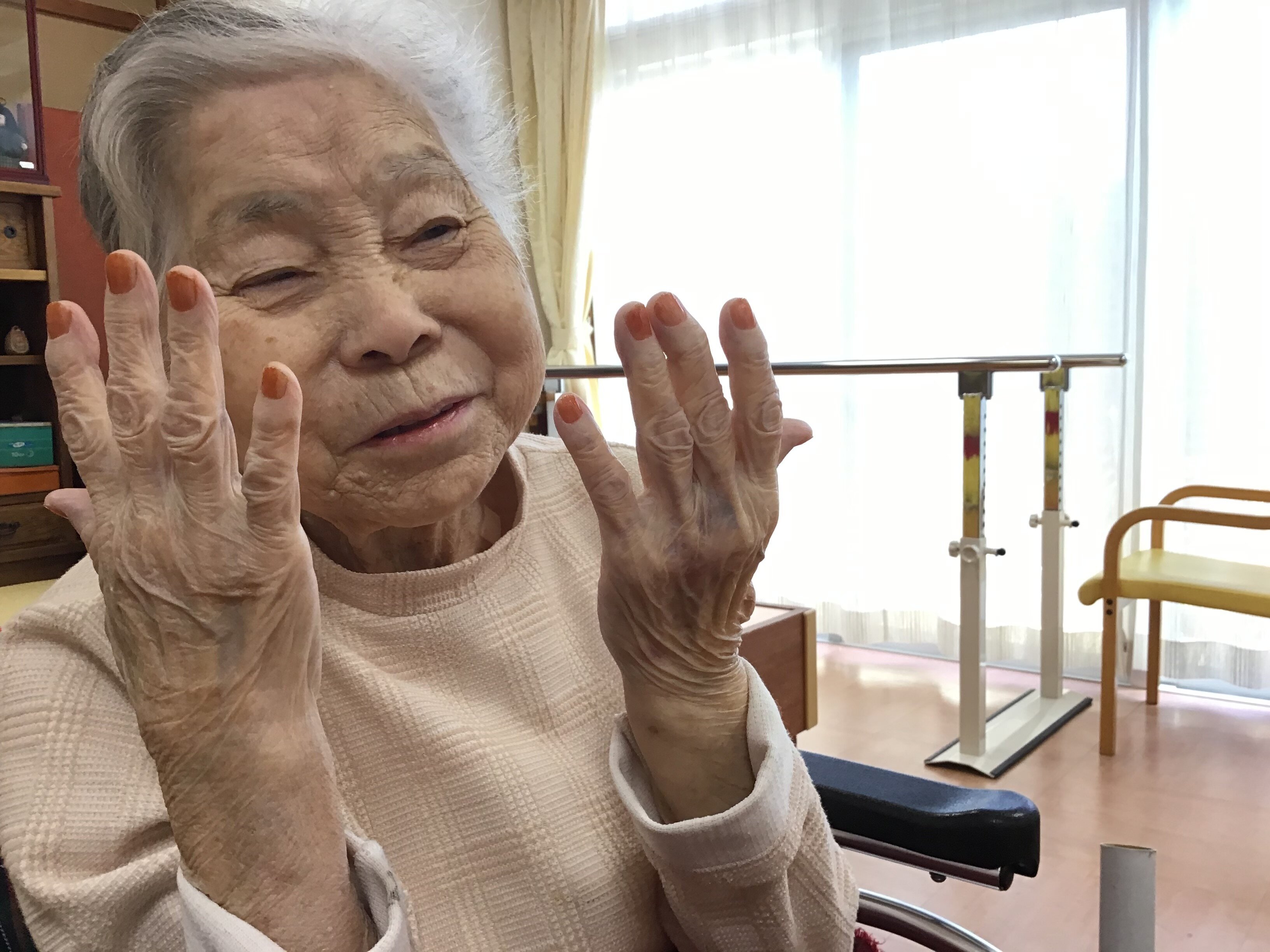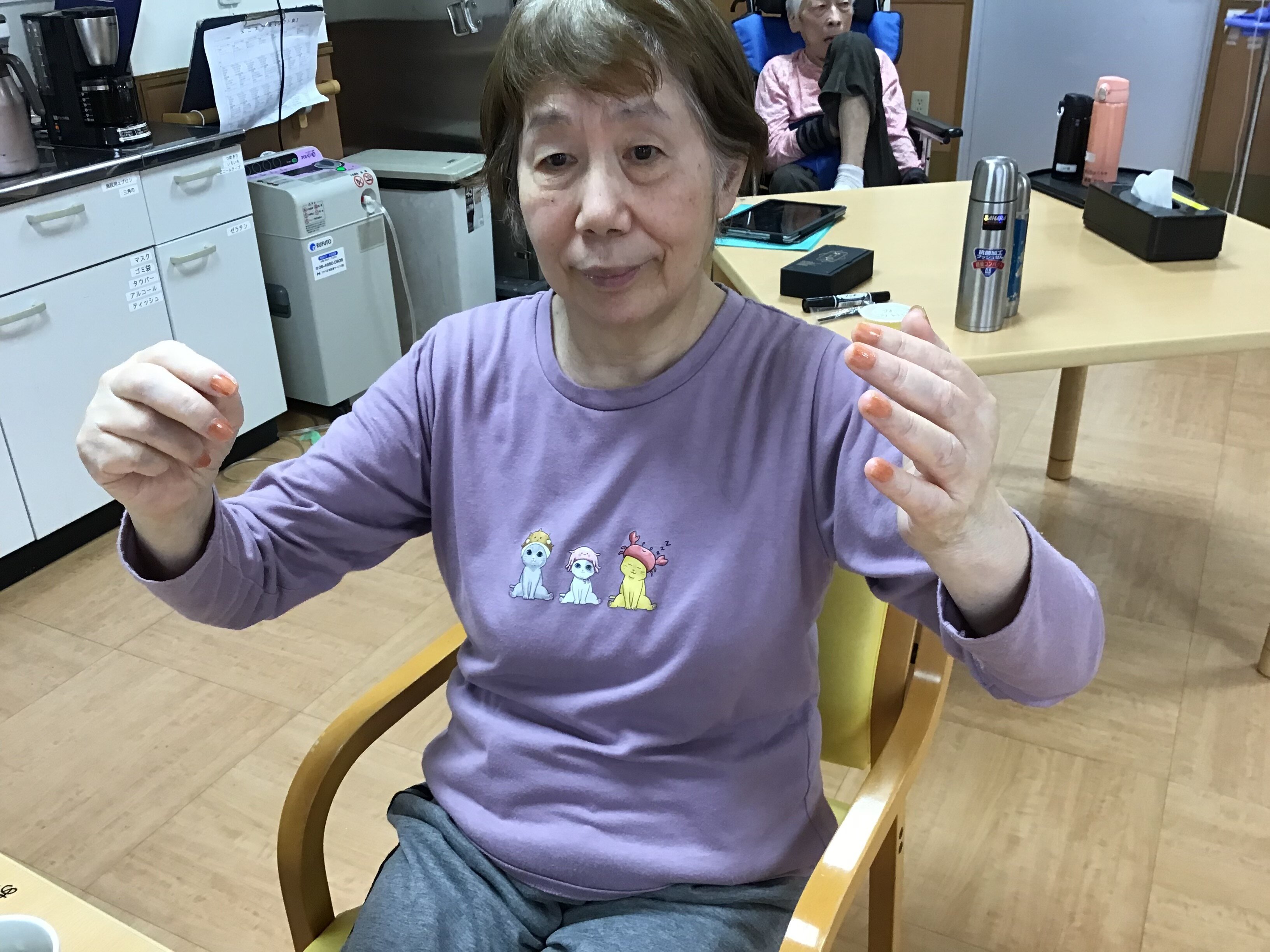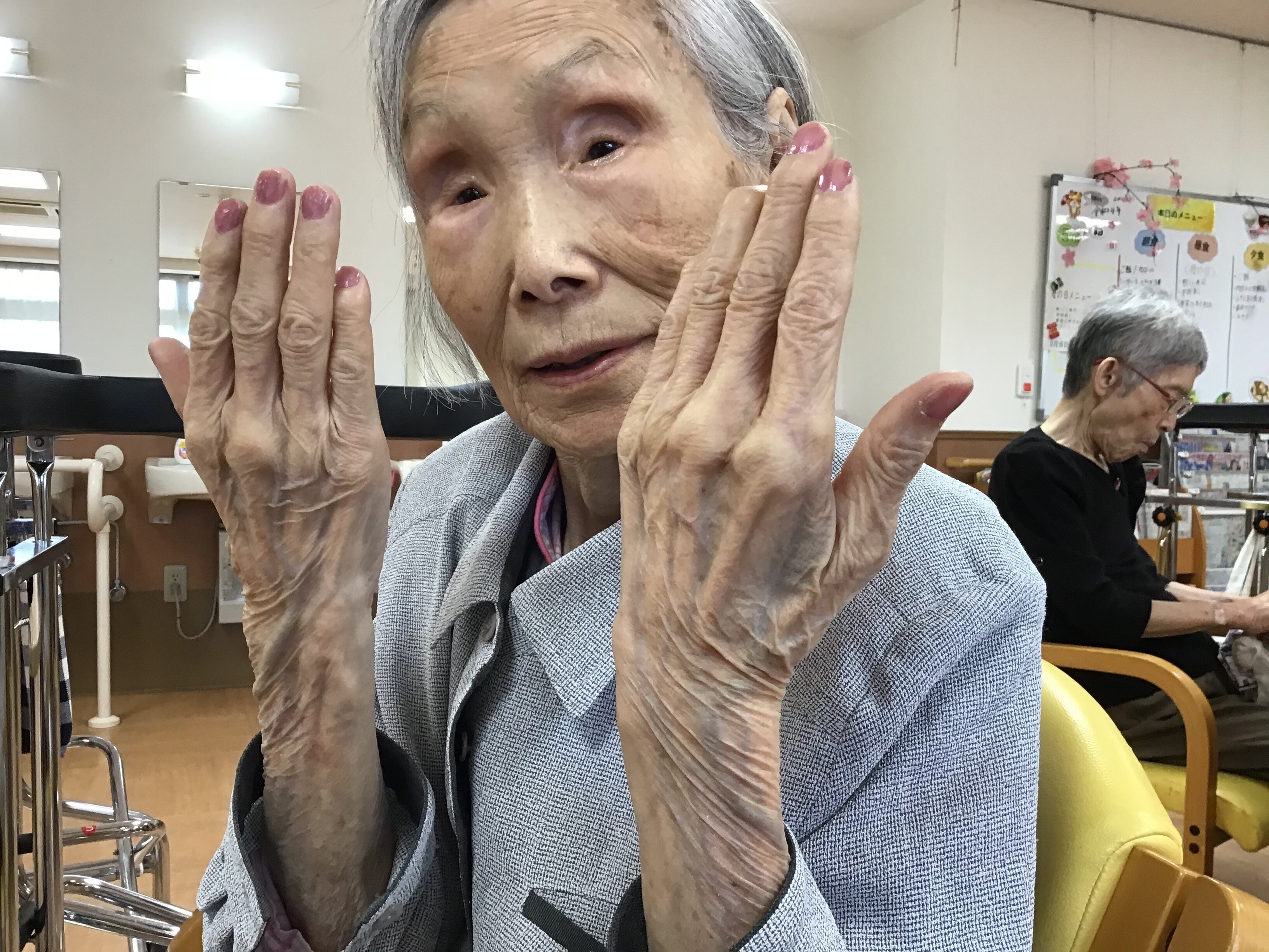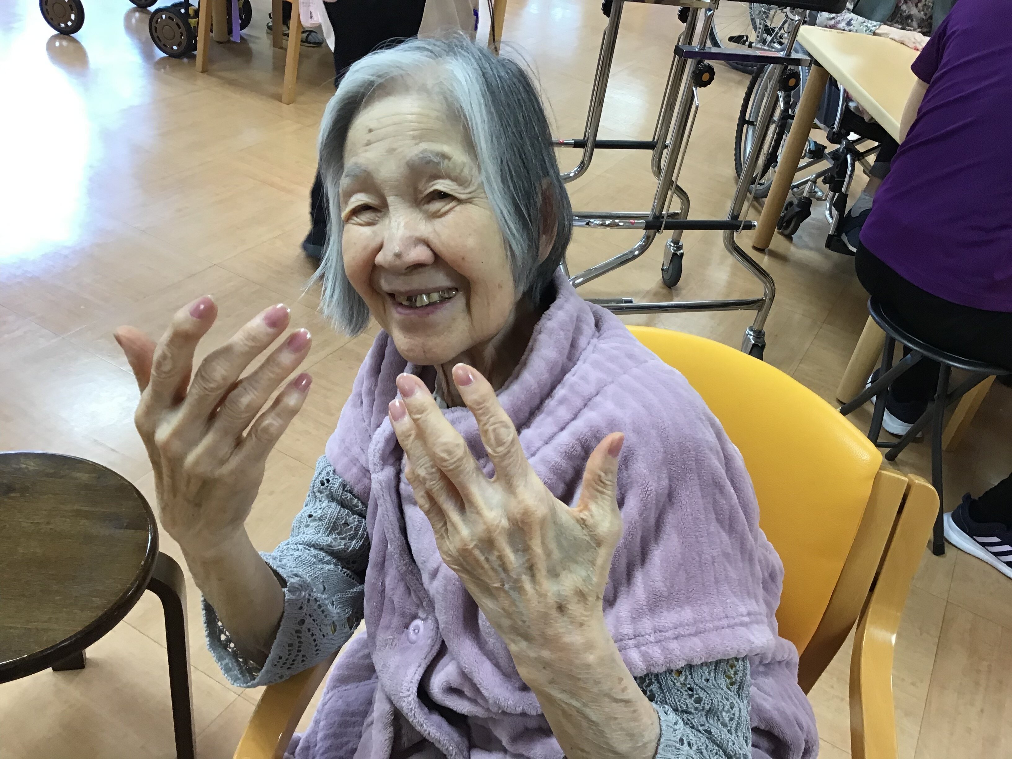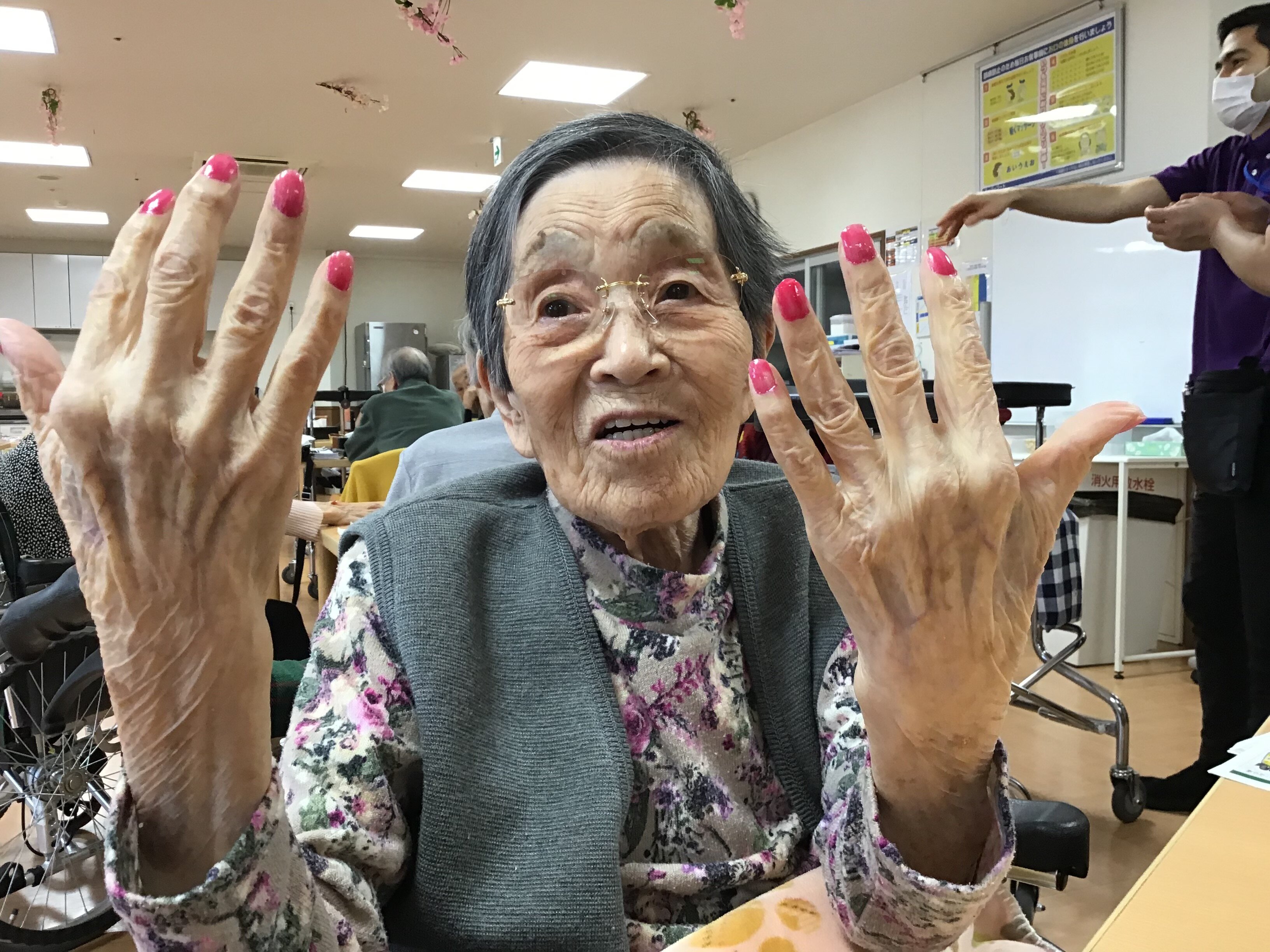 今回は、母の日に女性のご入居者の方々にネイルとお化粧をさせて頂きました。