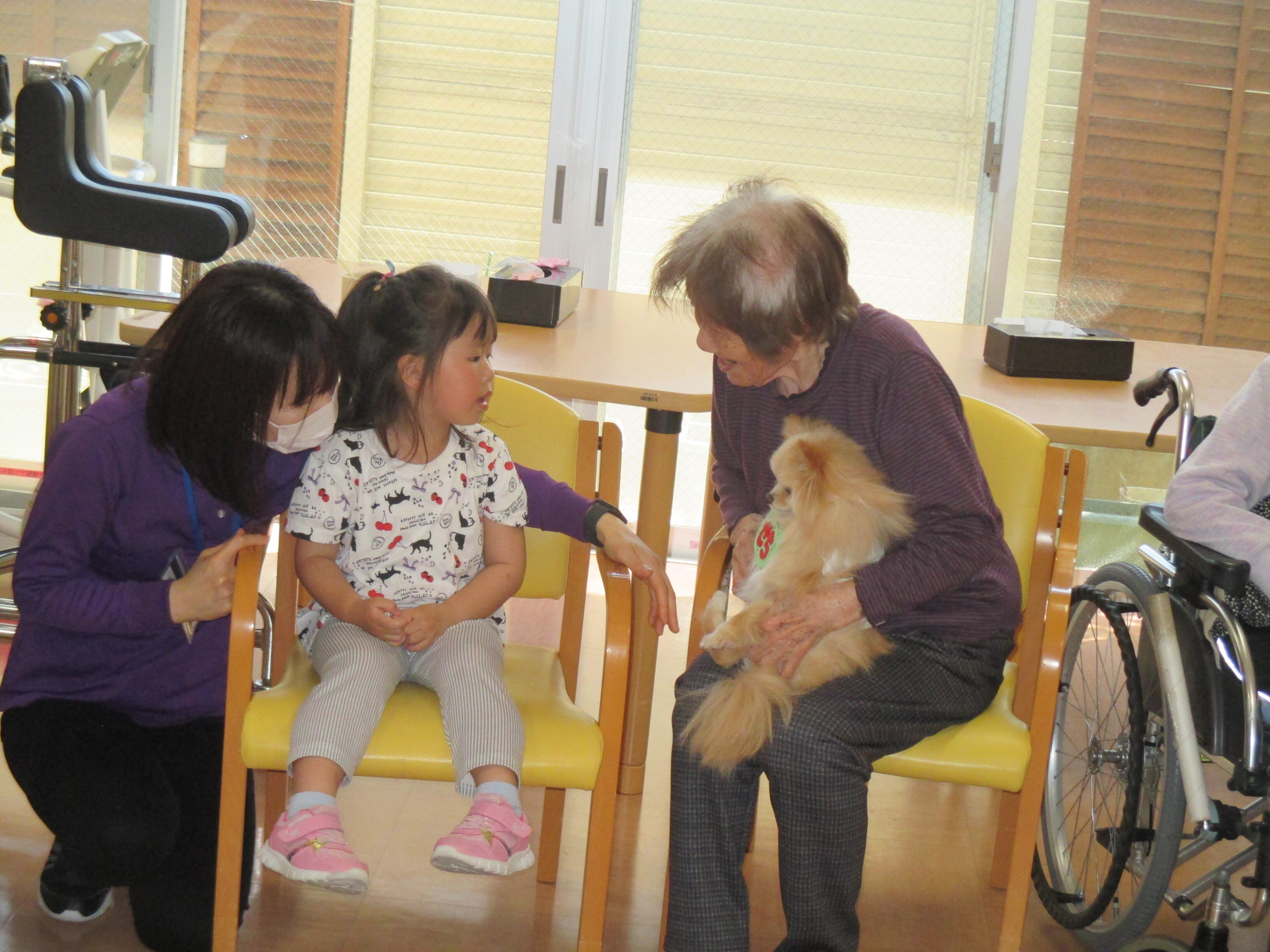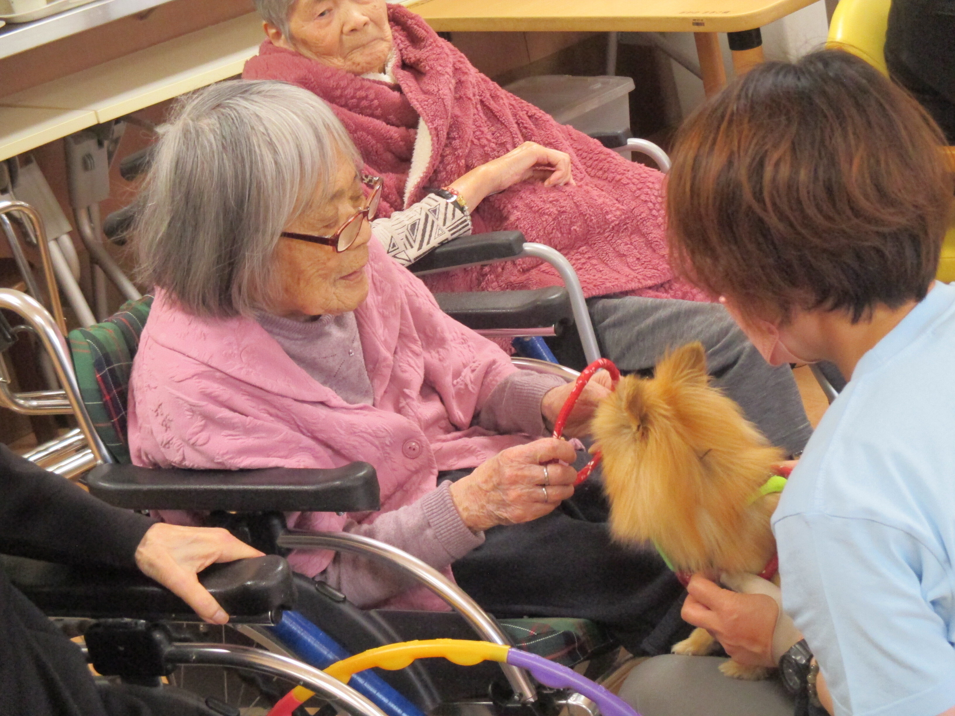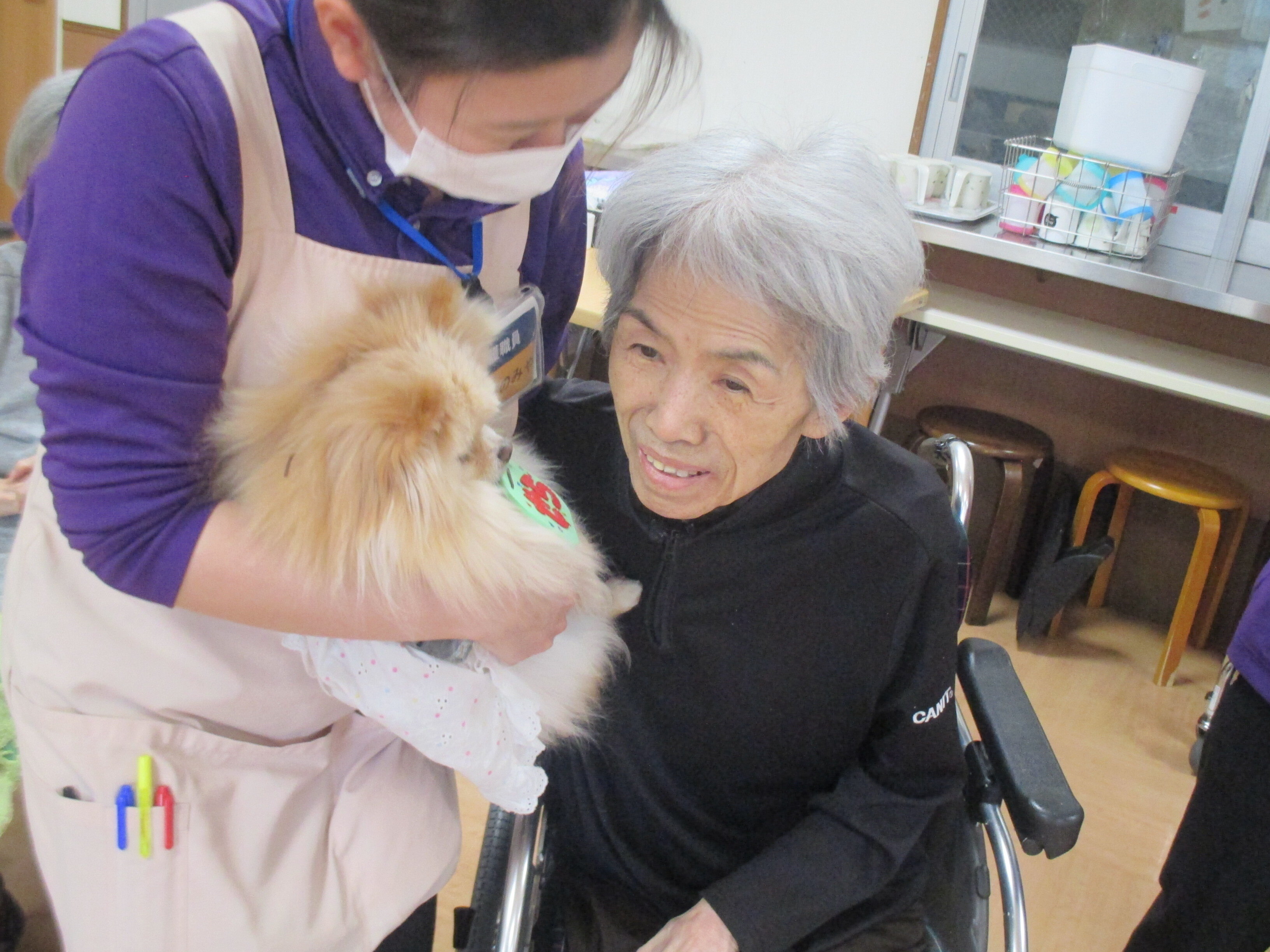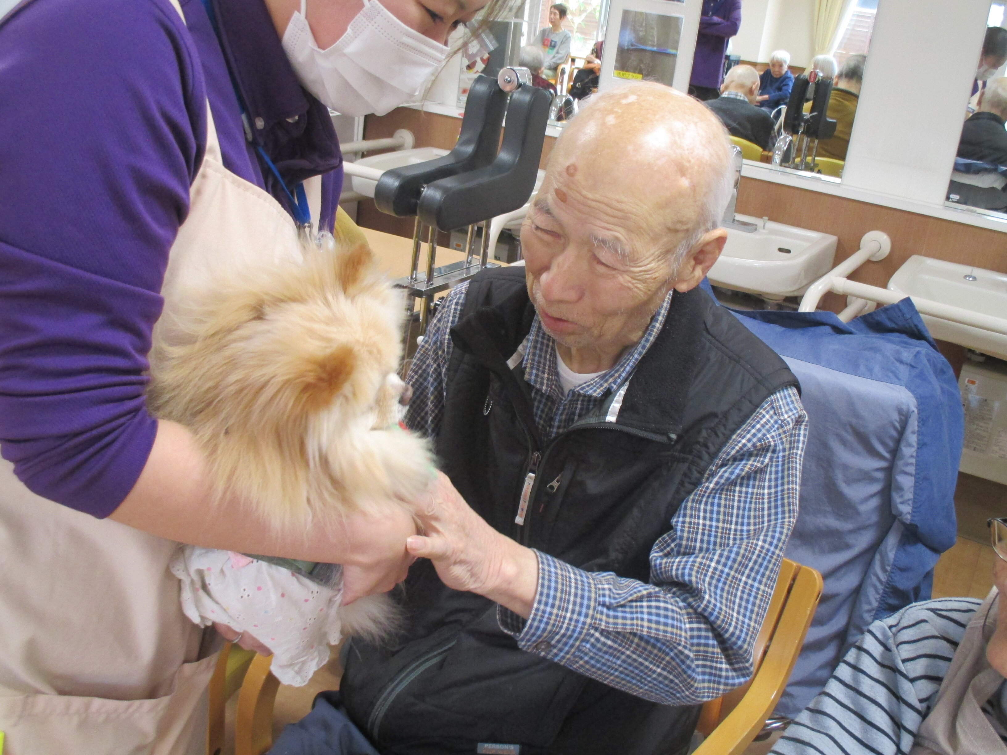 犬を抱っこするご入居者が楽しそうでいいと思いました