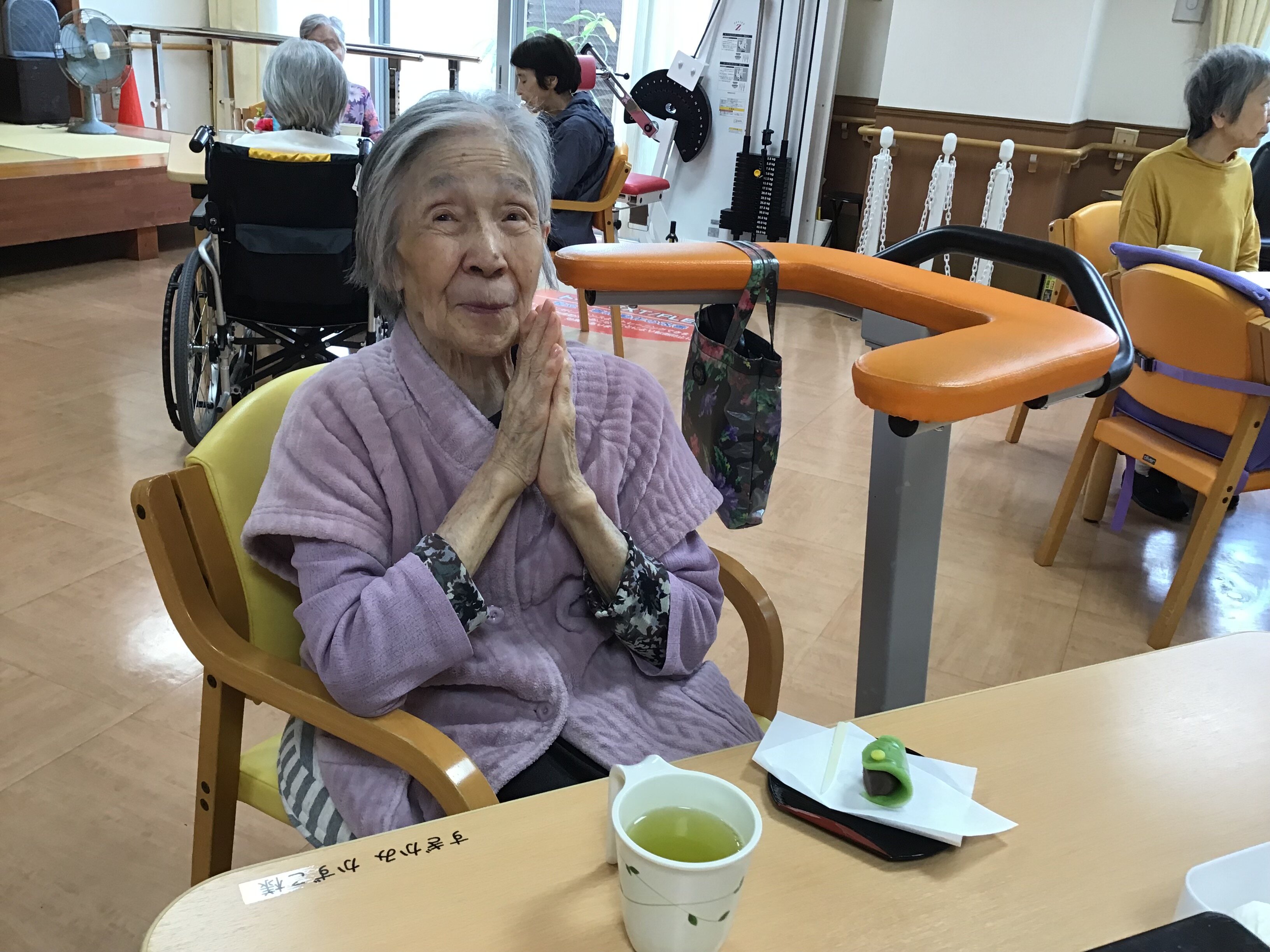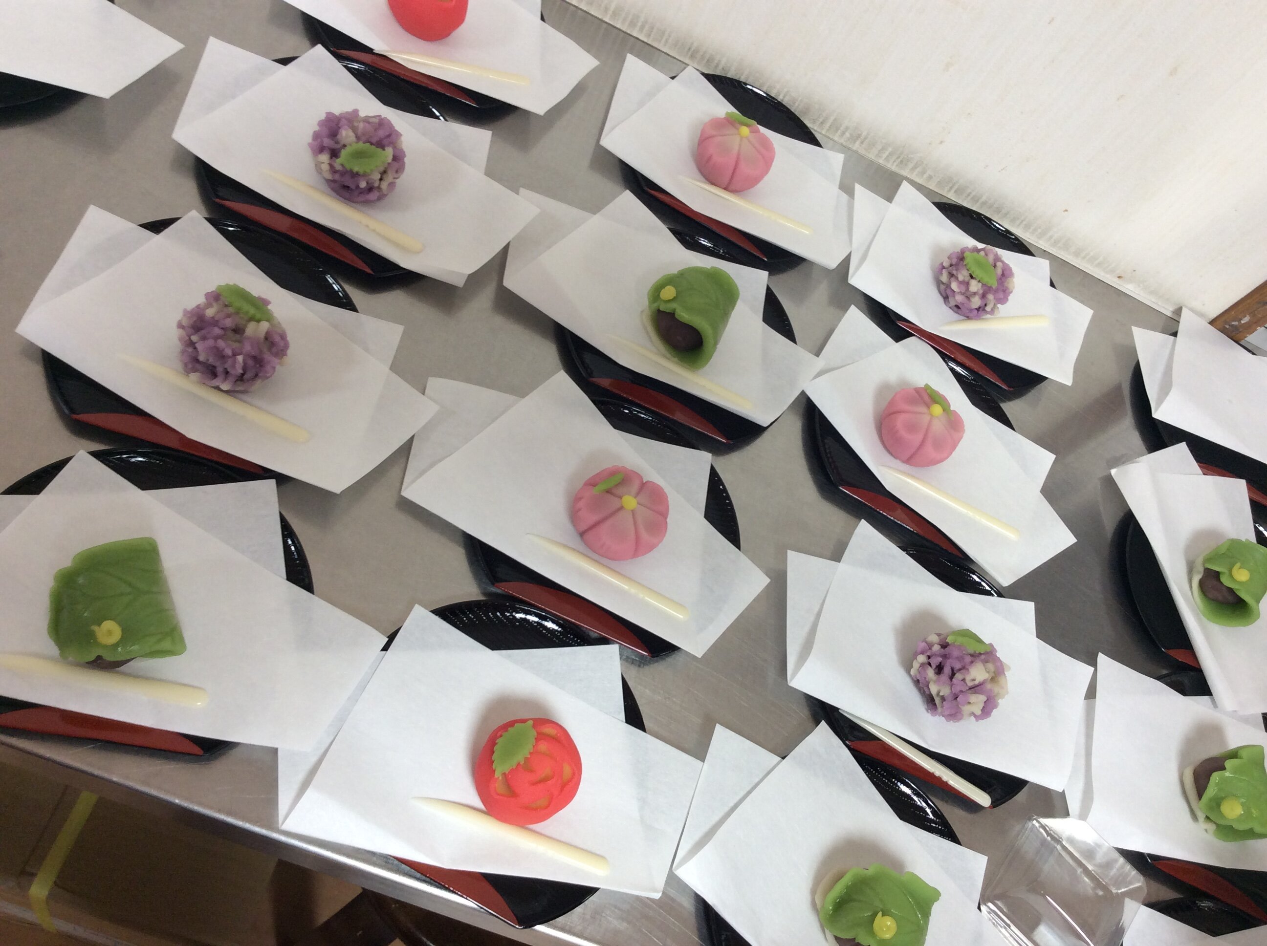 さて、続いてはとってもきれいな練りきりと美味しい玉露のお茶でお茶会です。