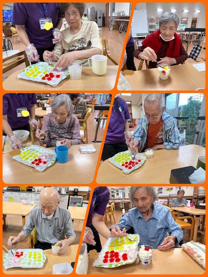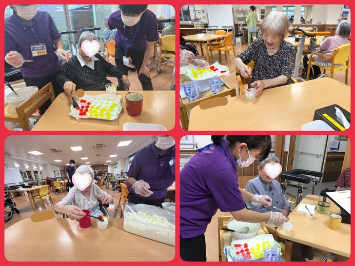 7月は清涼感溢れる寒天ゼリーと牛乳寒天を手作りして皆様に召し上がって頂きました♪