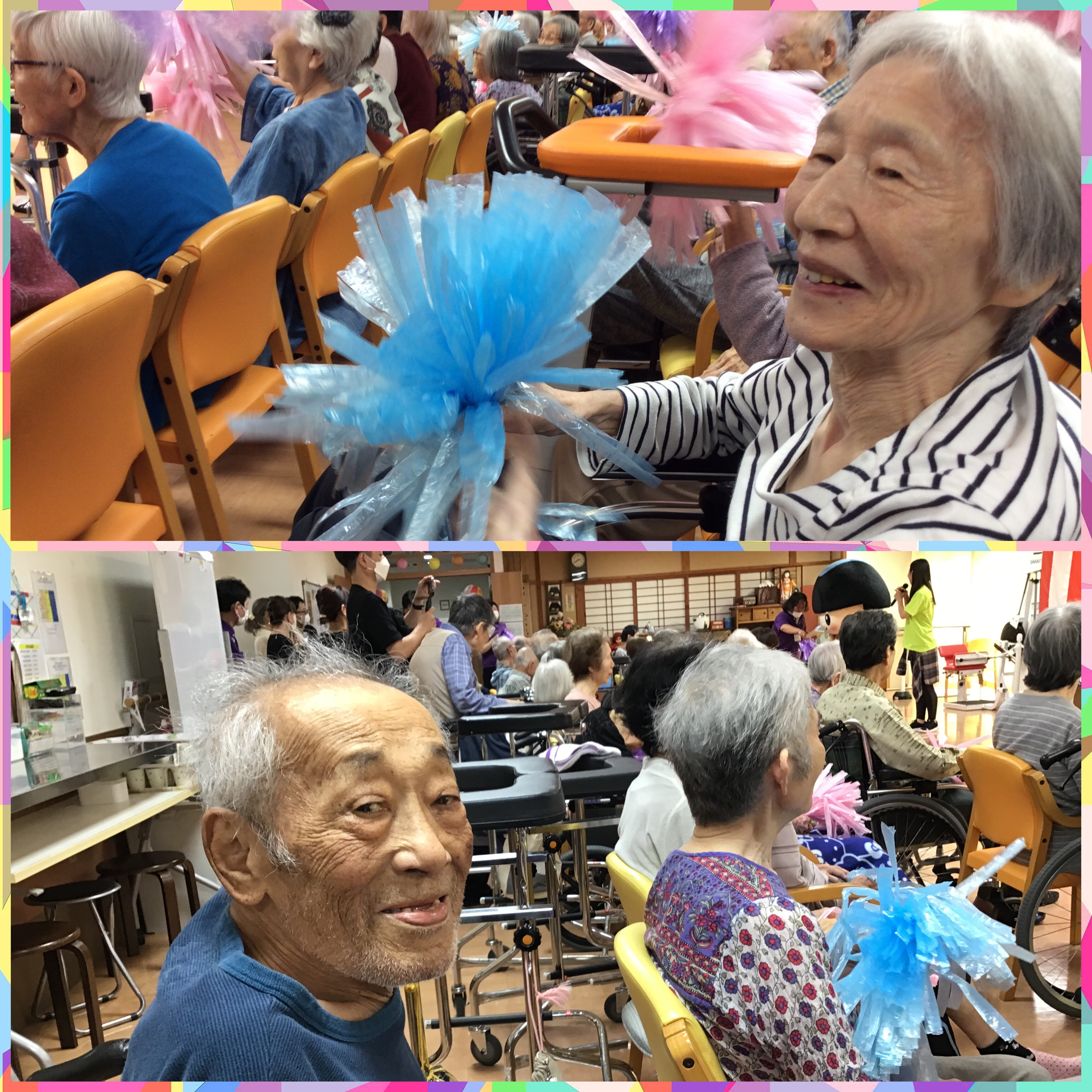 ご入居の皆様もポンポンを持って簡単な振付けを一緒に練習( ^ω^ )
