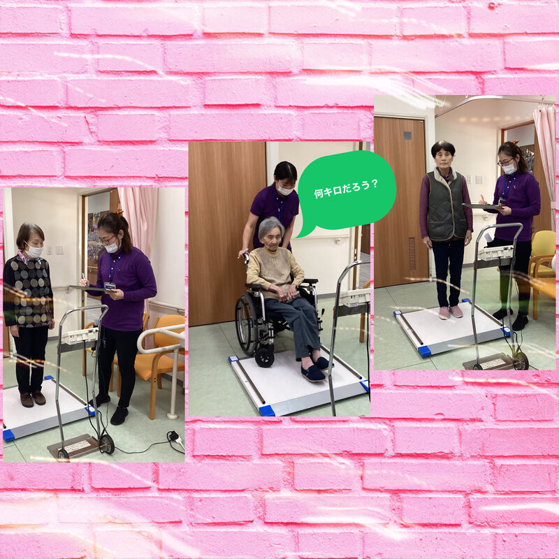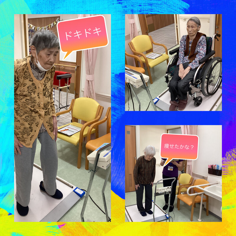 「体重が増えた。」「体重が減った。」などなどお話しながら測定しておられました。