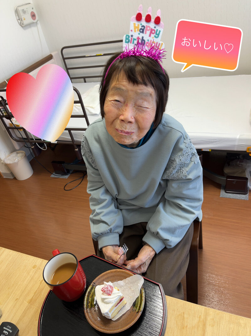 美味しそうにケーキを頬張るご入居者様の方もいらっしゃいました。
