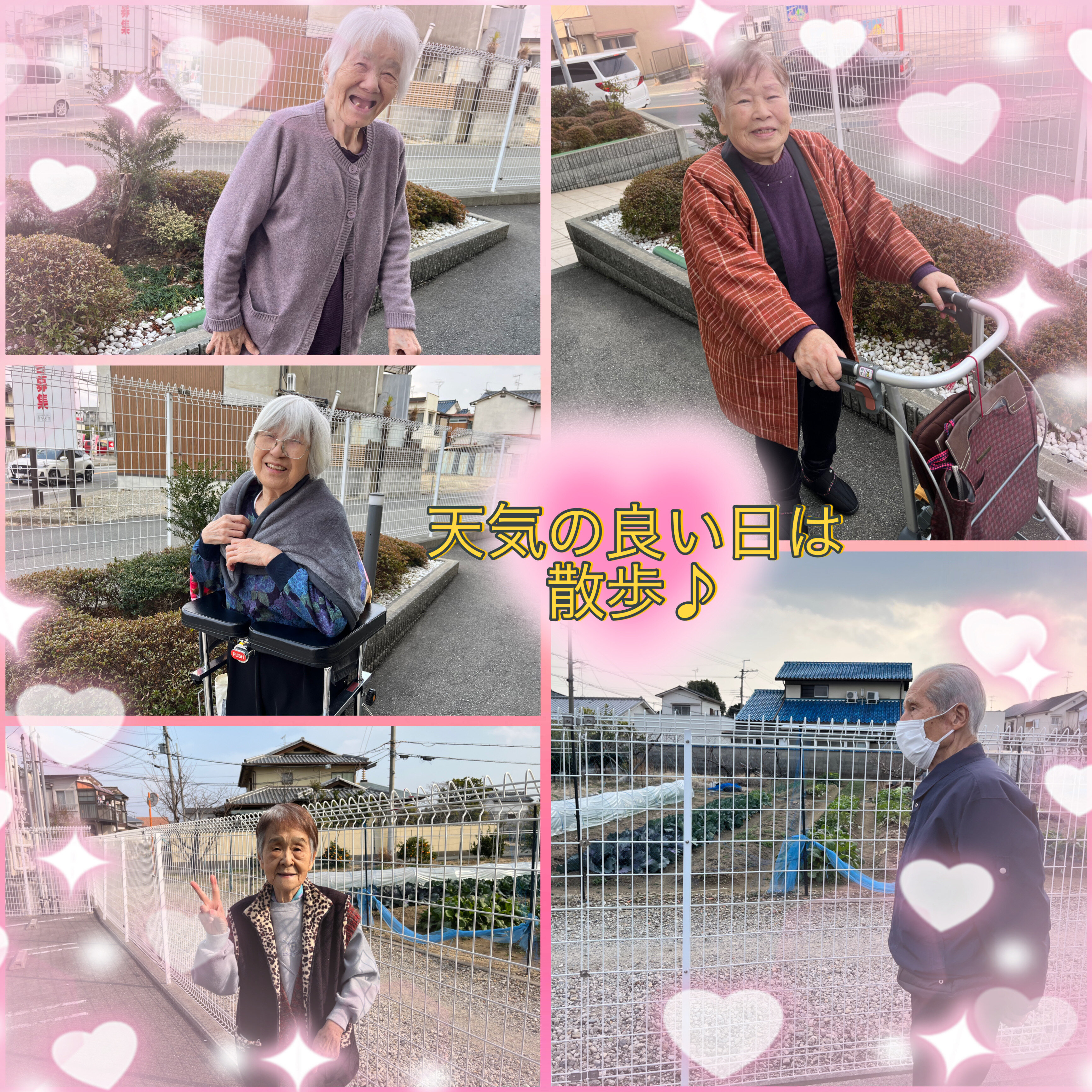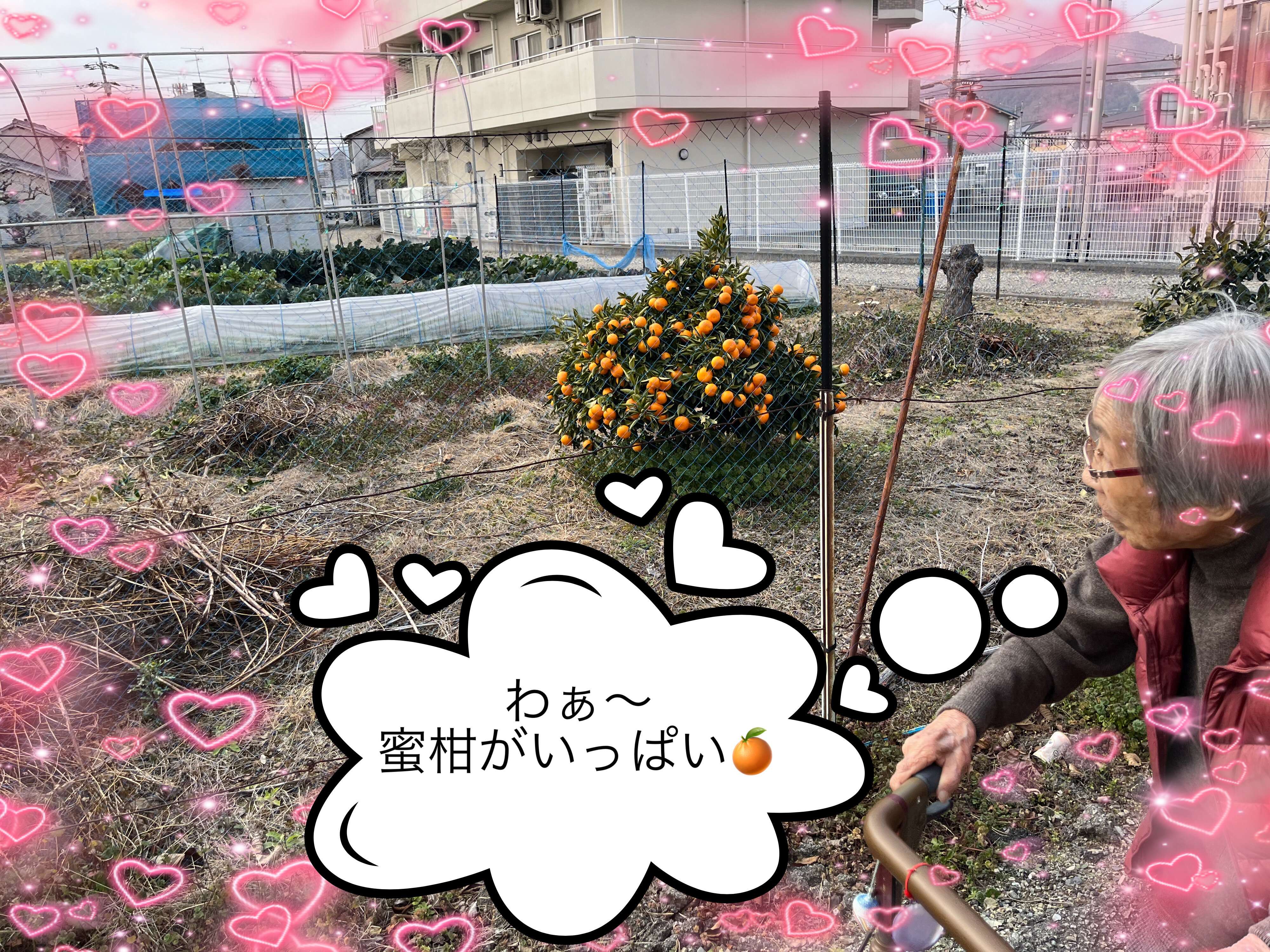 ご入居者の方が昔育てた野菜の話もしながら、ゆっくり散歩しました。