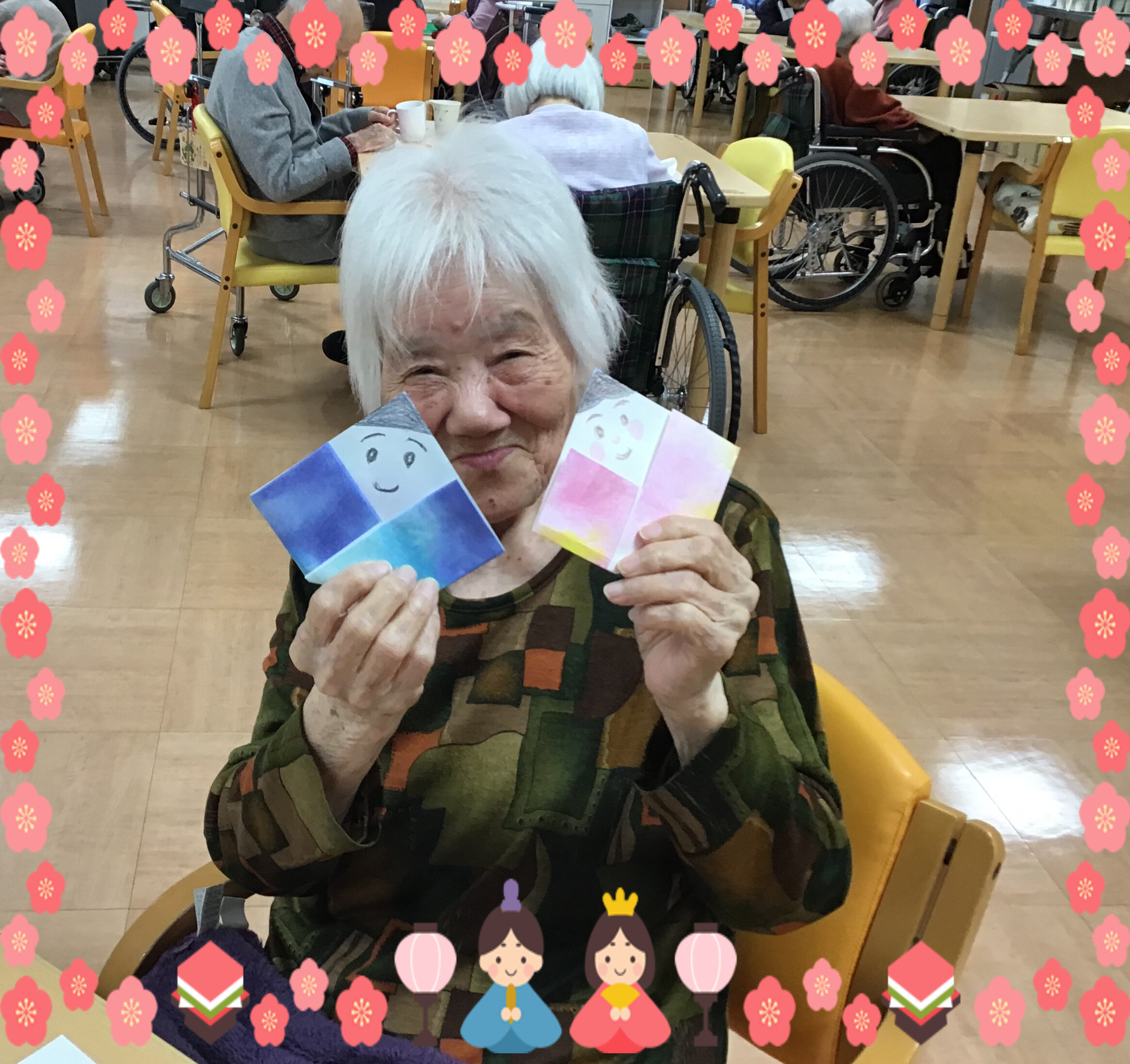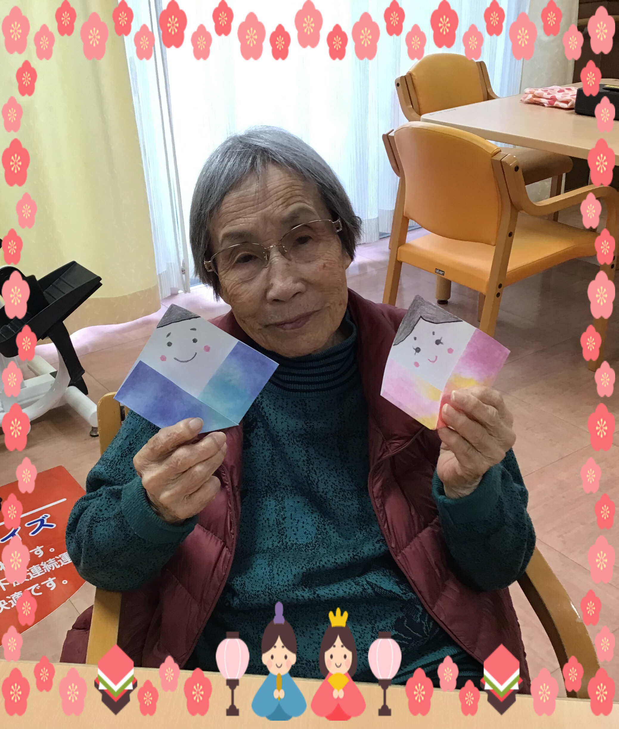 折り紙でお内裏様とお雛様の飾りを作成しました(^^)/