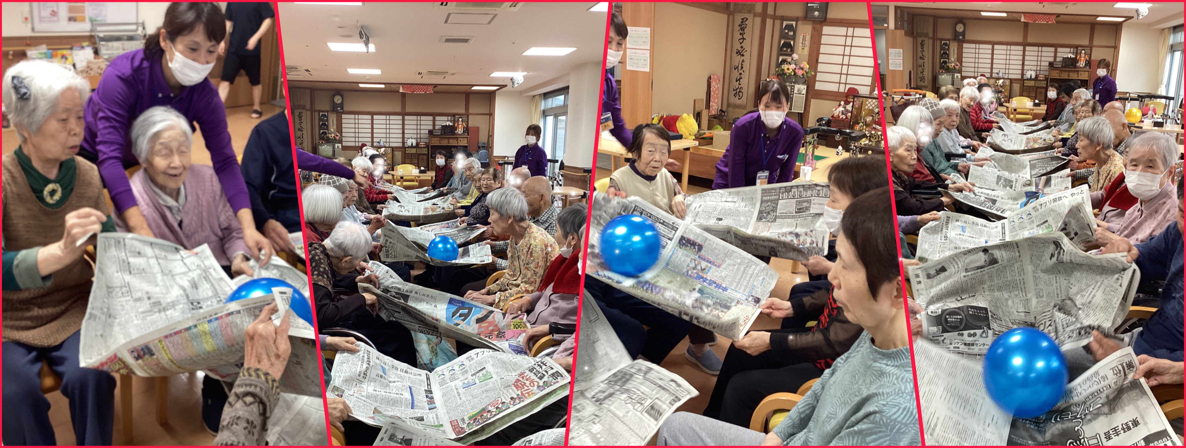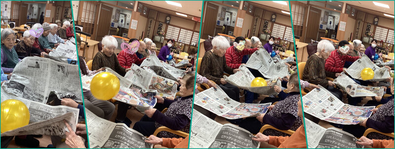 今日はかなり久しぶりに新聞紙レクリエーションを行いました。