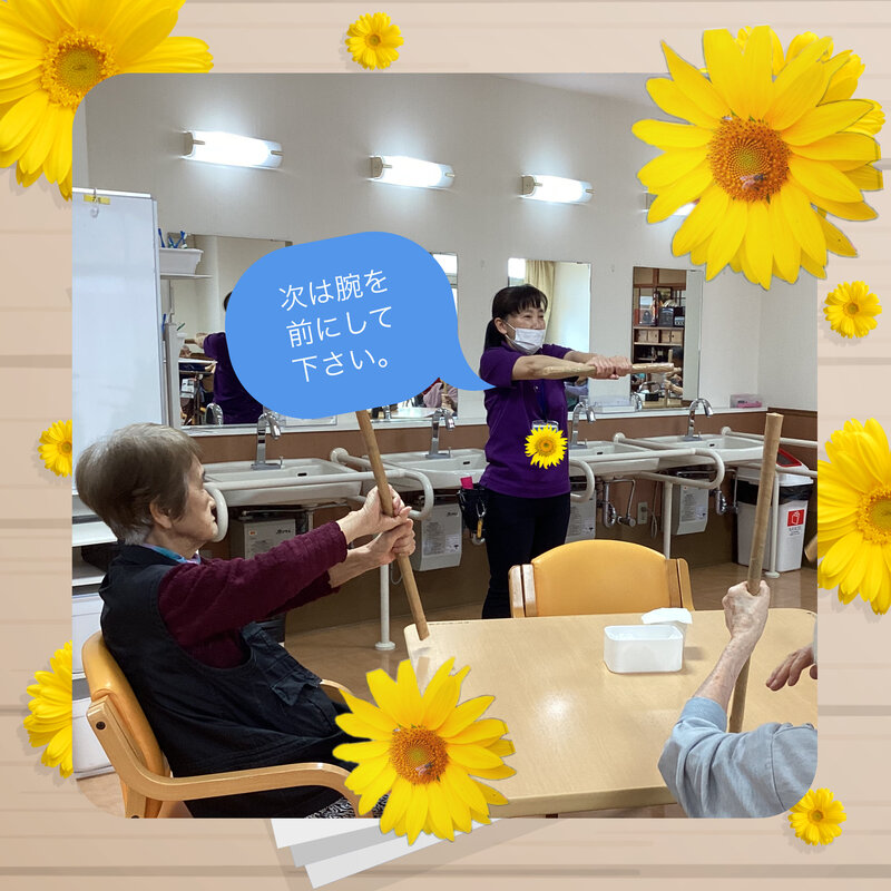 職員が前に立ち、皆様と一緒に運動をしています(^O^)/