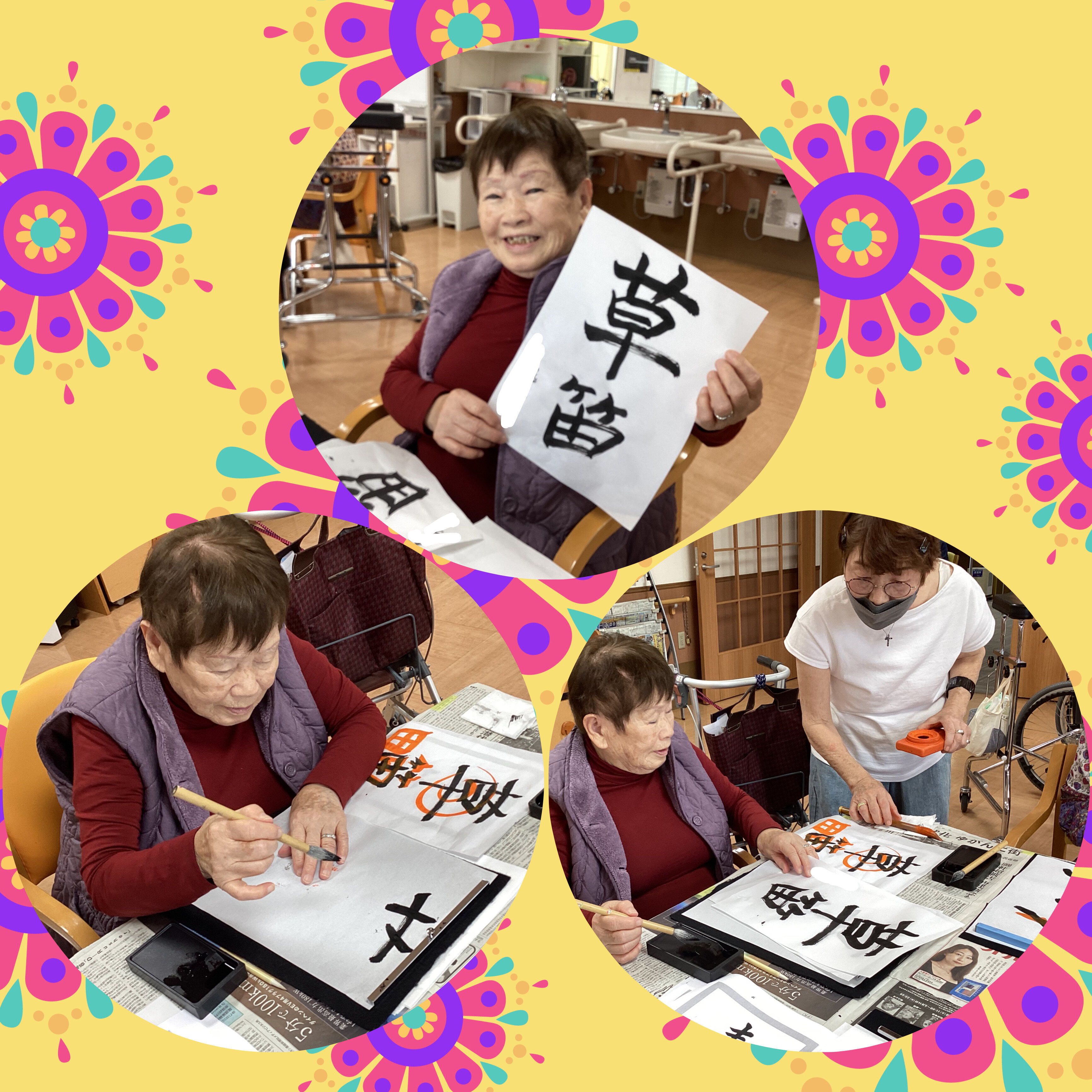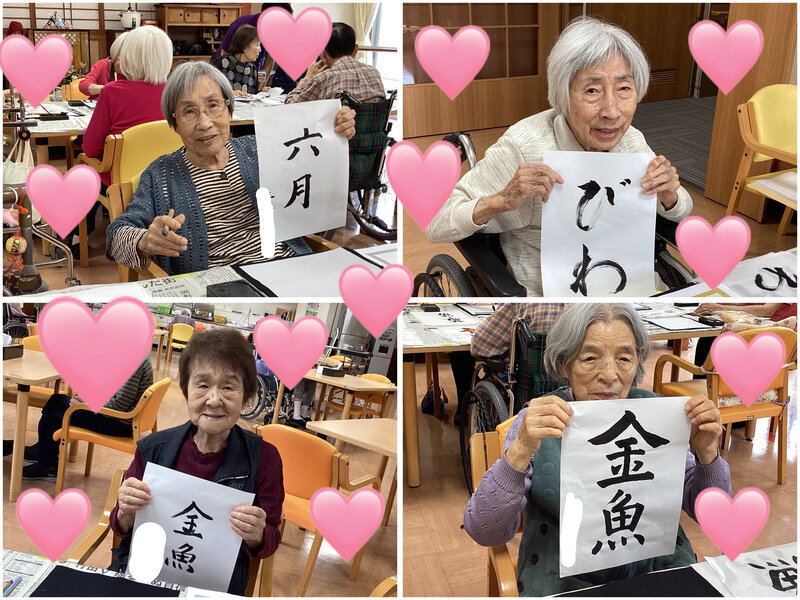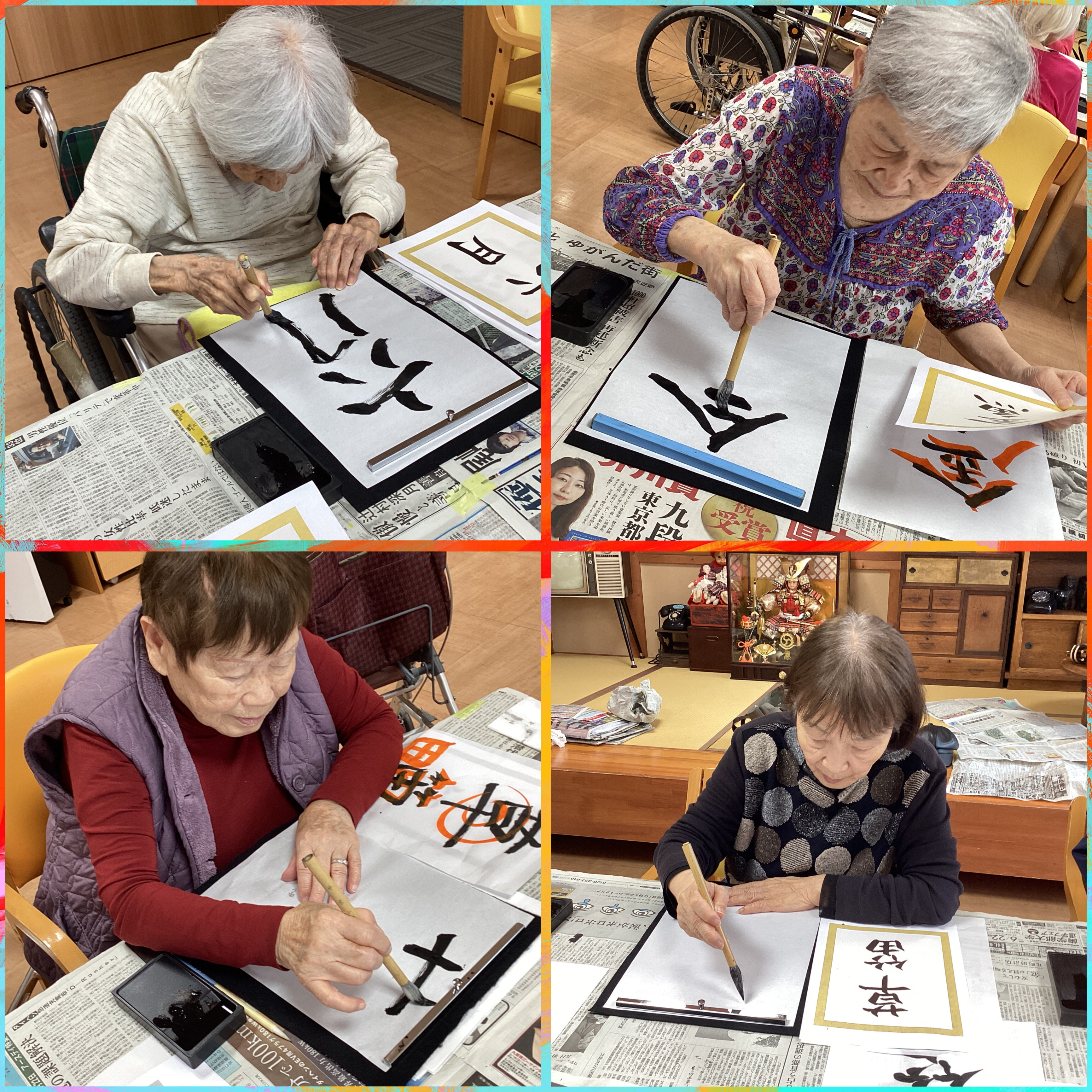 普段、書道レクへの参加は遠慮がちな、ご入居者様も今回はとても積極的に習っていらっしゃいました♡