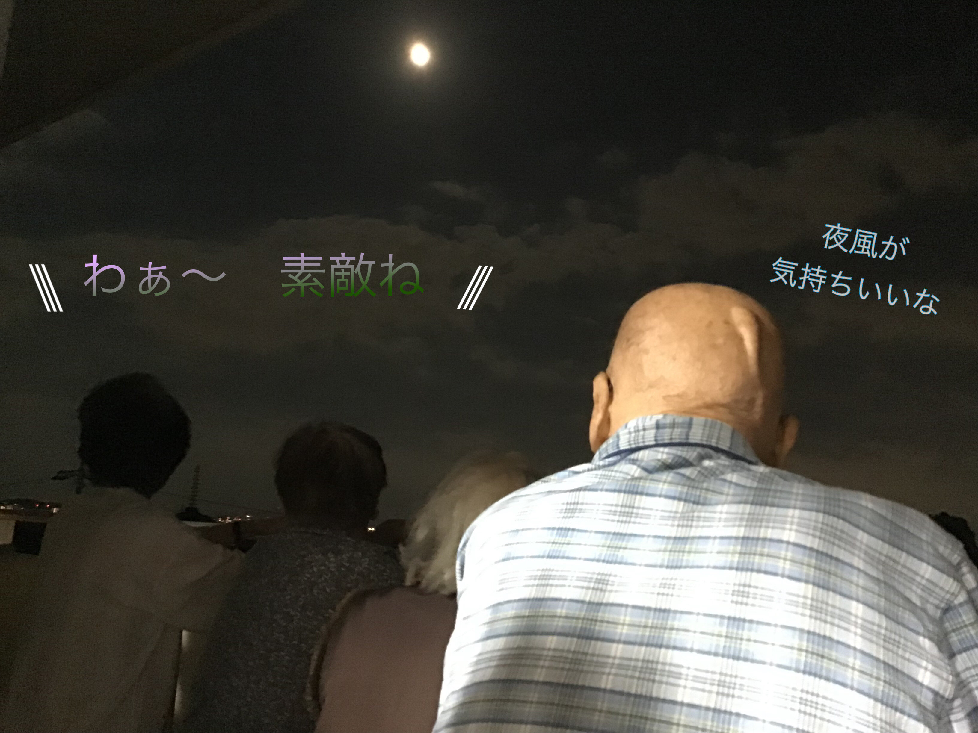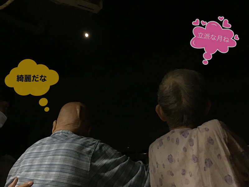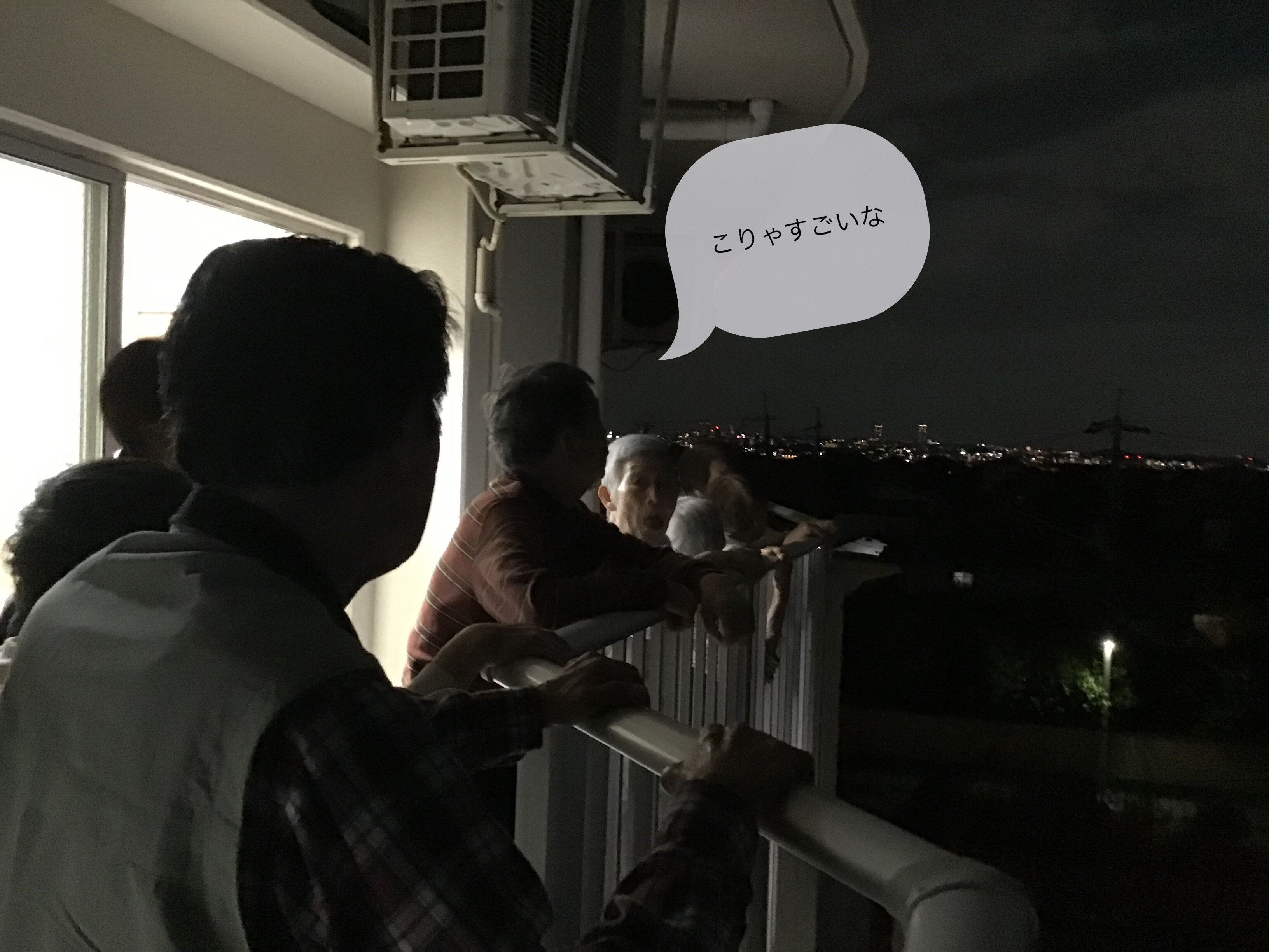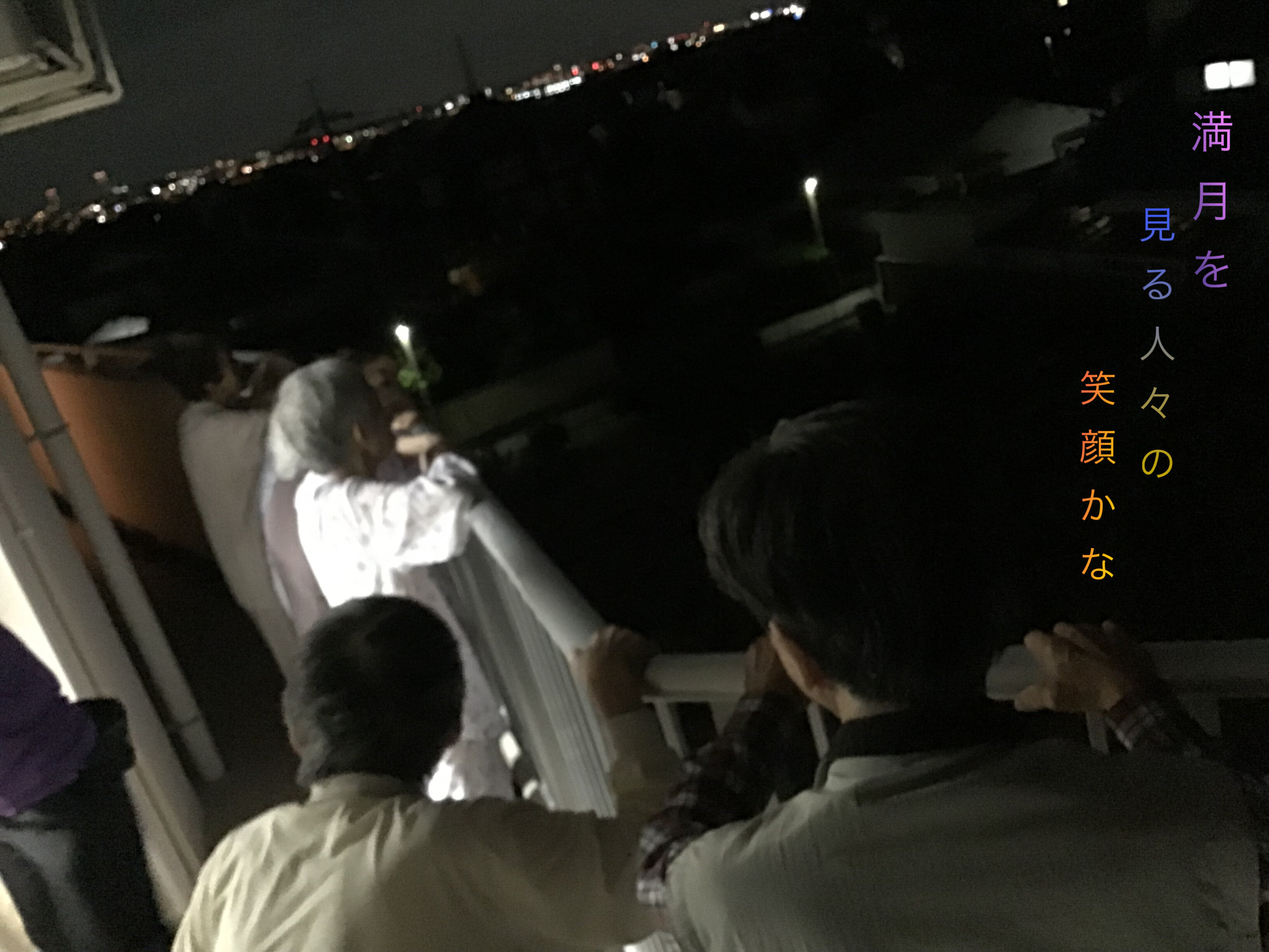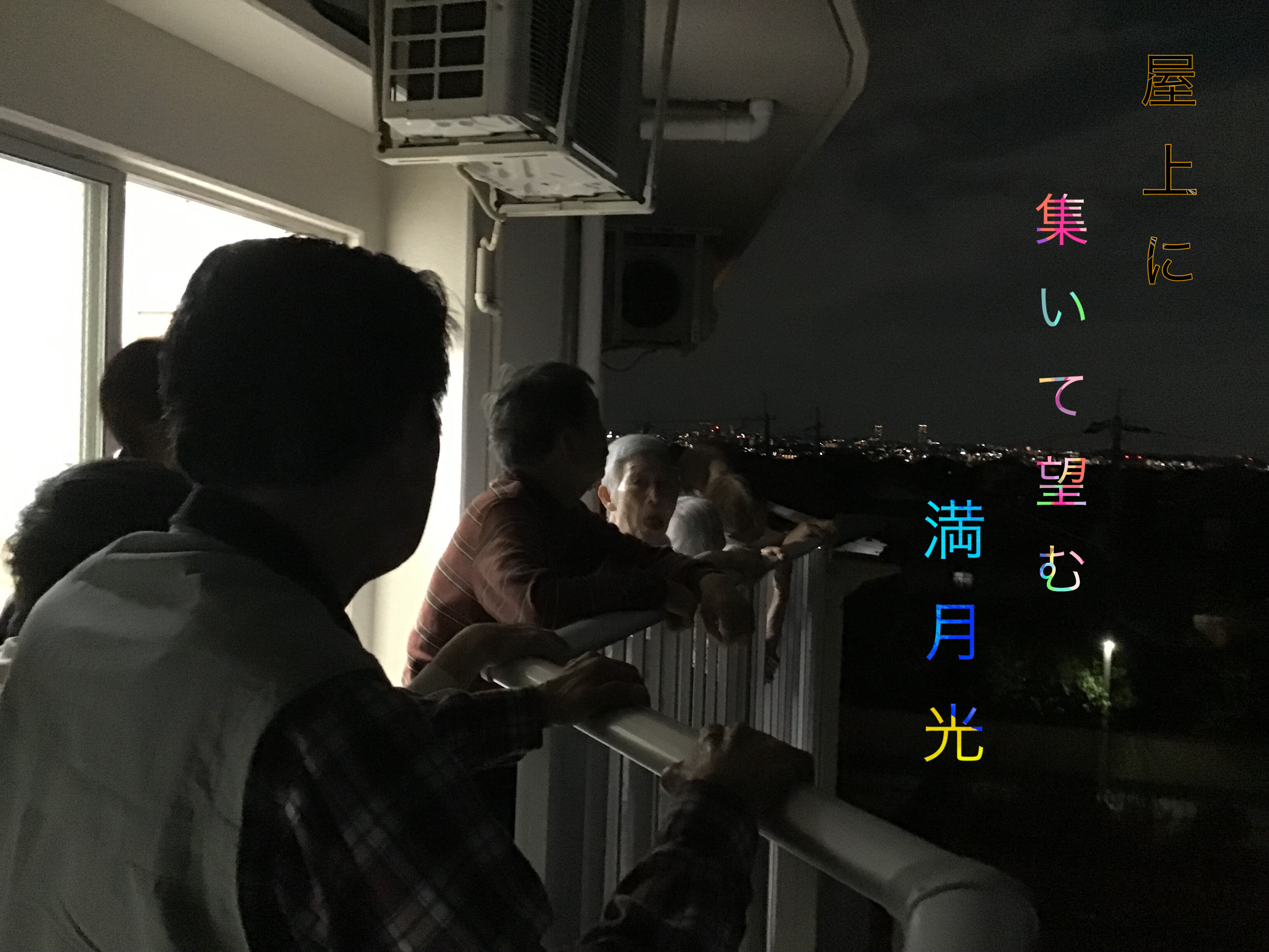 見とれていたのは私だけでなく、20時過ぎると続々とお月見したいご入居者の方が4階に集まってきました。(笑)