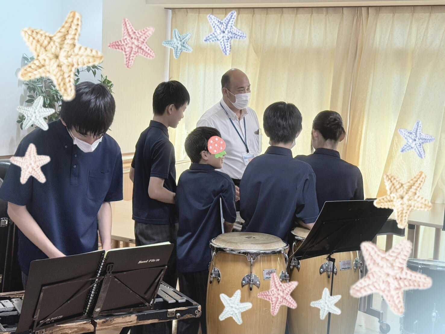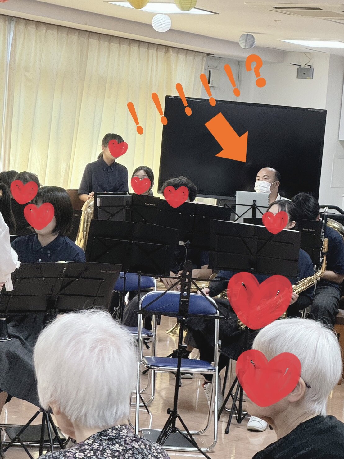 吹奏楽部の生徒さん達の中に馴染んでいた職員(施設長)がいます(≧▽≦)