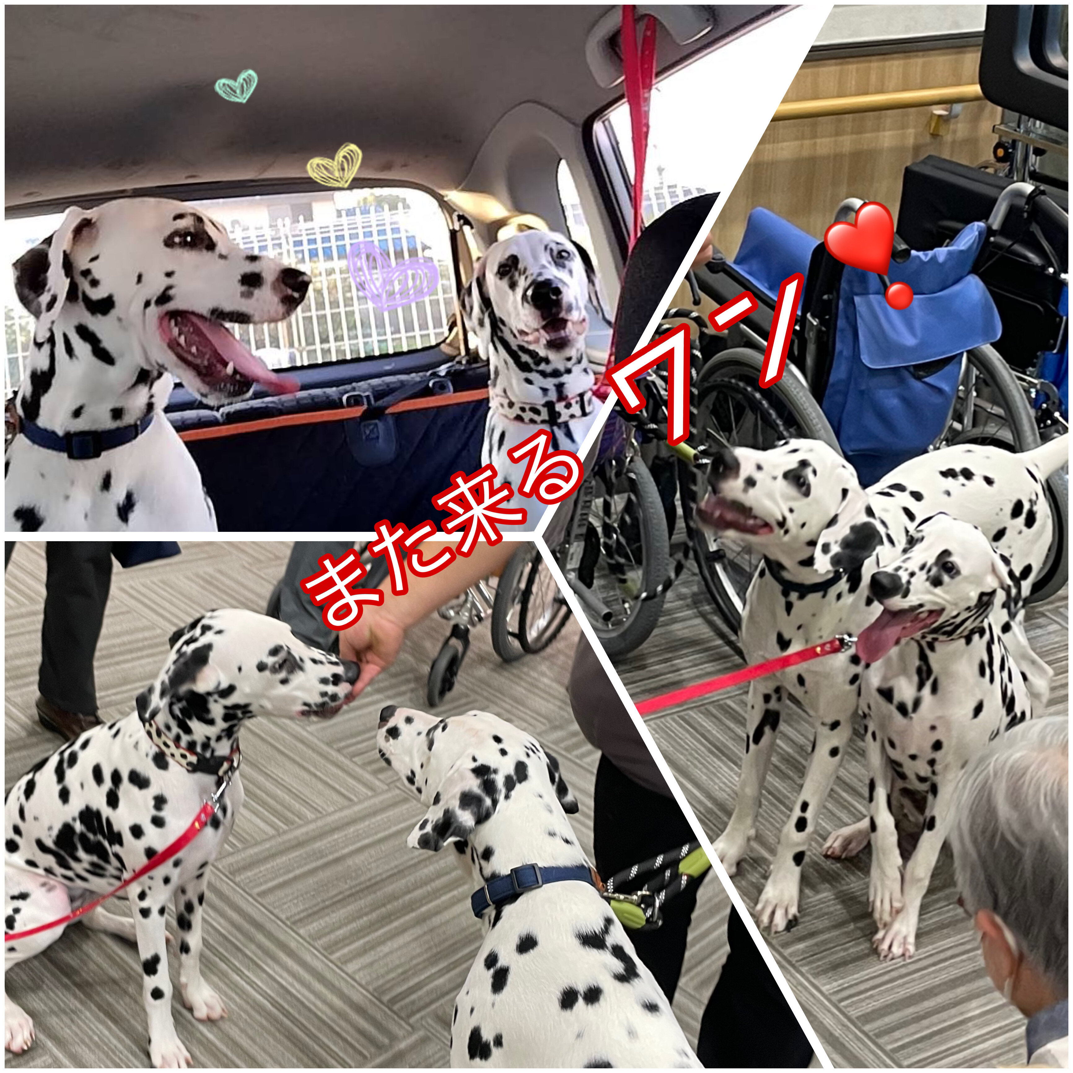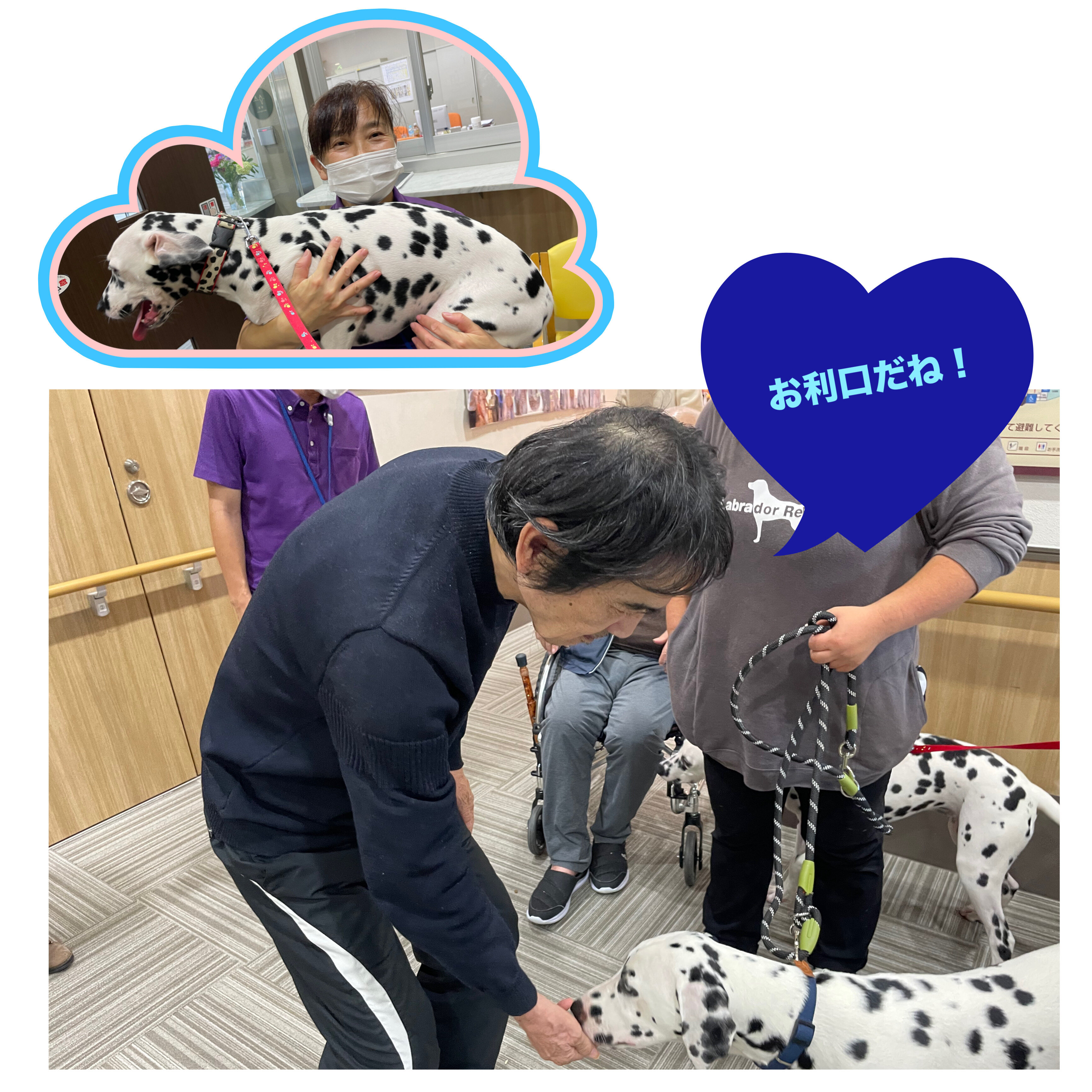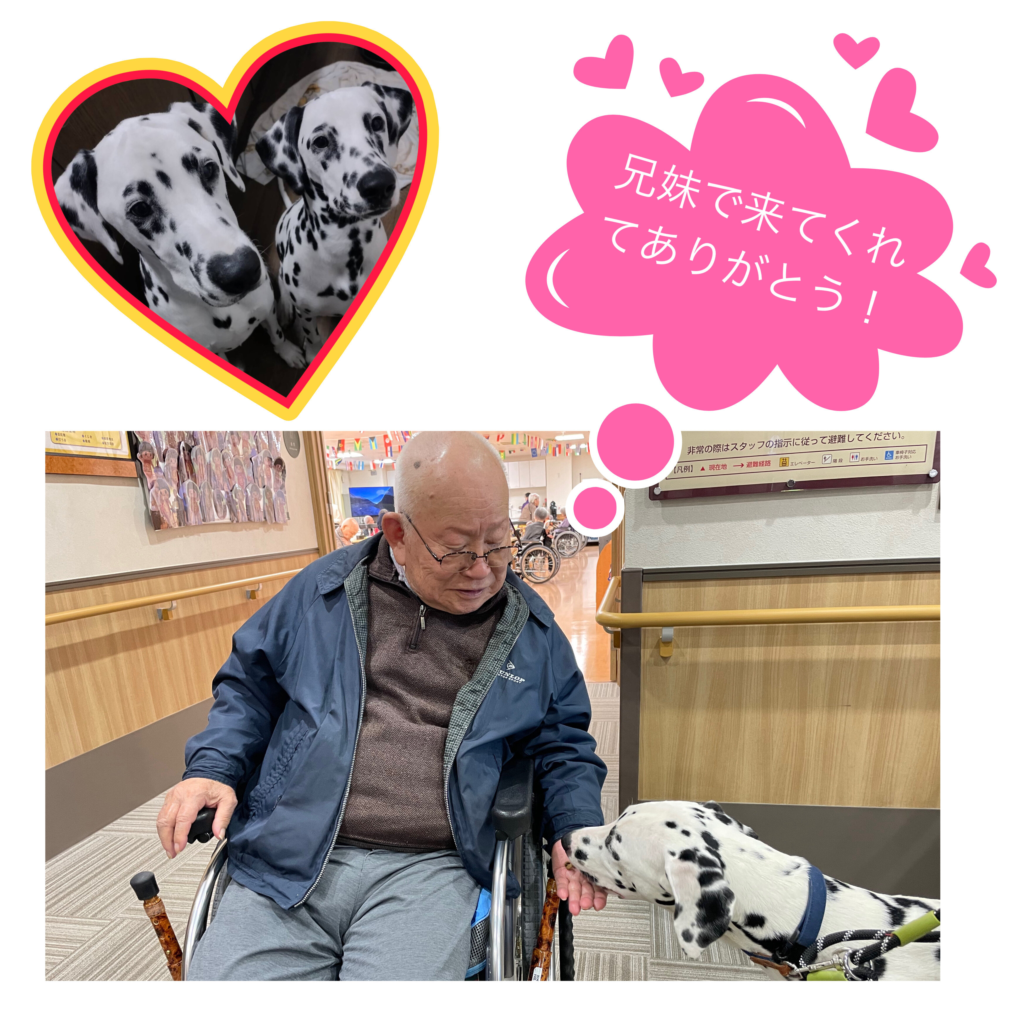 ご入居者の皆様から『会いたい!』『早く連れてきて~』『笑太郎は元気?』などなど皆様からラブコールが日々あり、久々に会えた喜びは、ぶっちーずも喜んでました♪
