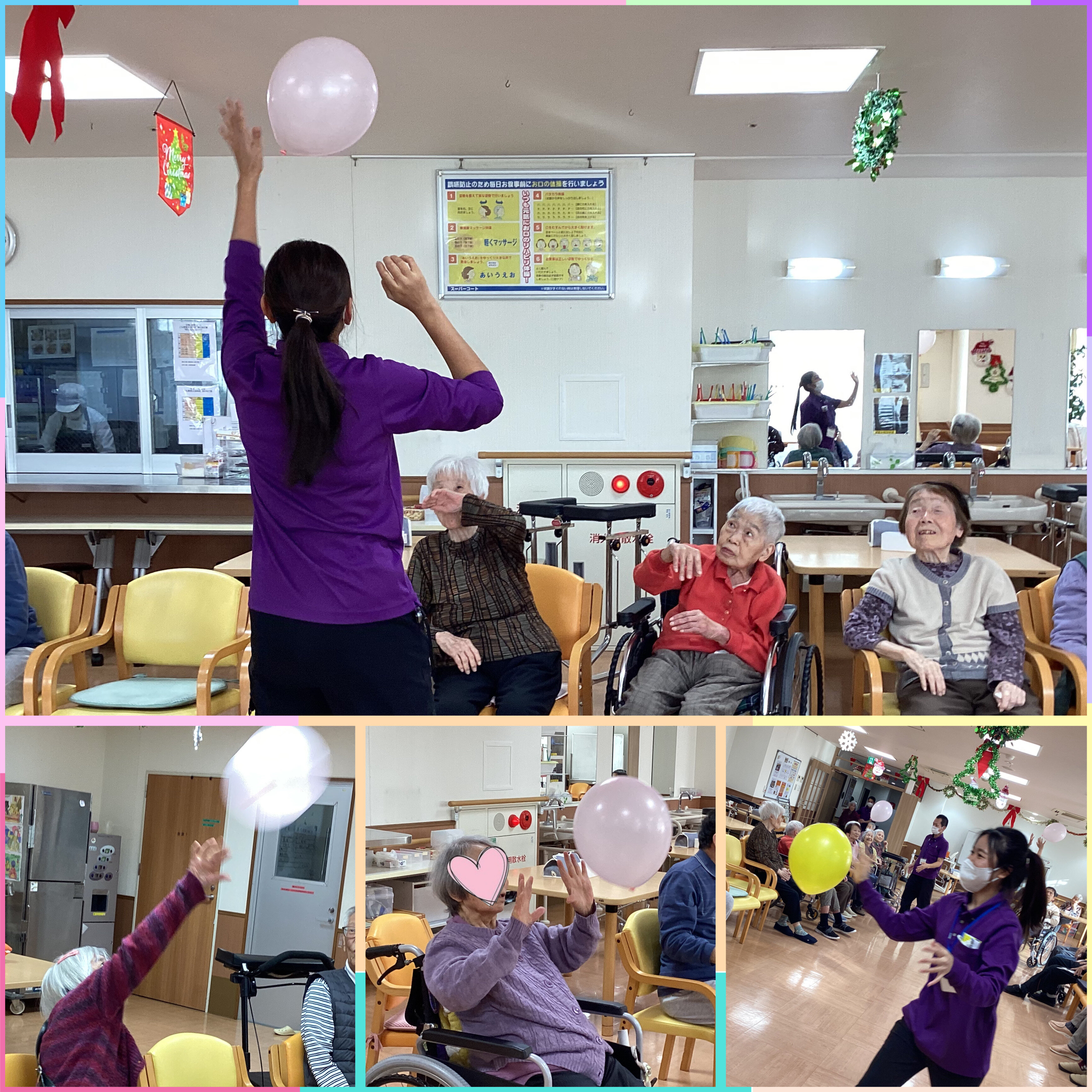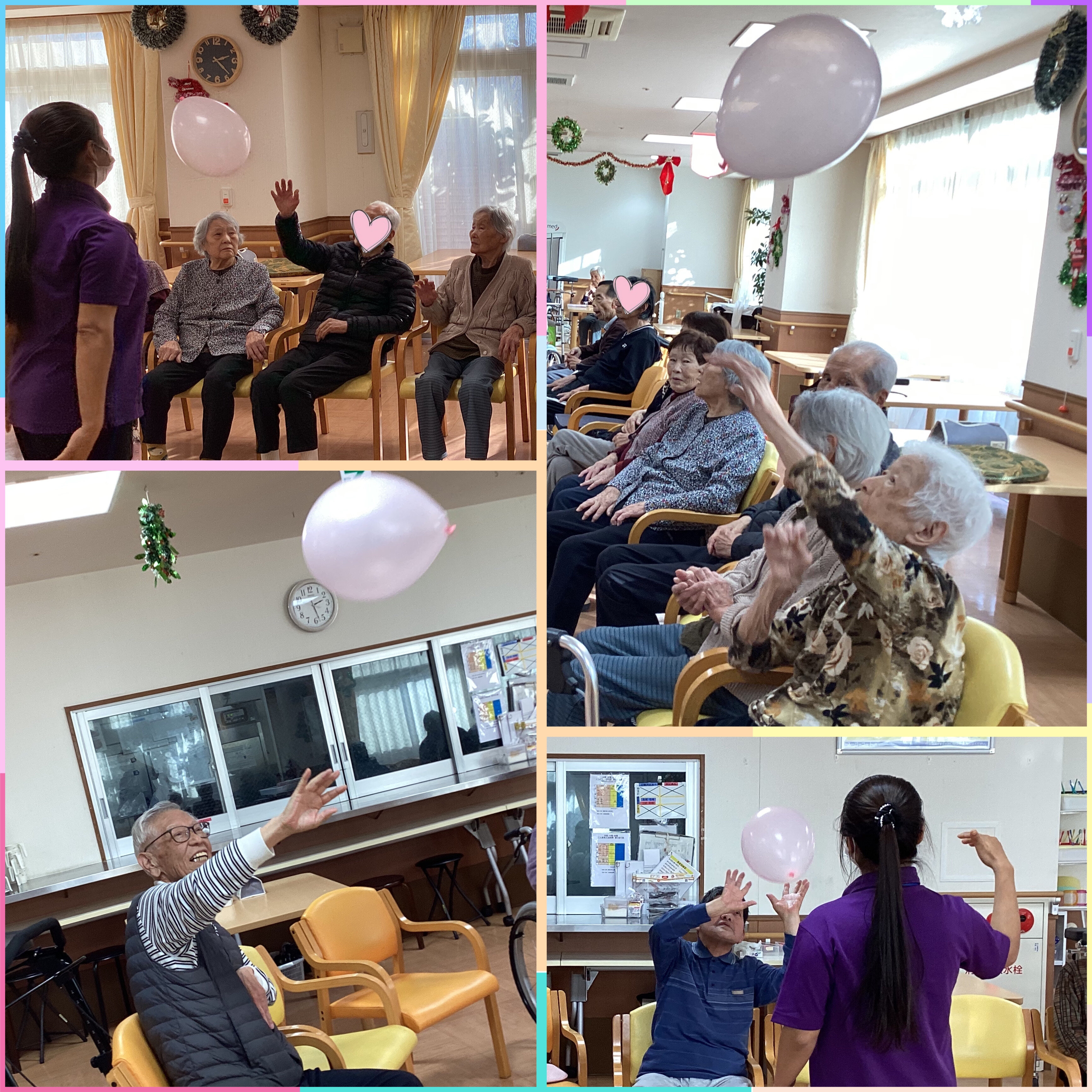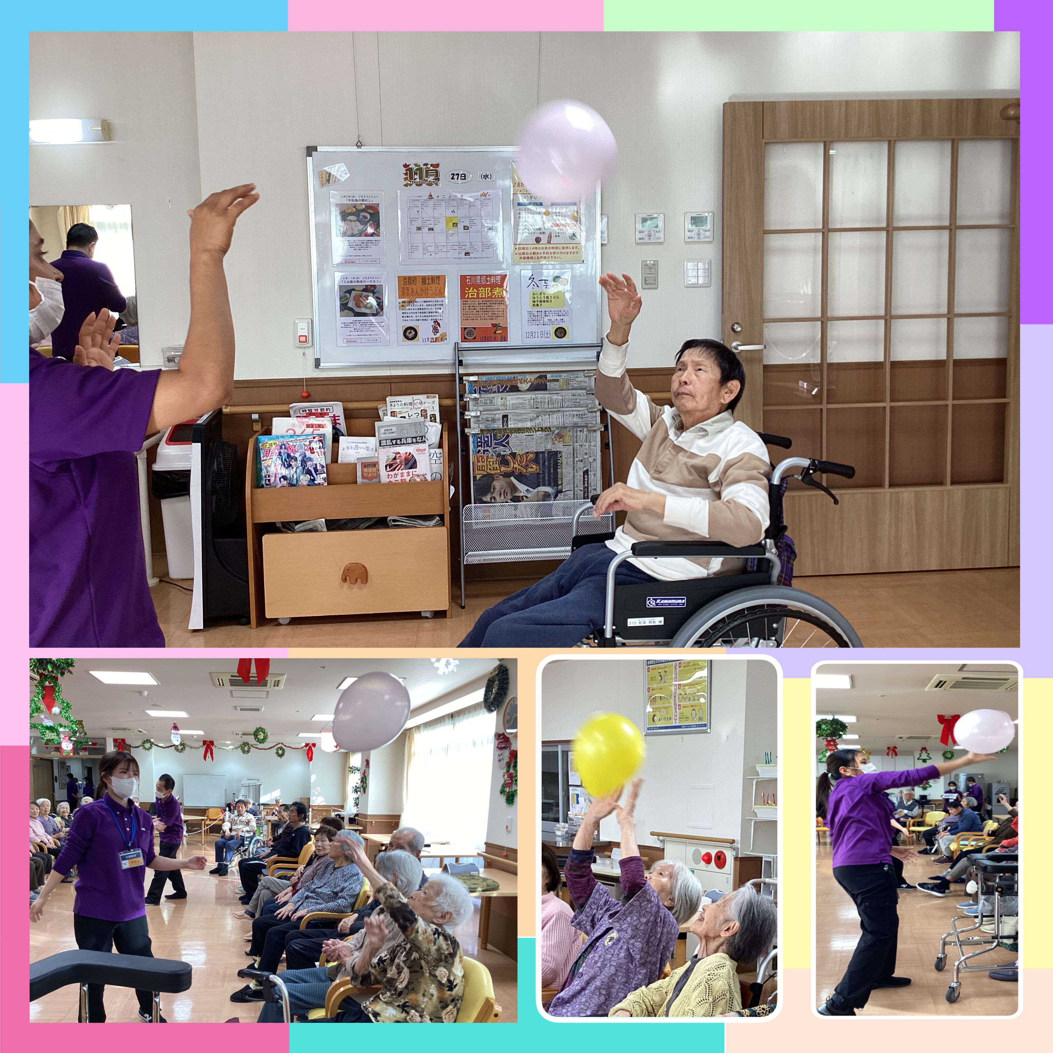 こんにちは!川西加茂です~!本日は、定番レクリエーションの風船バレーの様子をお伝えします。風船を使ったレクリエーションは、手軽に皆さんと楽しめますよね!ご入居者や職員とのコミュニケーションにもなります^^