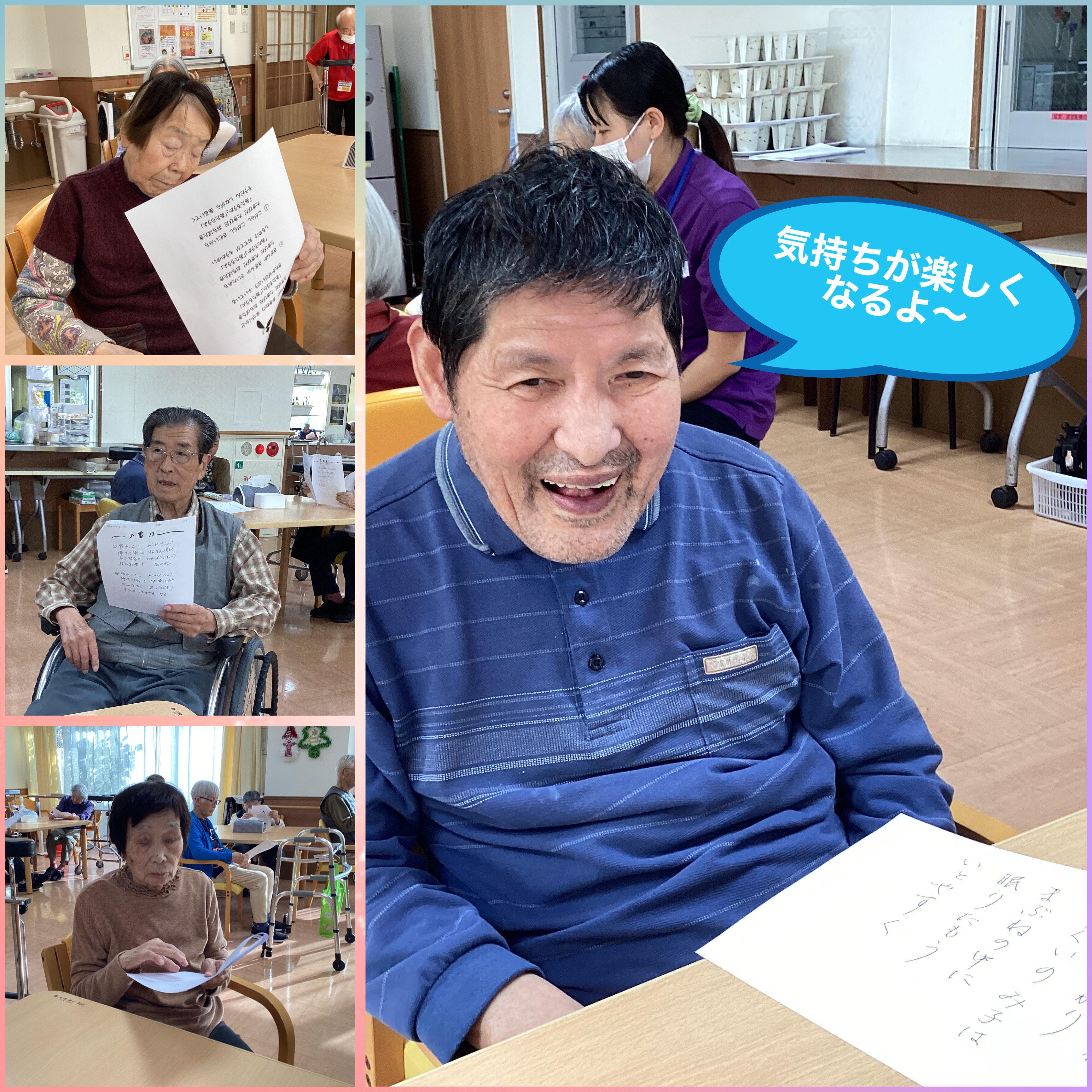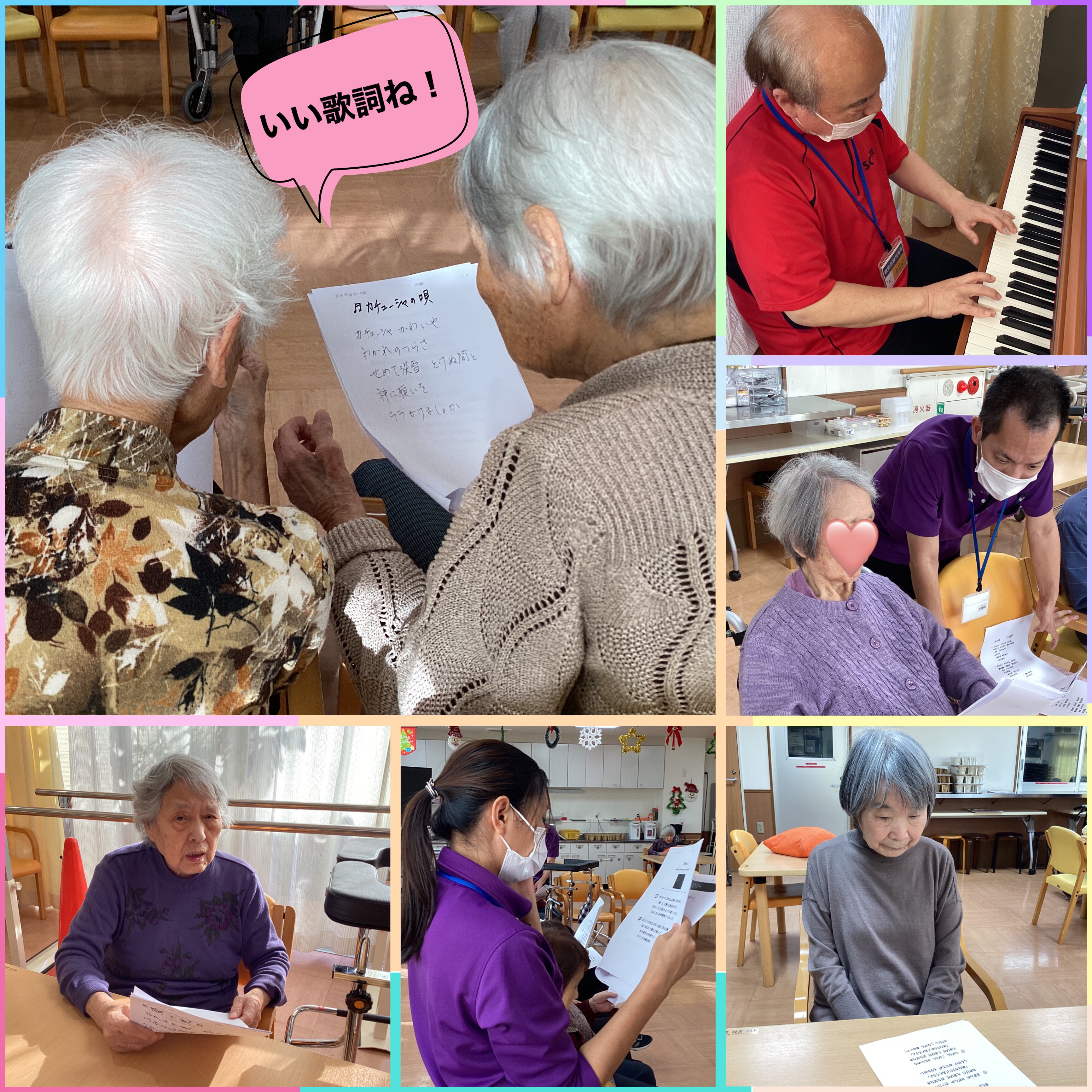 時々先生の歌詞を利用させていただき機能訓練士の方も電子ピアノを弾いてくださいます!普段から皆様歌われてるので自然と口ずまれます!