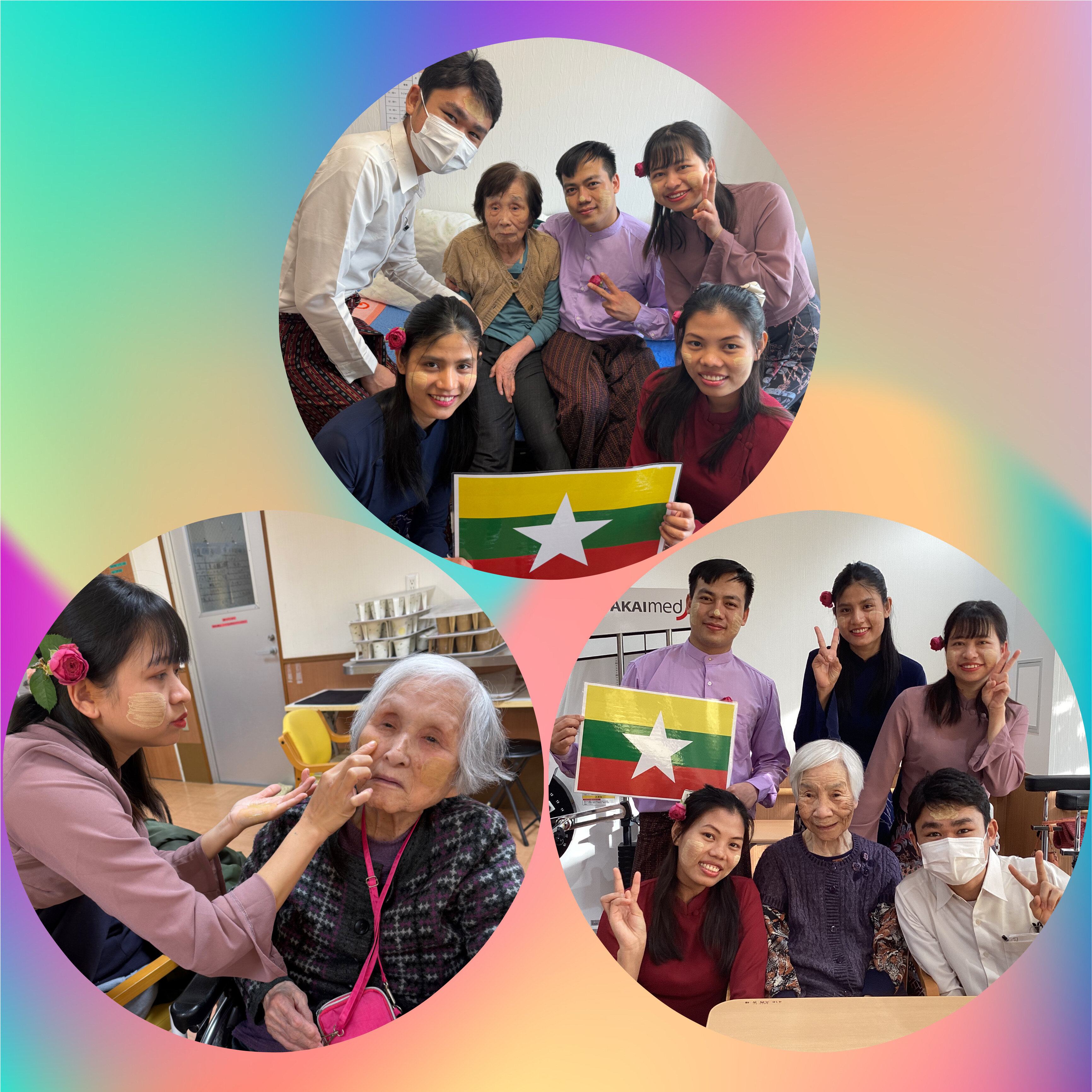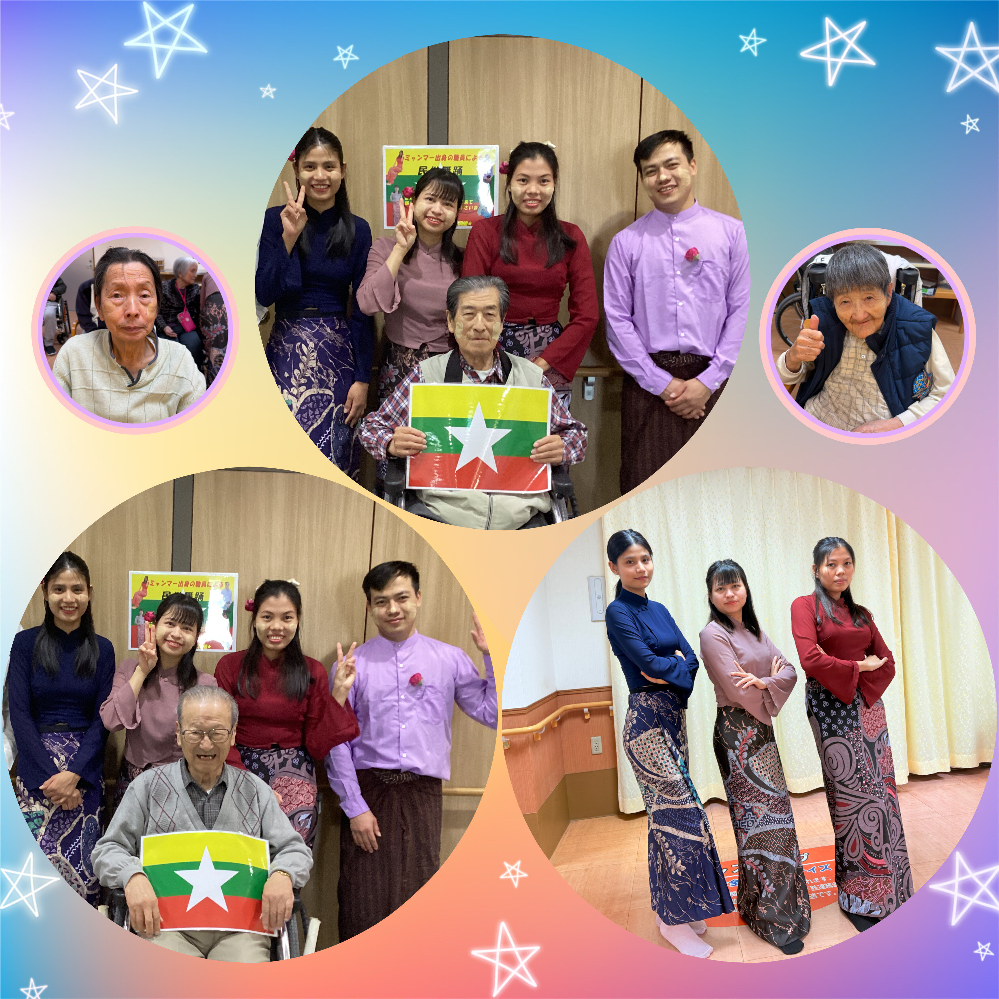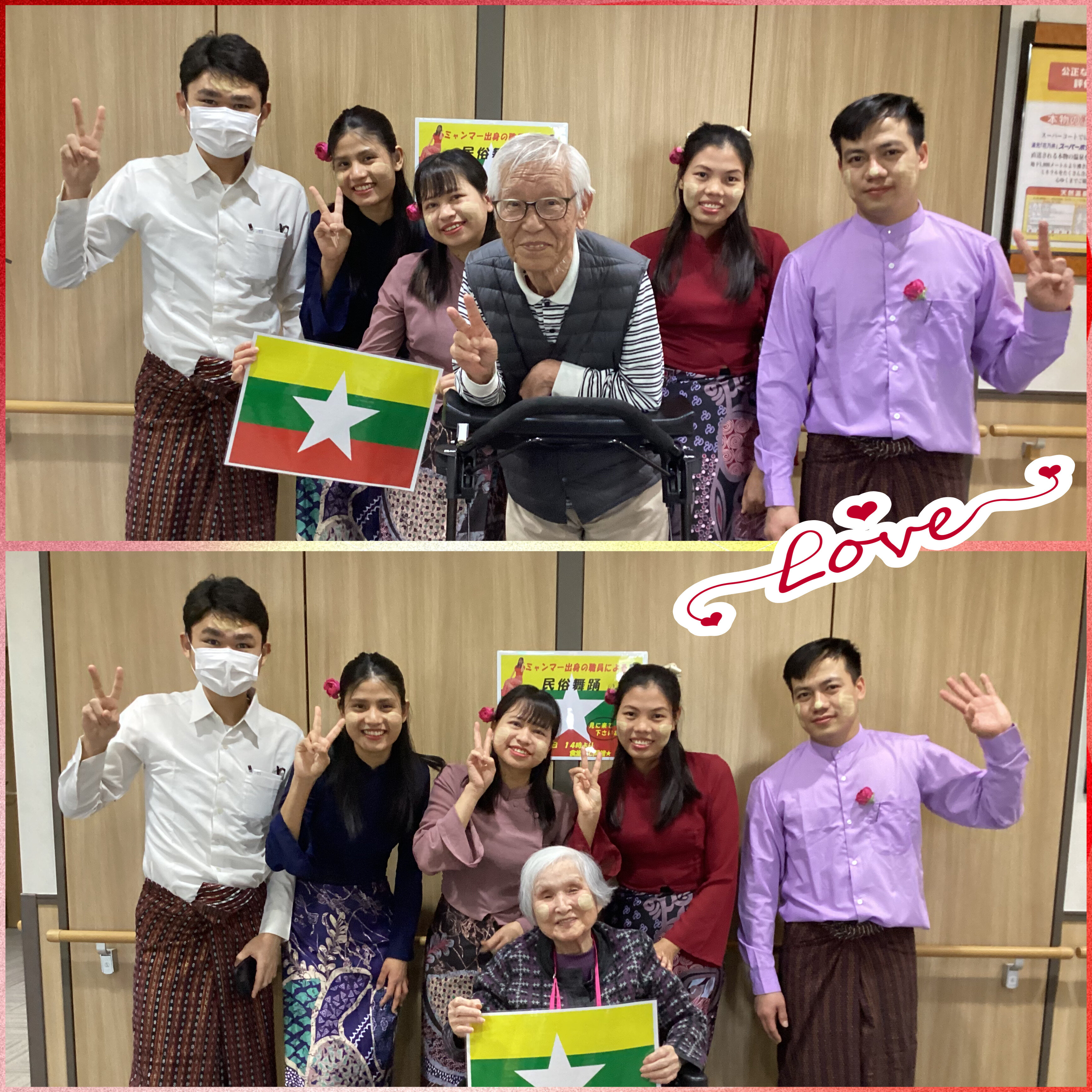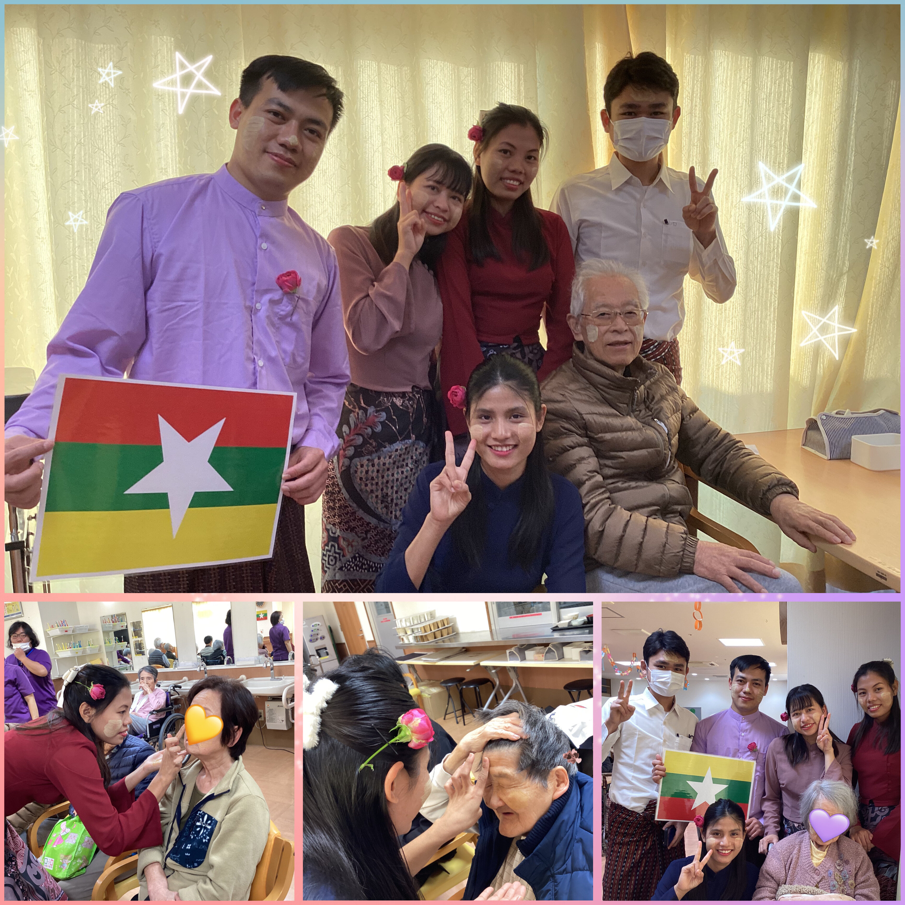 ミャンマー職員とご入居者様で「ハイ!ポーズ!!」