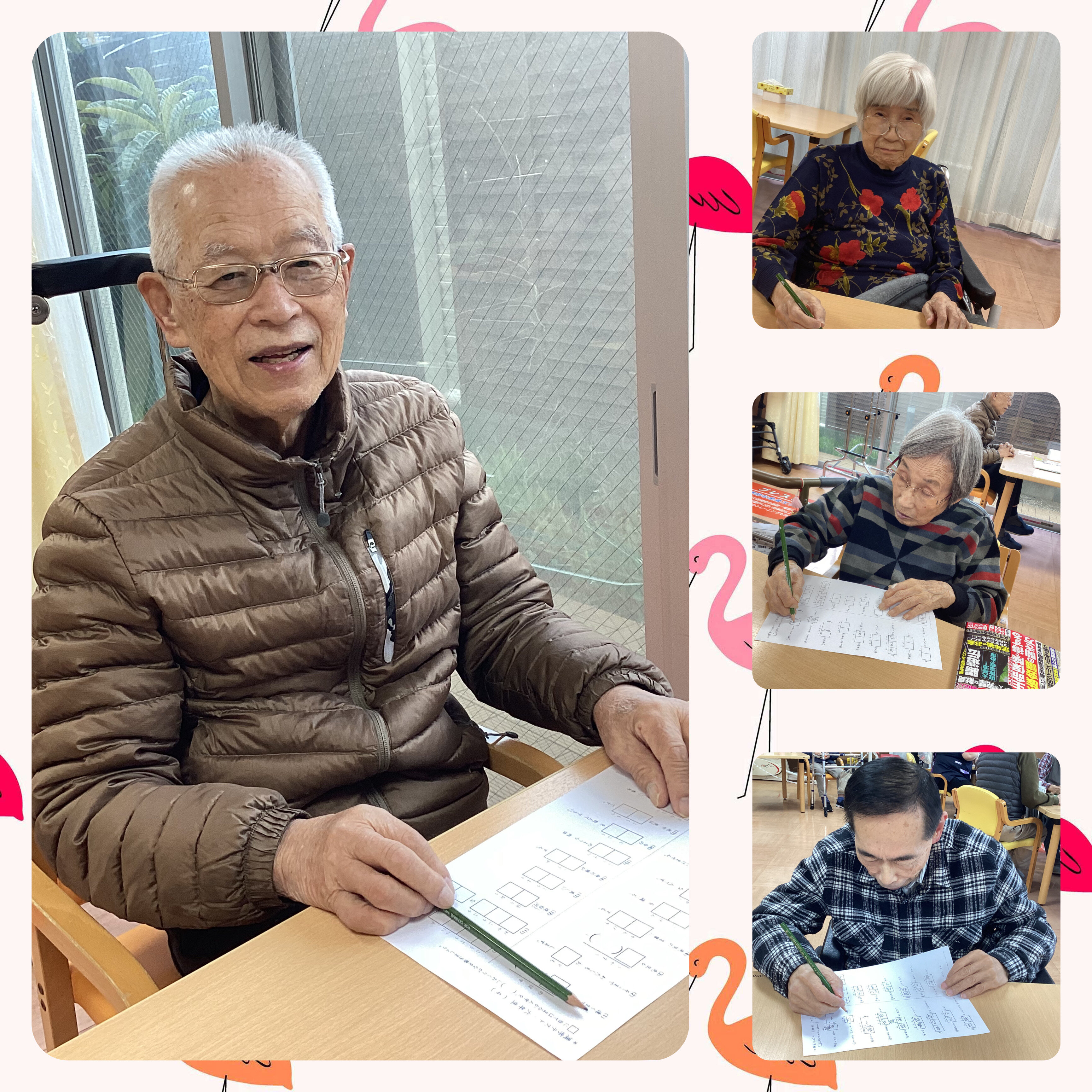 本日は「漢字ドリル」のレクリエーションの様子をお送りいたします。