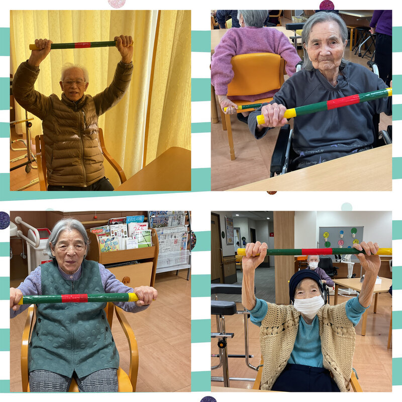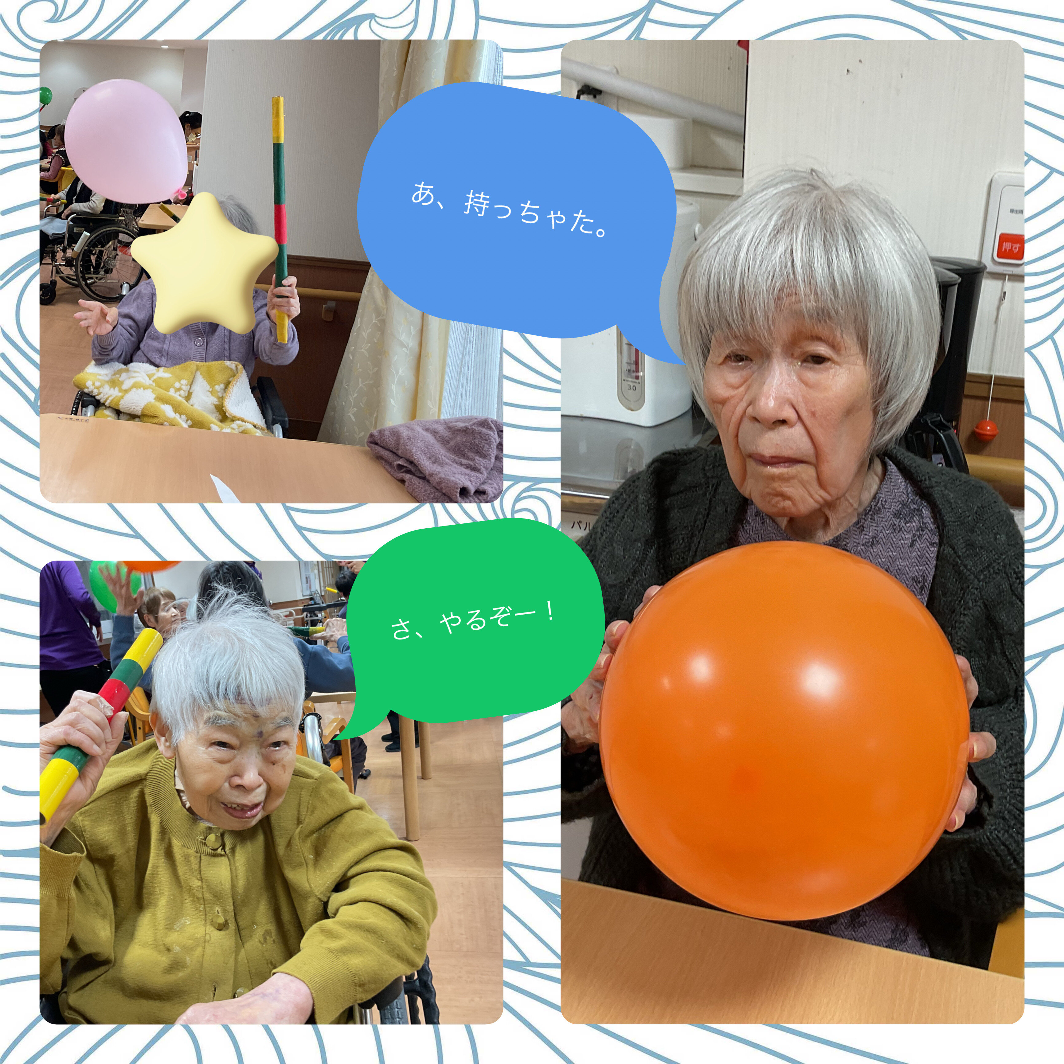 今回は「棒体操」と「棒を使った風船バレー」を行いました(^▽^)/