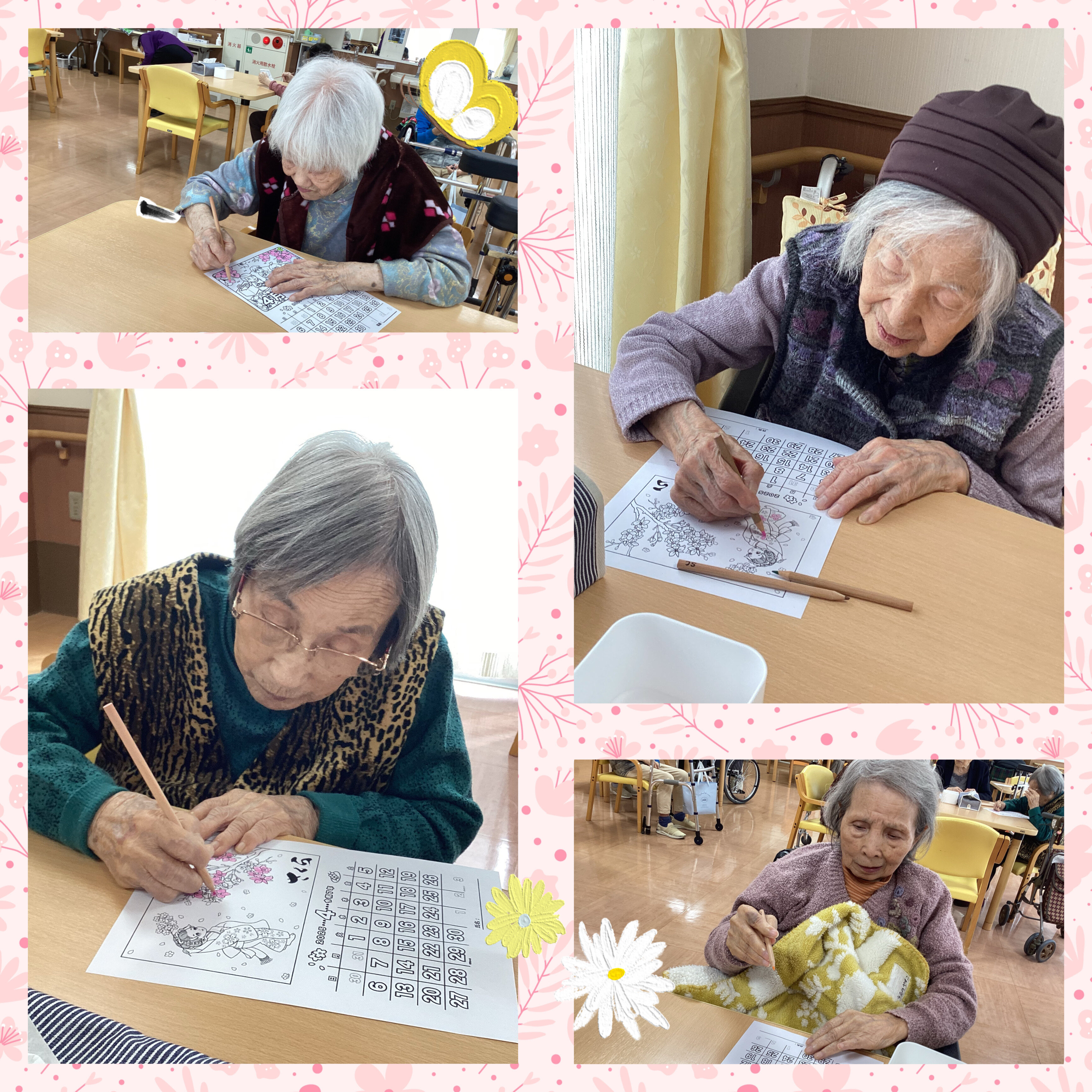 皆様、カレンダー上の絵に色塗りをされています!