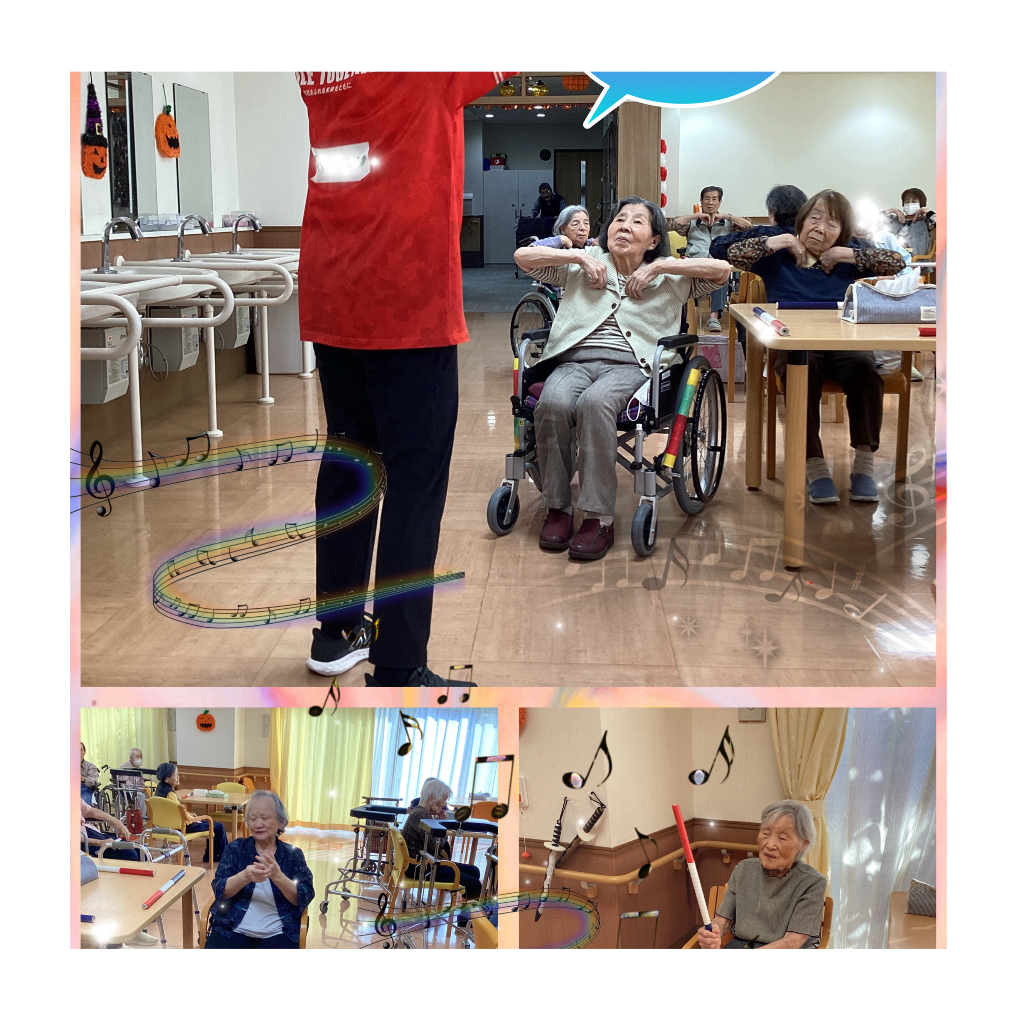 こんにちは!スーパー・コート川西加茂です。本日は外部の先生による体操レクを行いました。