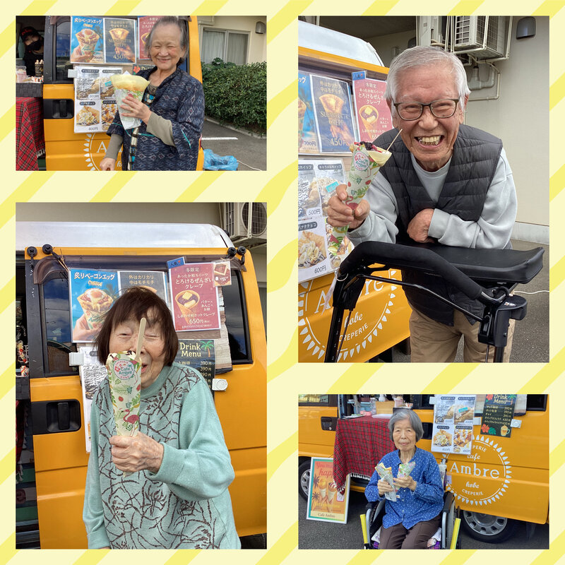 当日は施設駐車場で朝から皆様のリクエスト分のクレープを焼いてくださいました♪