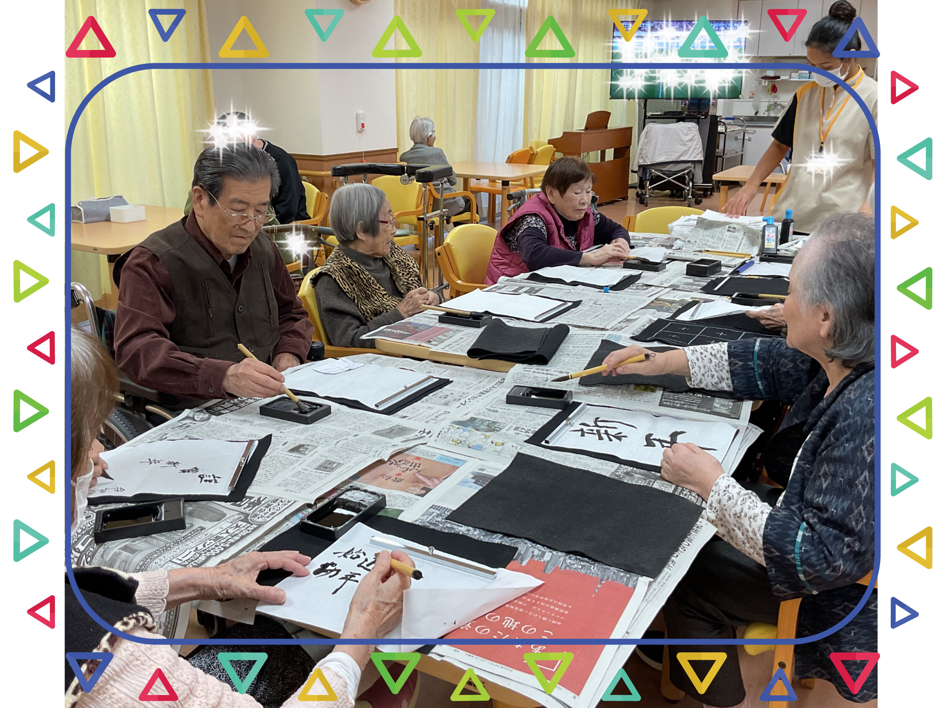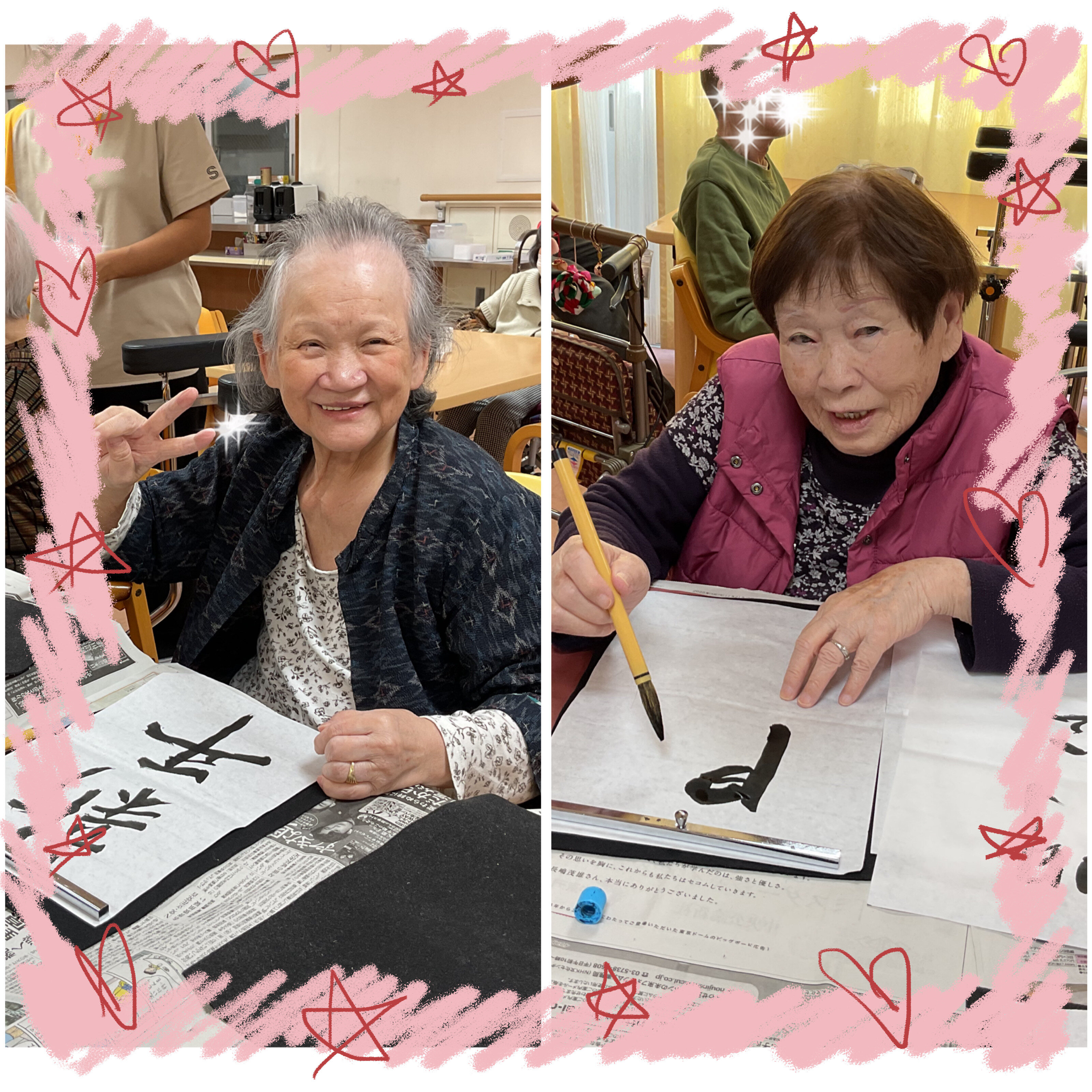 昨年度はレクリエーションで習字レクをする日が少なかったので、皆さん張り切って書いてくださいました。