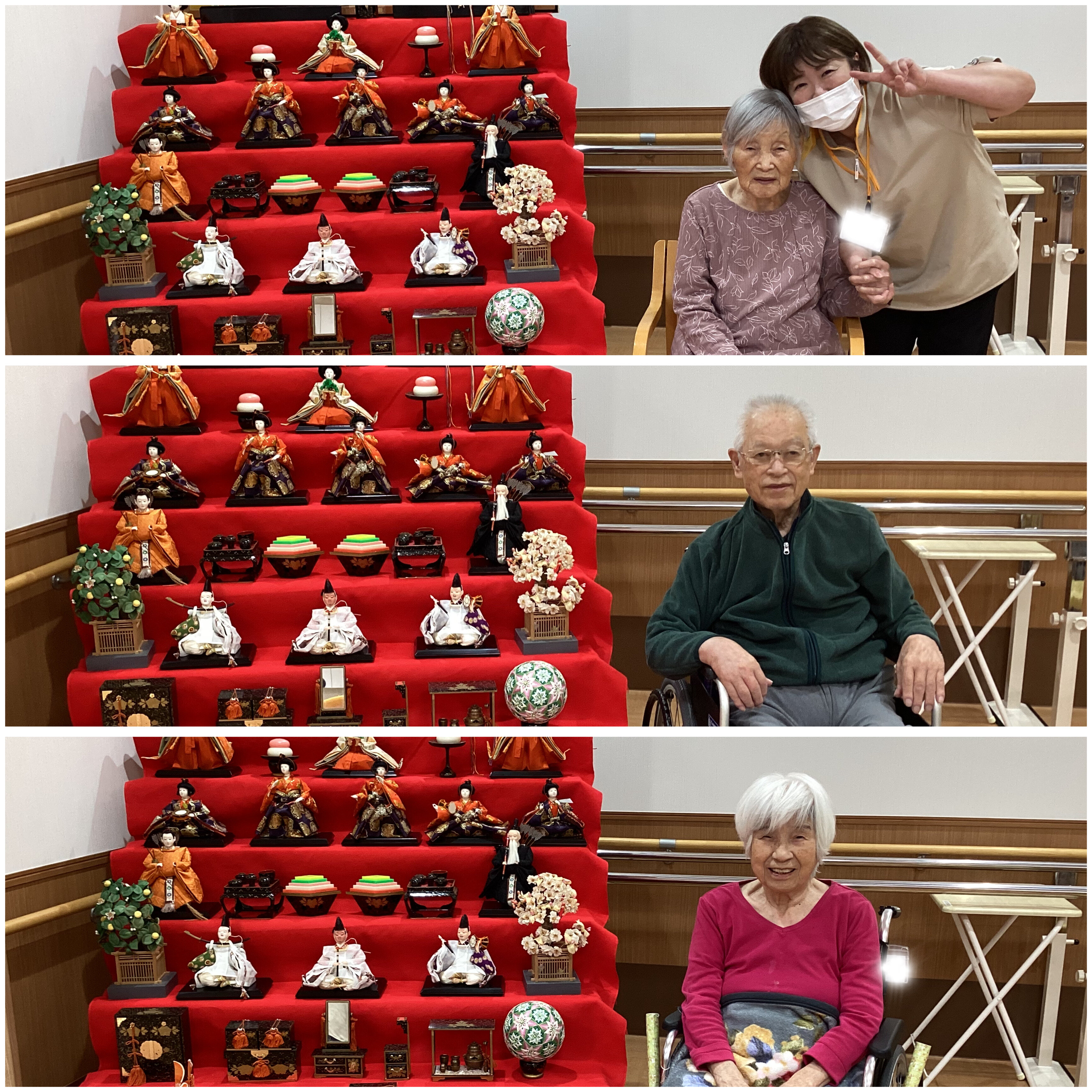 ひな祭りレクとして、お雛様と一緒に撮影会を行いました。