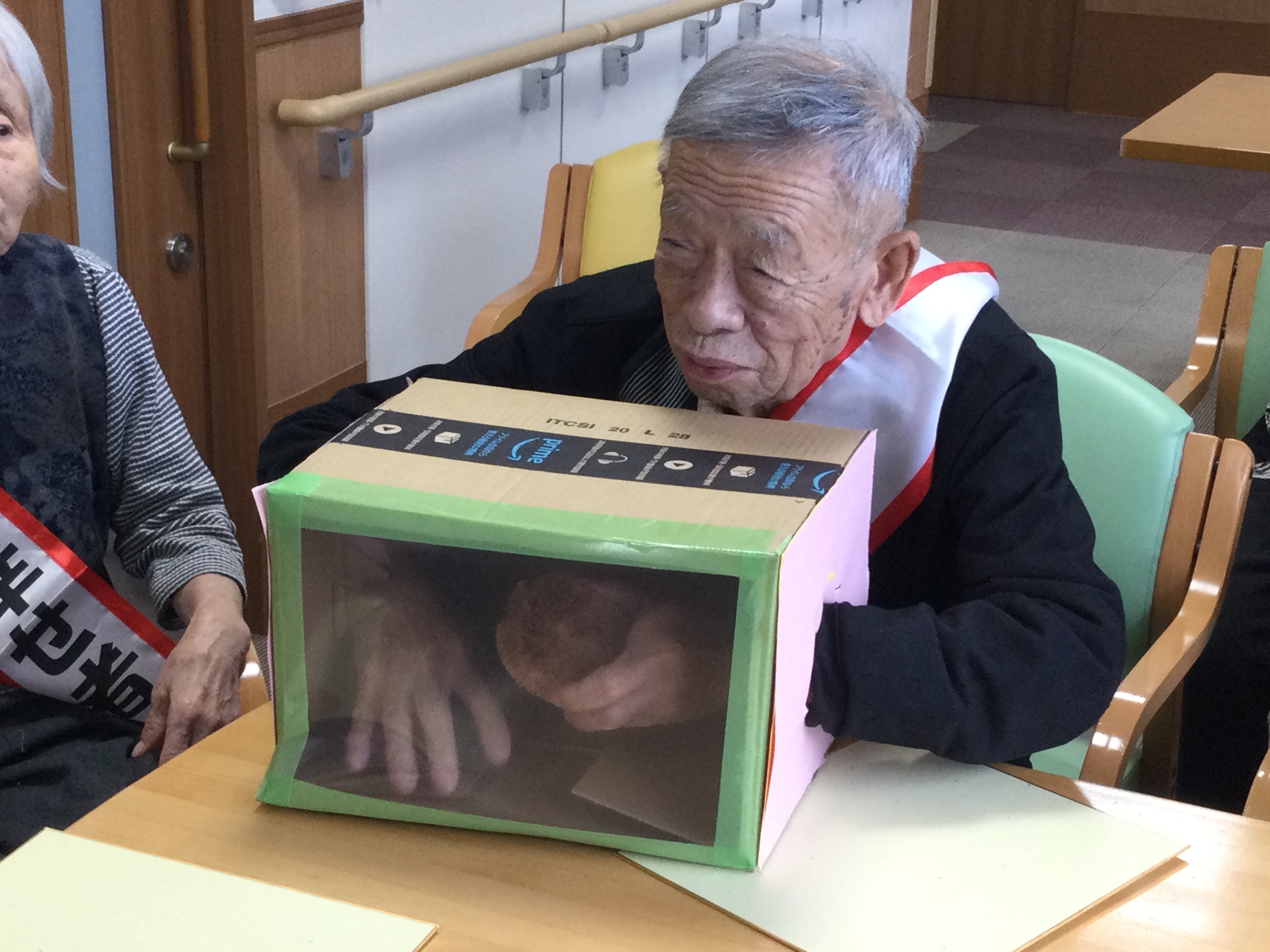 お誕生日会のレクリエーションで「箱の中身は何じゃろな??」を行いました。