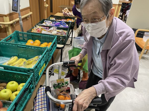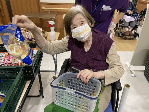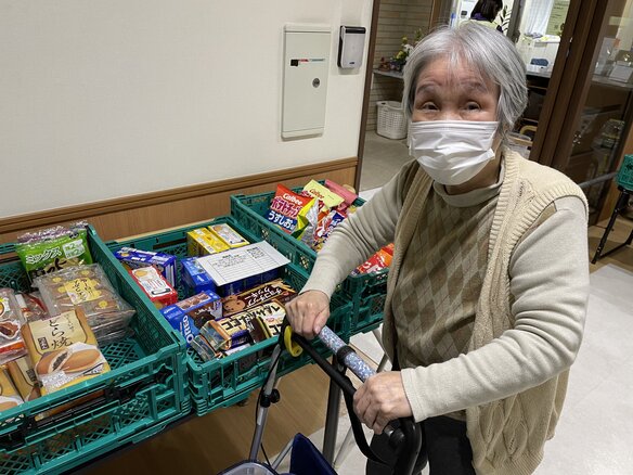 毎週金曜日に施設まで販売に来てくれます。お菓子からフルーツなど多種多様のラインナップですよ。