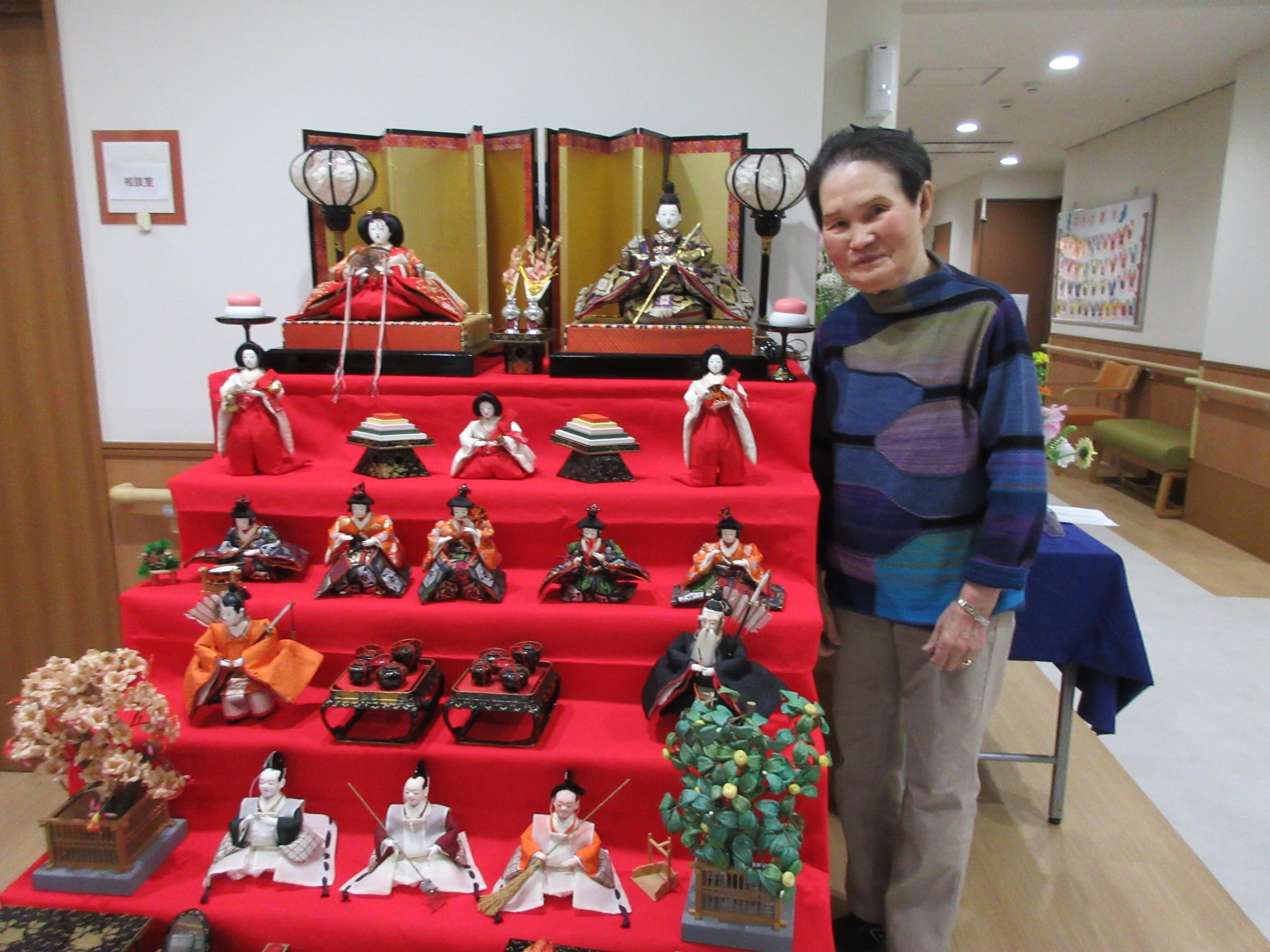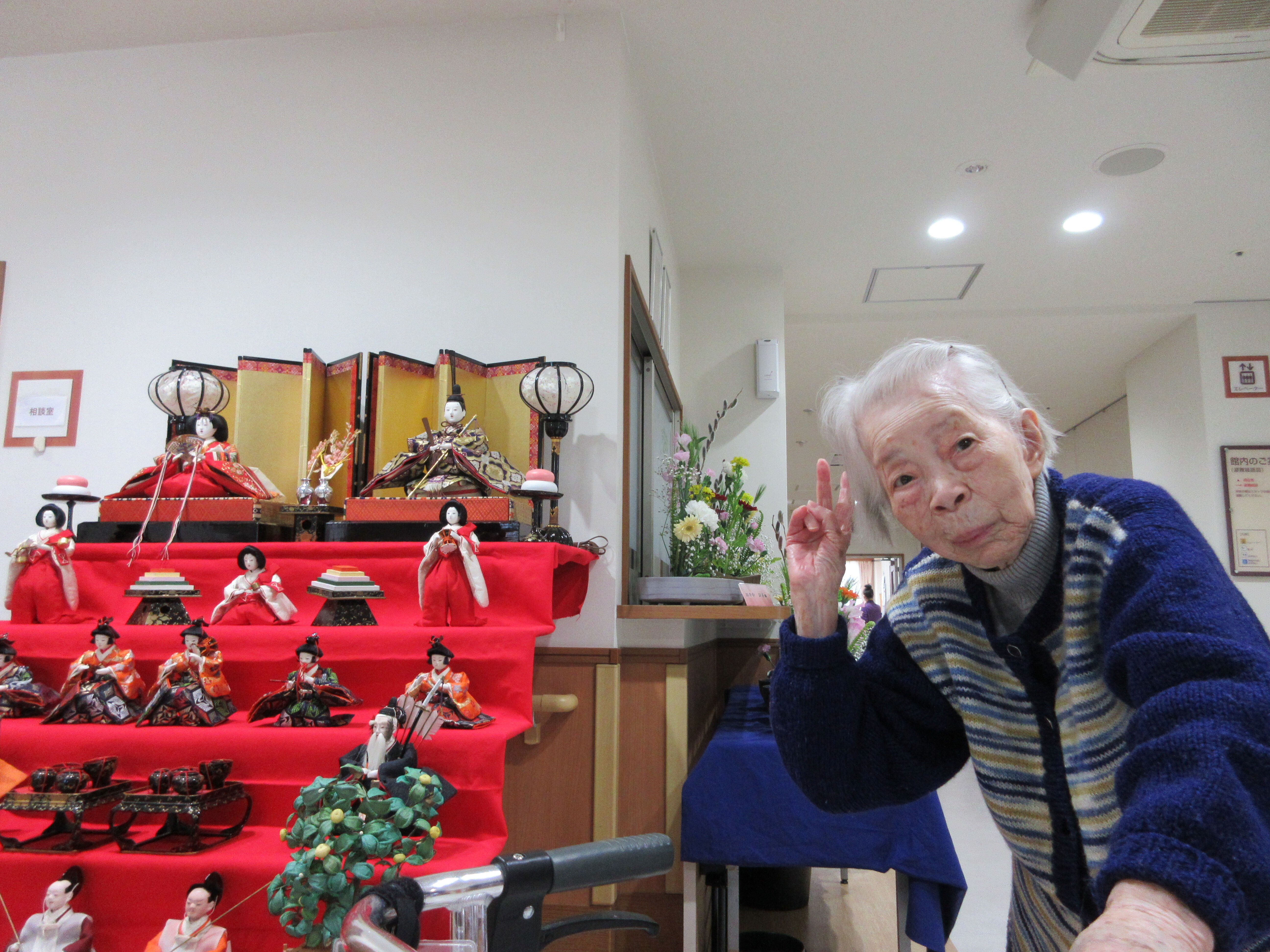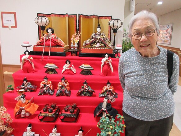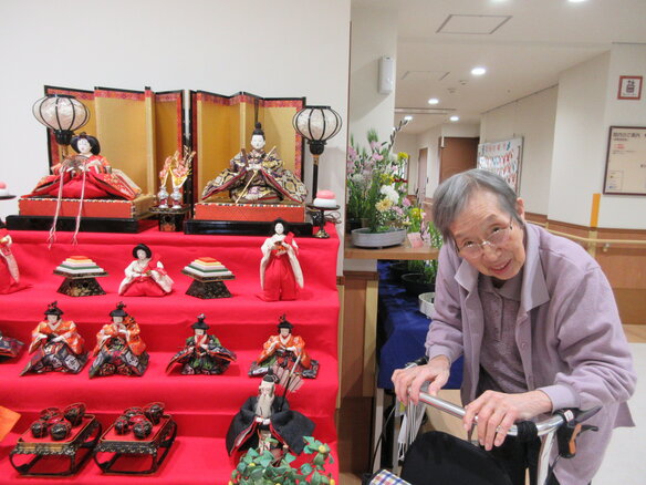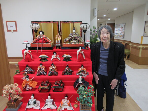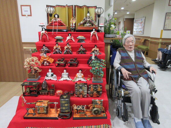 「ひな人形を見る為に毎日一階に降りてるの。いい運動よぉ(^-^)」と
