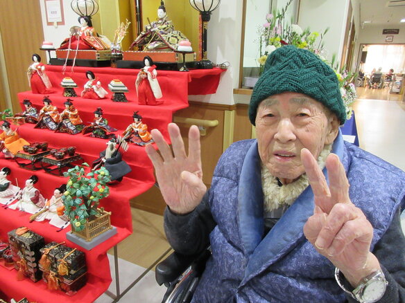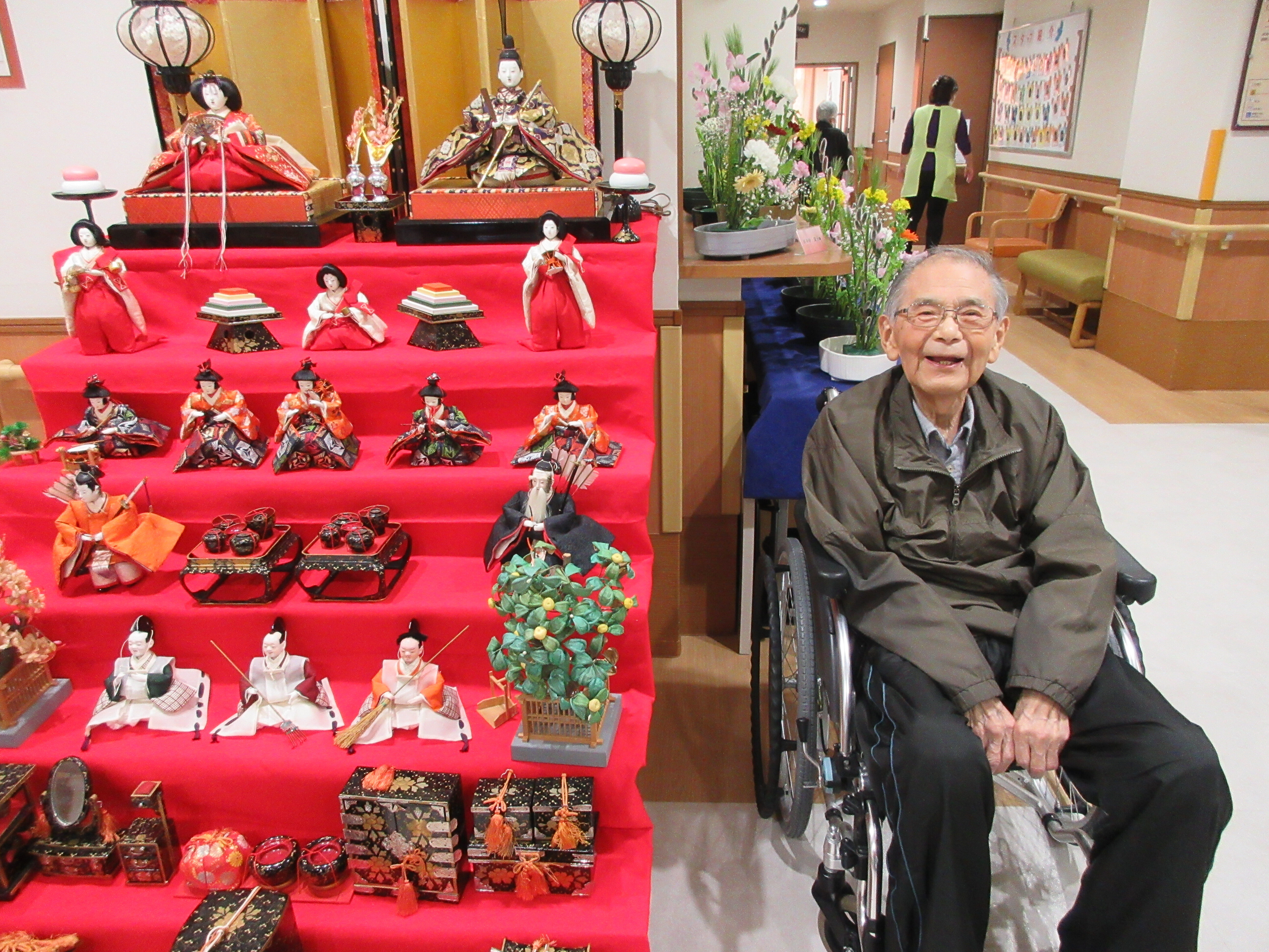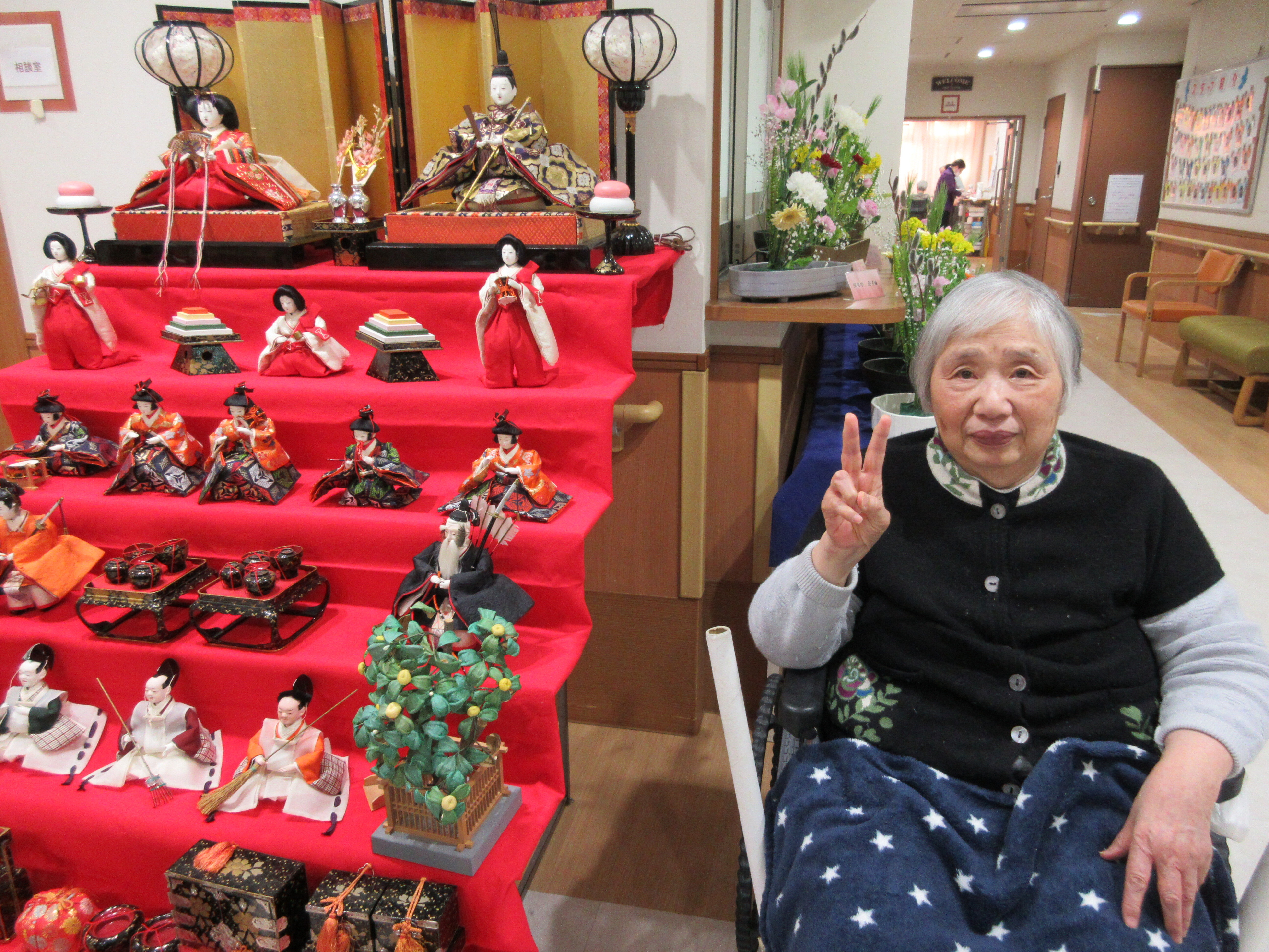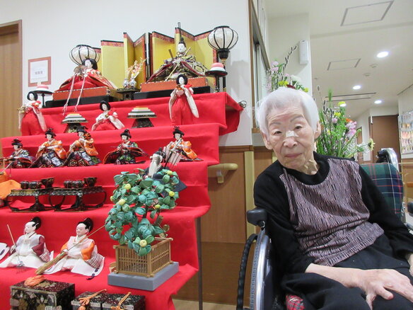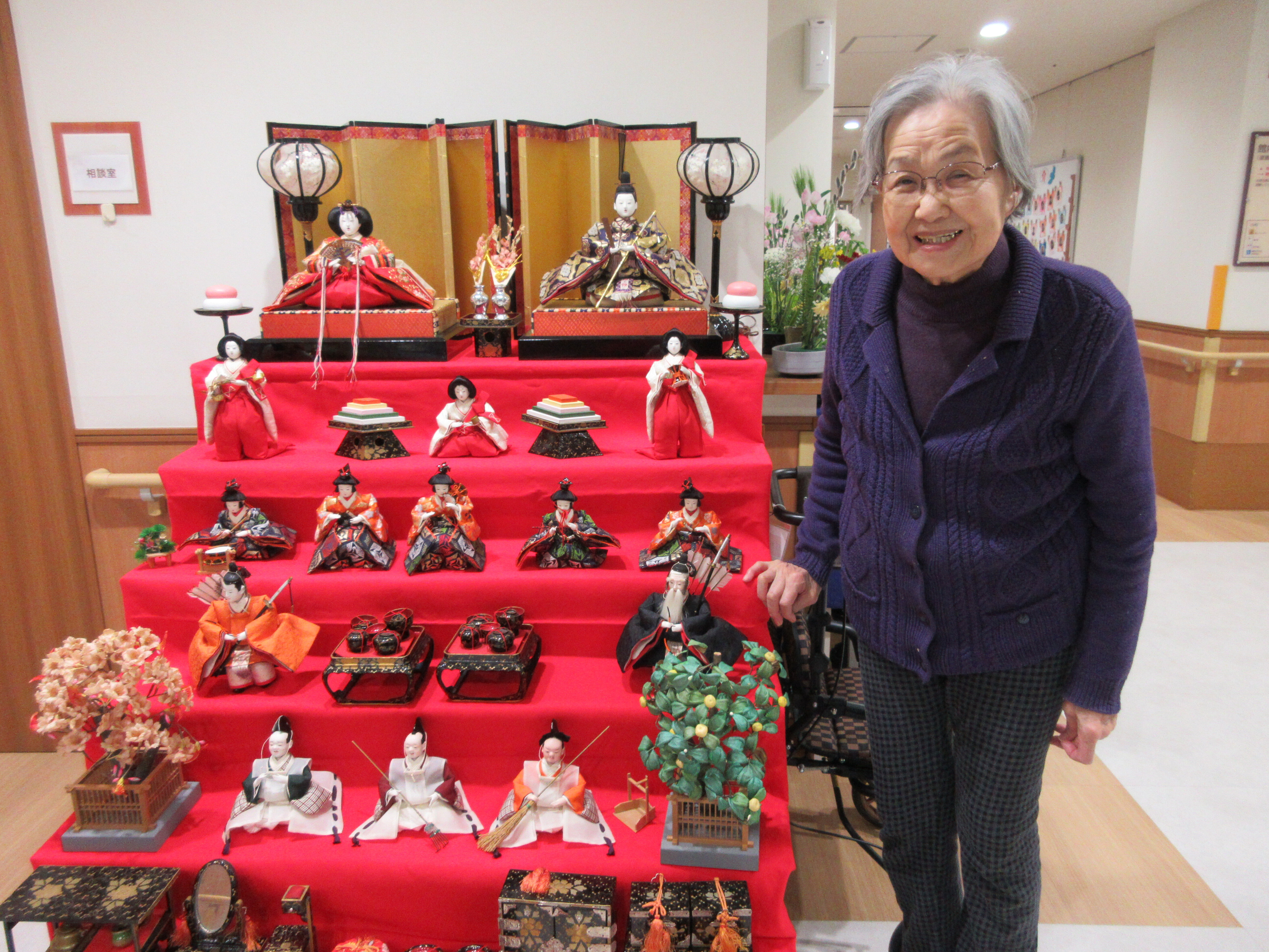 「ひな人形を見る為に毎日一階に降りてるの。いい運動よぉ(^-^)」と