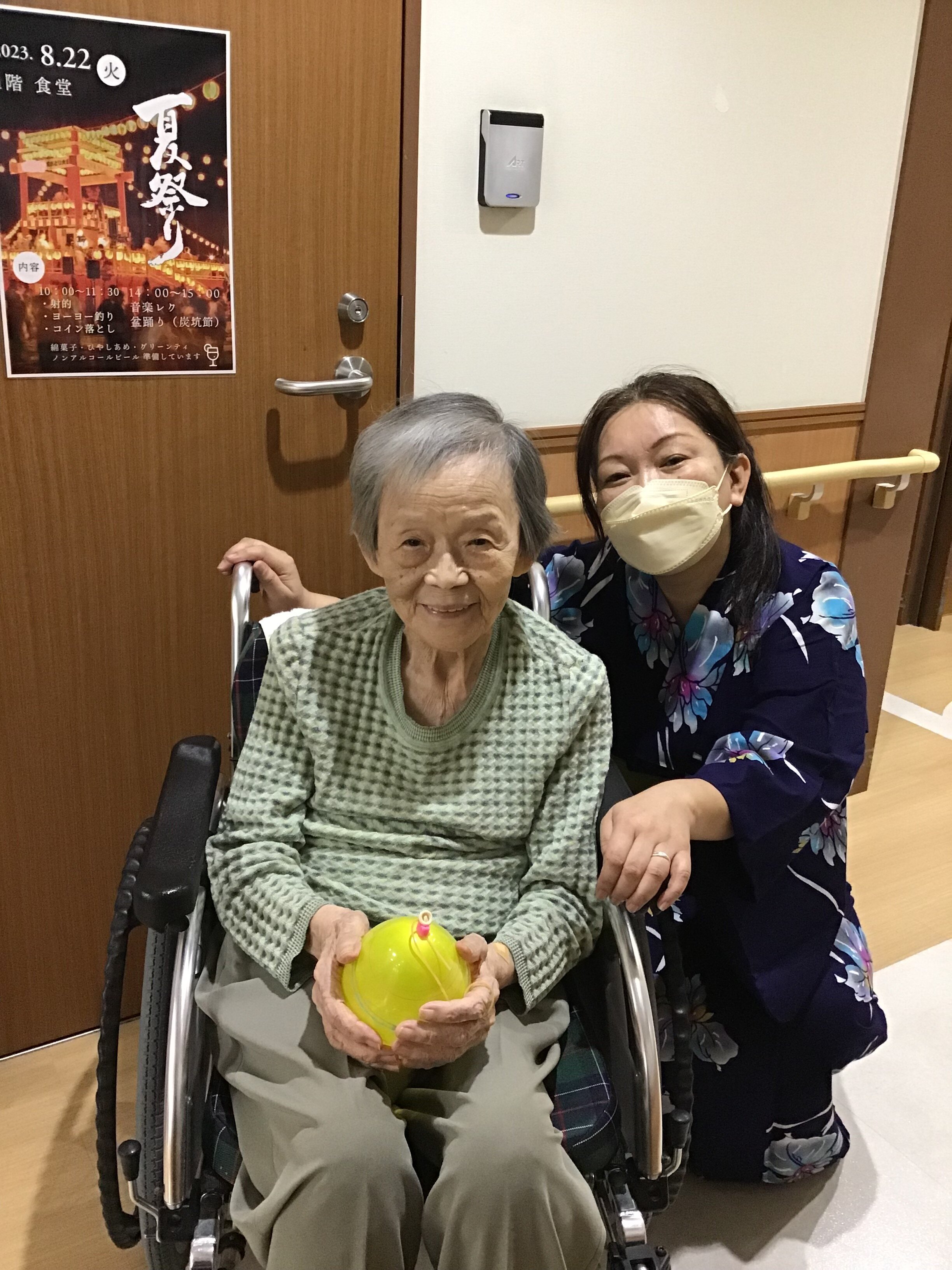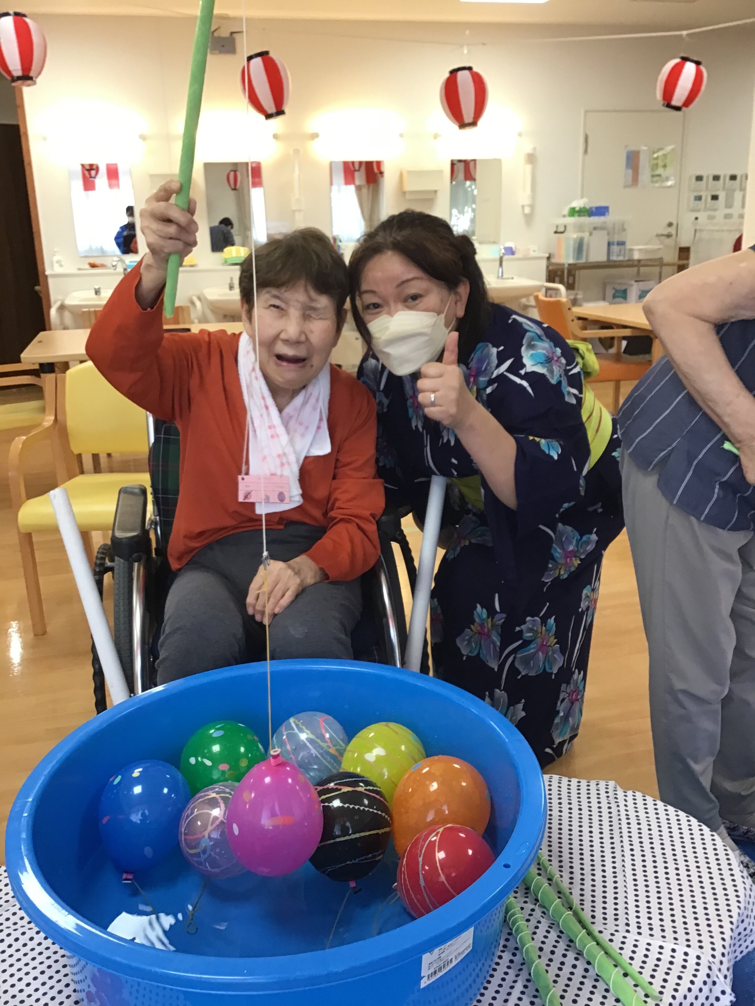 ヨーヨー釣りなど本当のお祭りみたいで良いですね。ご入居者も楽しそうですね。