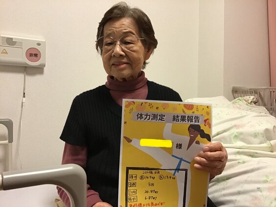 握力・15秒間立ち上がり・TUG・最大歩行の項目を行いました。