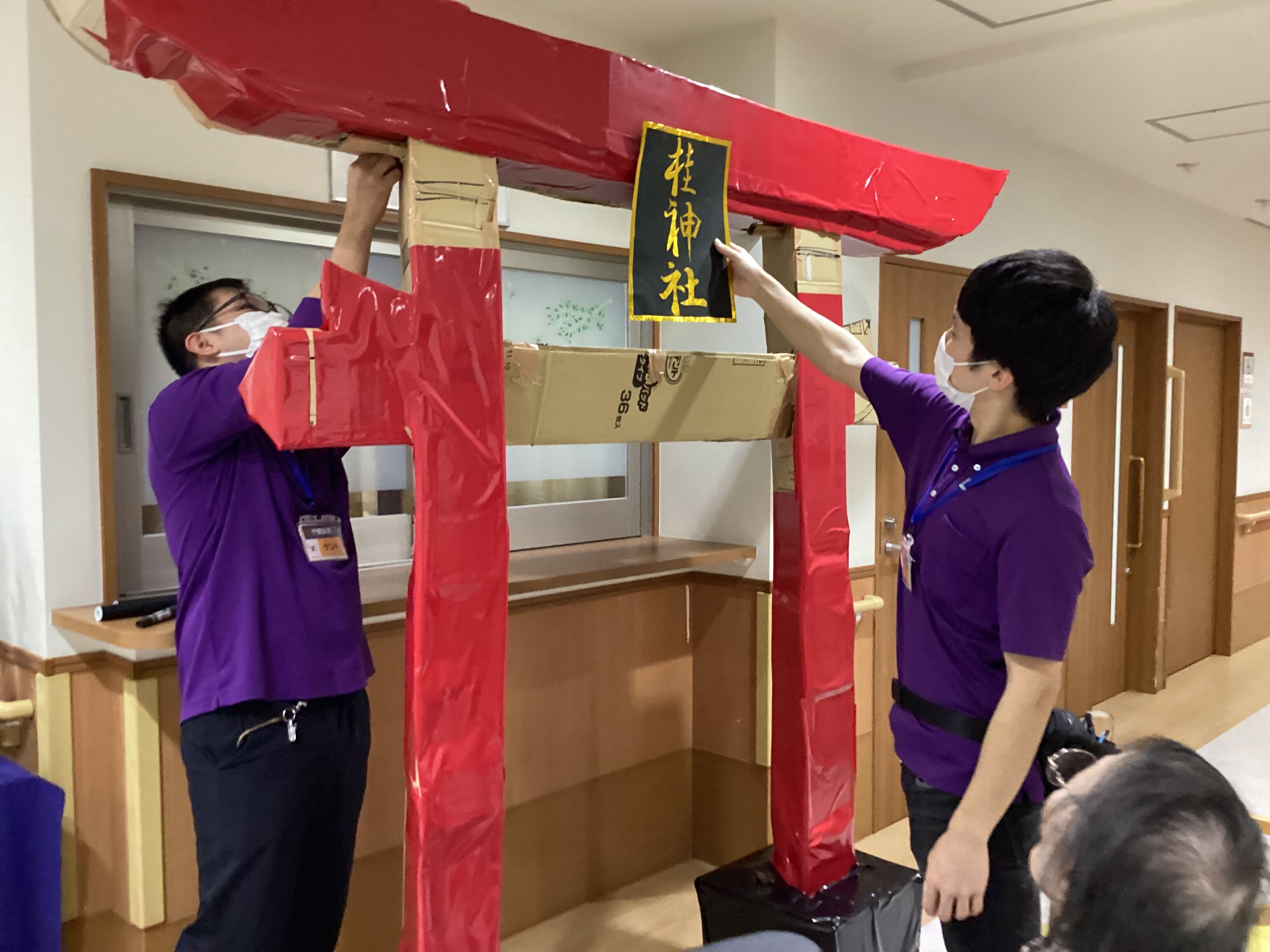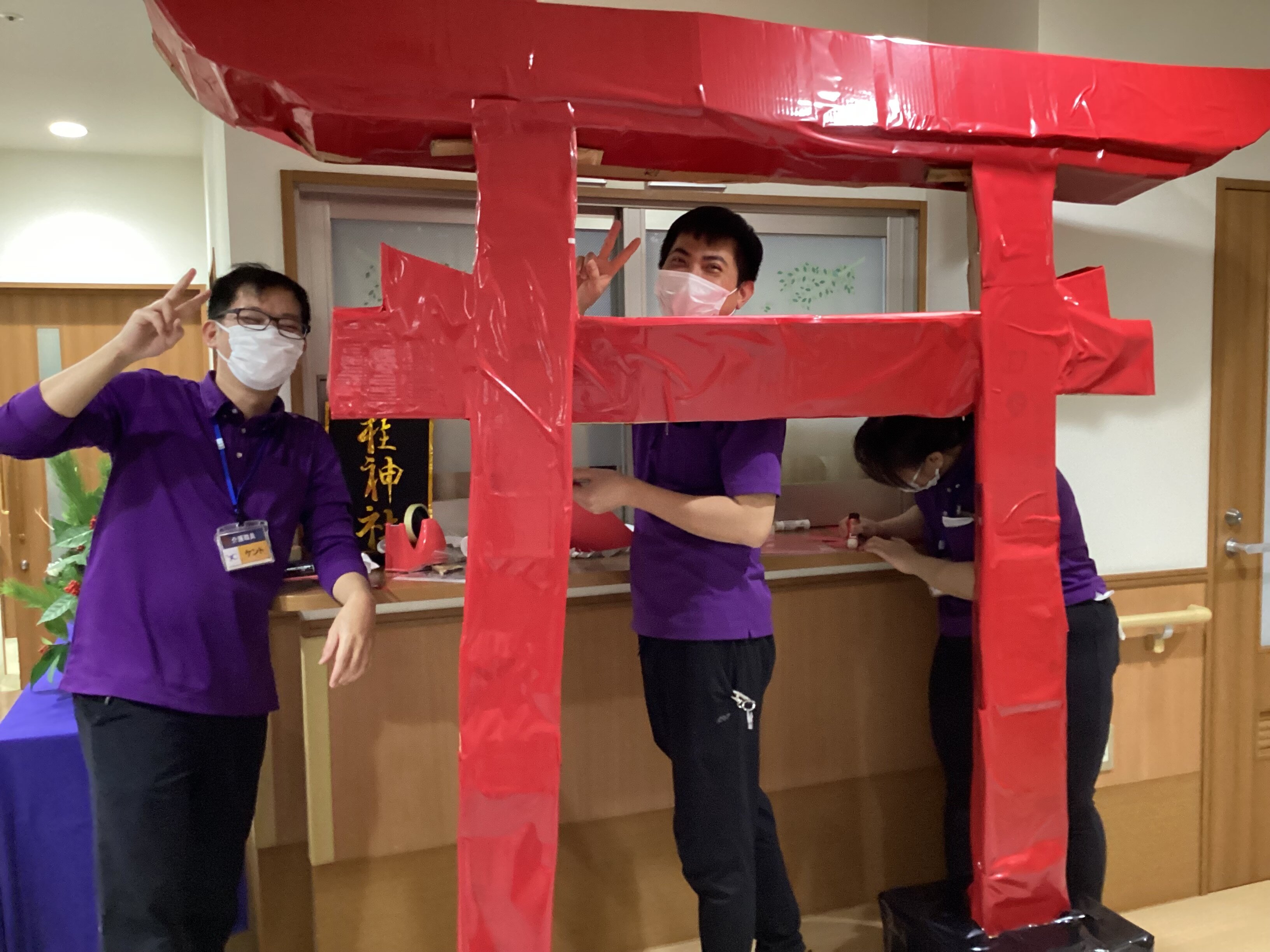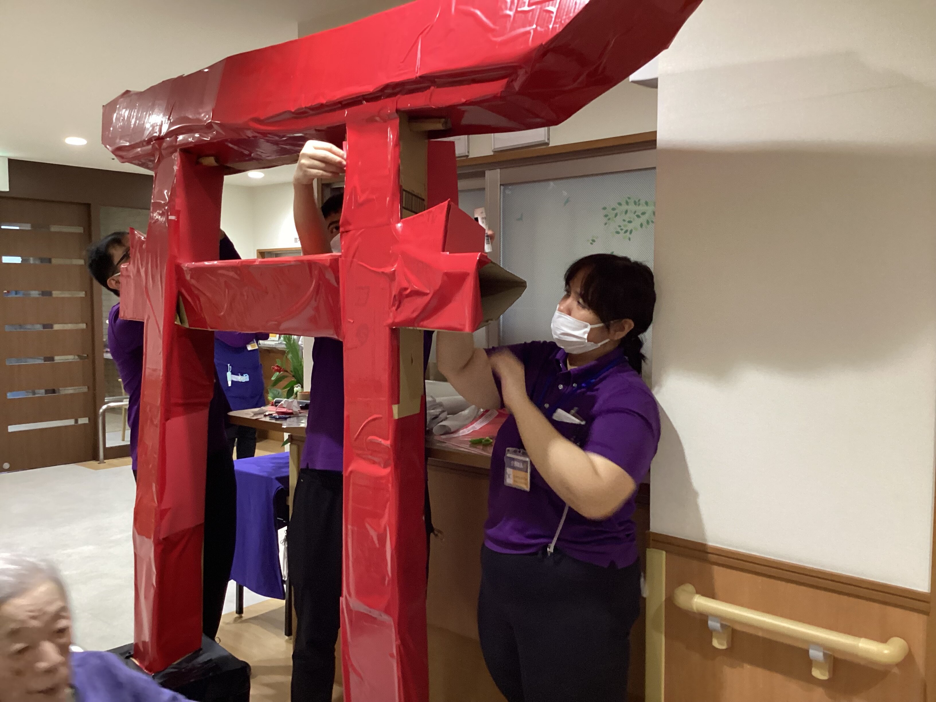 職員とご入居者様のご協力で鳥居が作成されています・・(^J^)