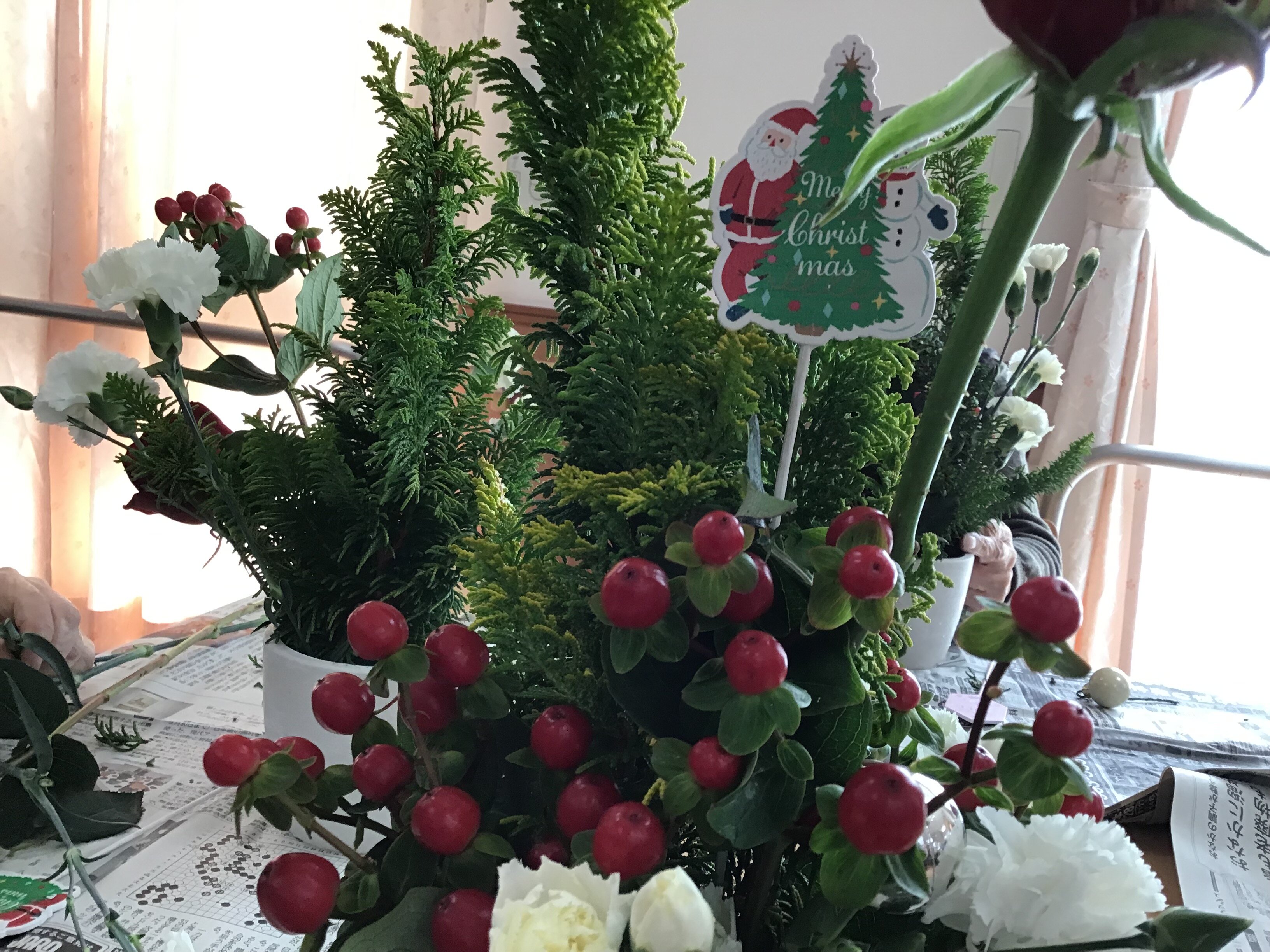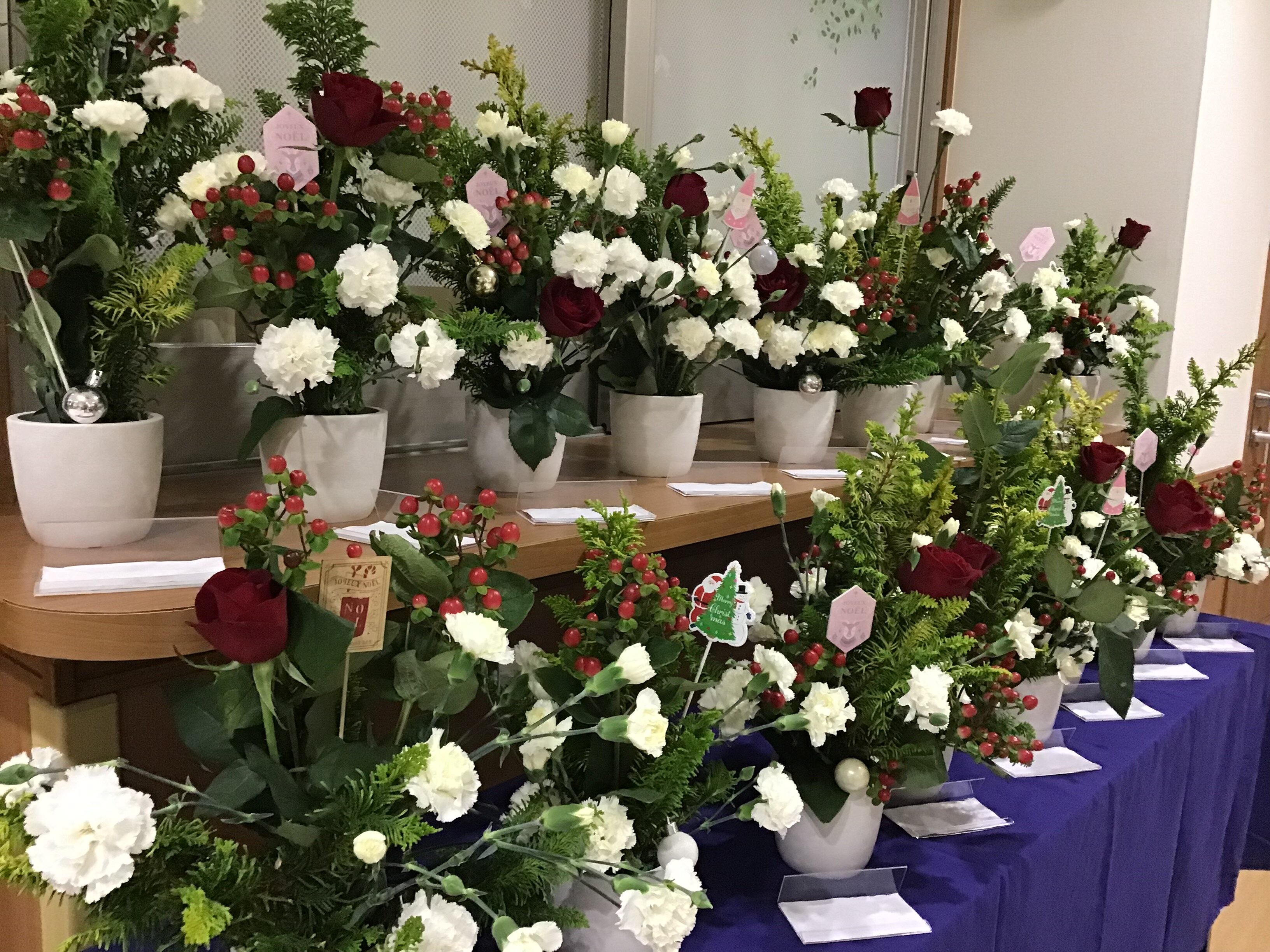 本日は、株式会社セレマ様よりクリスマス間近という事でフラワーアレンジメントを開催して下さいました(^_^)v