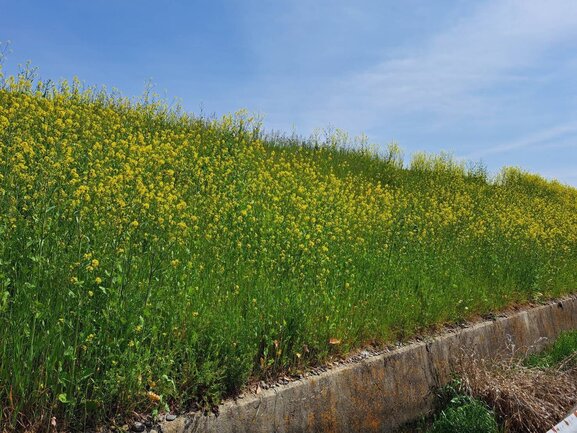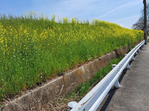 スーパーコート京・桂の近くにある桂川の堤防には春を感じる菜の花が咲いていました!