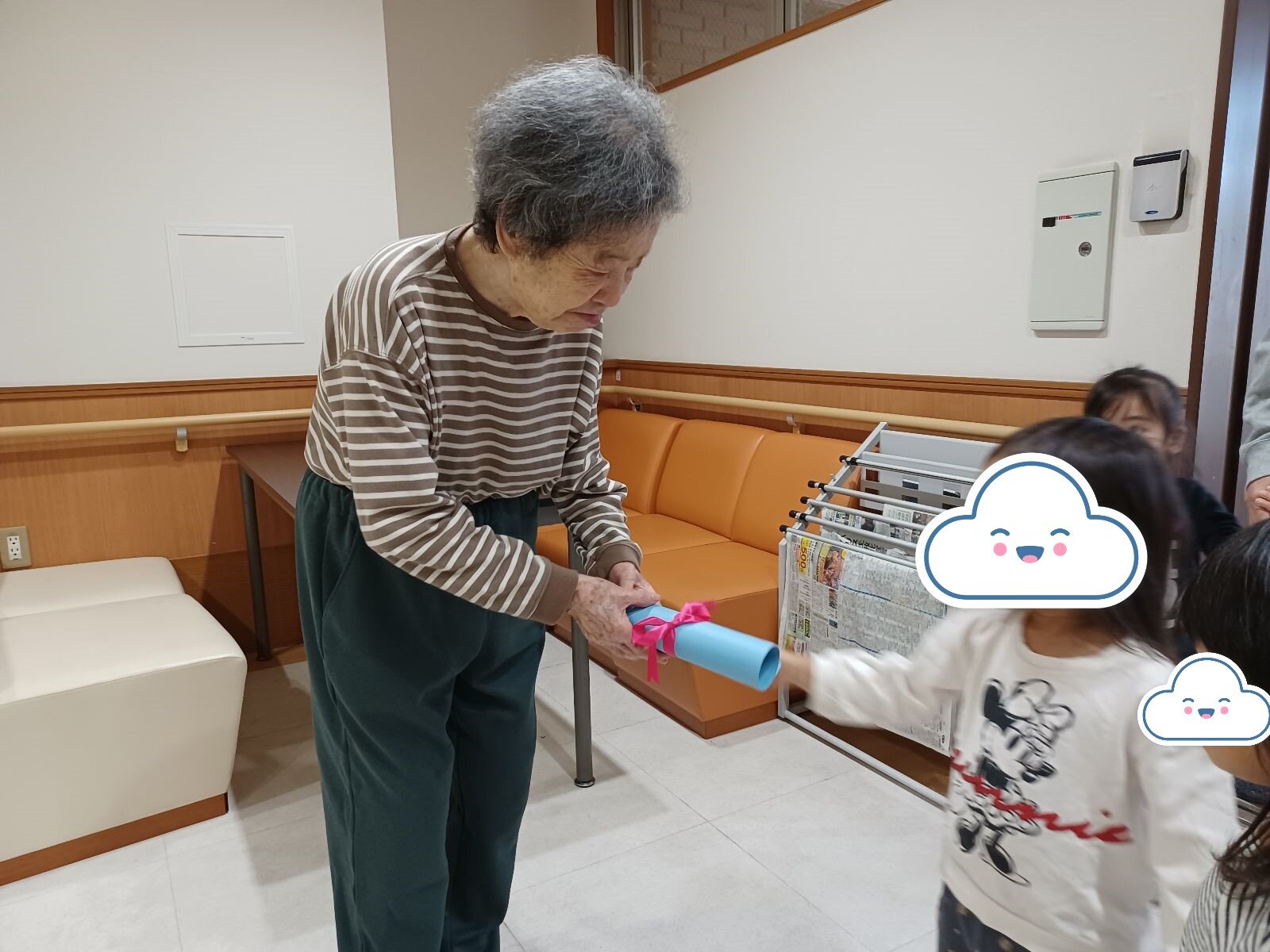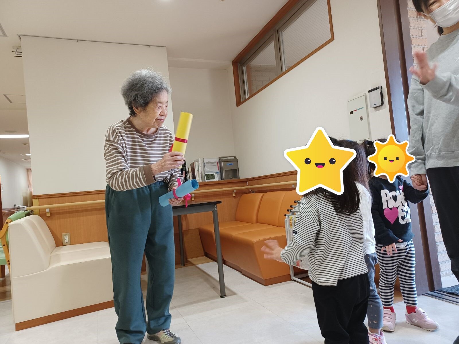今日は、みらい保育園の子供たちがハロウィンのお礼を届けに来てくださいました!(^^)!