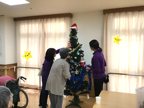 ツリーの組み立ては職員で行い、飾りつけはご入居者の皆様にお手伝いいただき、共同作業で完成しました!!☆