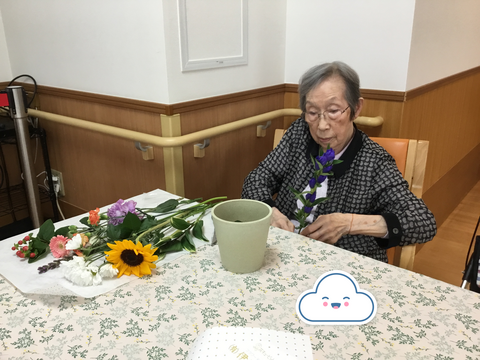 今回は、フラワーアレンジメントの様子をお届けします(*^^)v